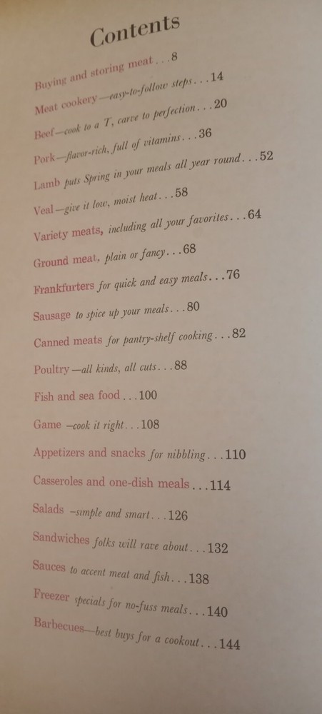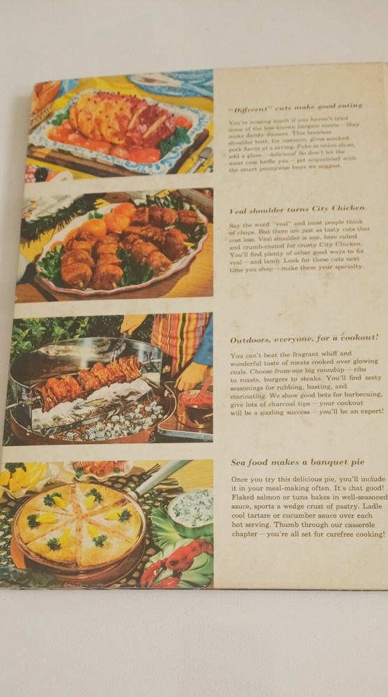 A vintage "Better Homes and Gardens Meat Cook Book" from 1965, 10th printing, in hardcover format. Published by Meredith Press in the United States. This original English printed cookbook contains recipes and techniques for cooking meat dishes. Not signed or personalized. It contains may colored photos.