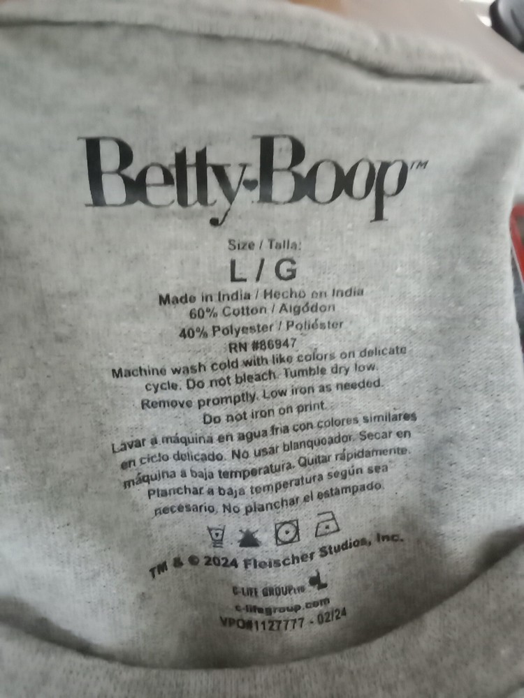 Betty boop T-shirt Size: L/G Large Color: light gray 50% cotton 40% polyester RN: 86847T Made in China Dated: 2024 Formal Red dress flows in The wind See photos for condition Please ask questions Check ✅ out my store I do combine shipping Thank you for looking I do have other sizes available Small / child, medium, large L/G