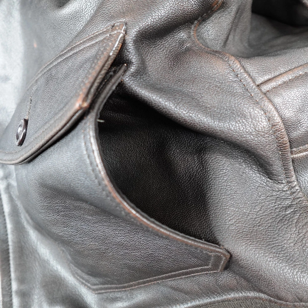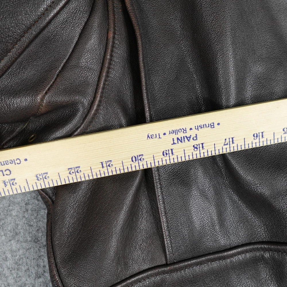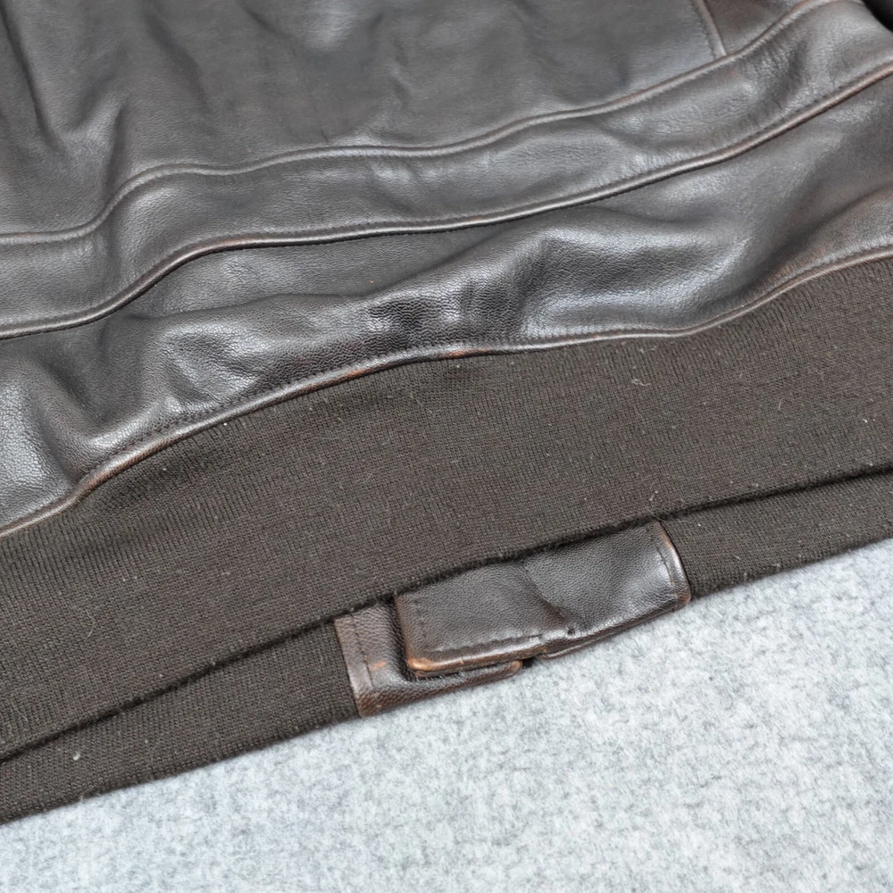 Unable to locate material tag (may have been removed) but leather is quite soft to touch. Could be goatskin based on other US Wings jackets I've seen. In very good gently used condition. No holes or tears. Light wear present from past use. See pictures to assess. Measurements are pictured.