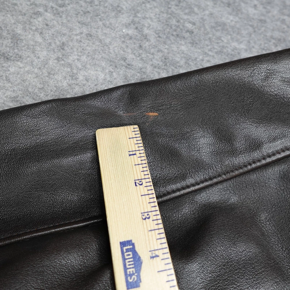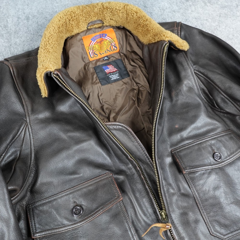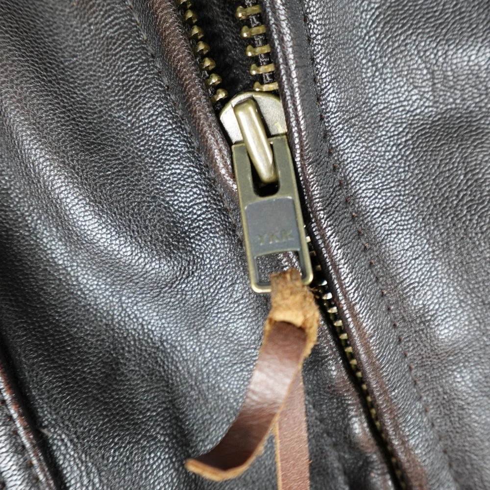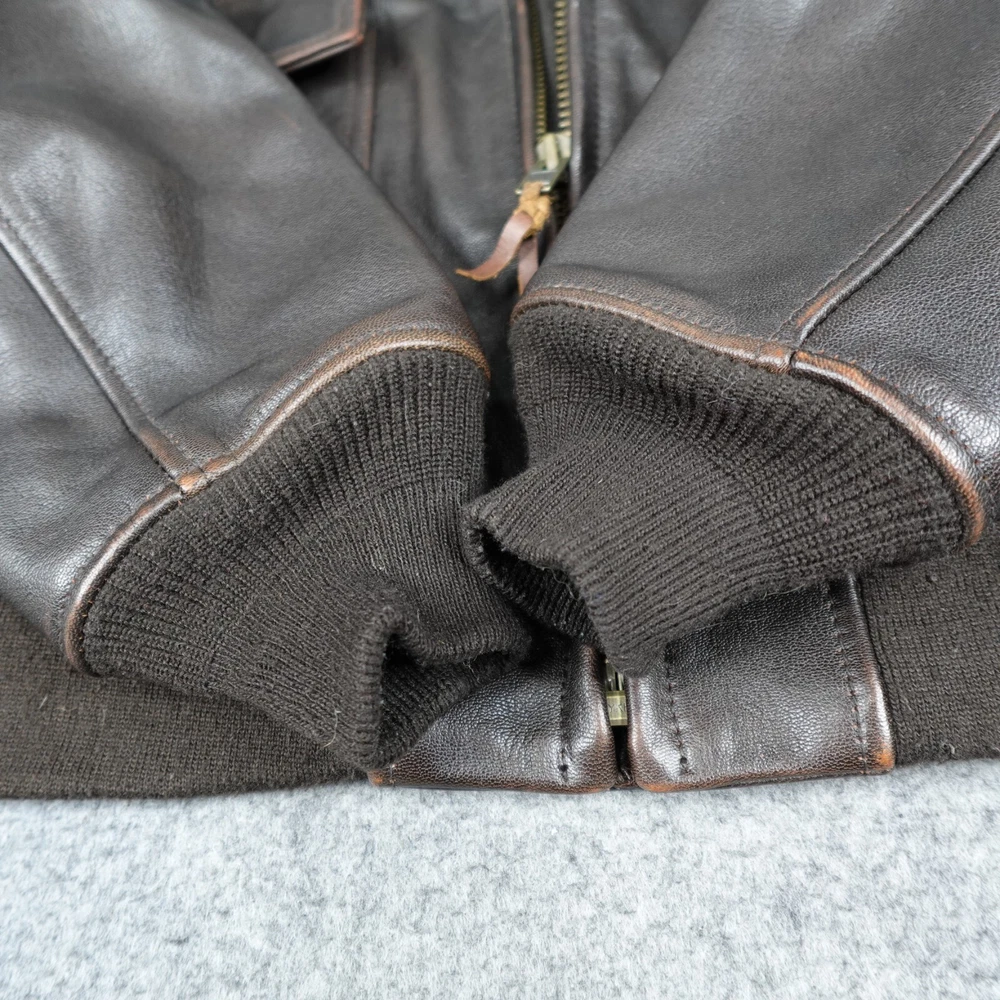 Unable to locate material tag (may have been removed) but leather is quite soft to touch. Could be goatskin based on other US Wings jackets I've seen. In very good gently used condition. No holes or tears. Light wear present from past use. See pictures to assess. Measurements are pictured.
