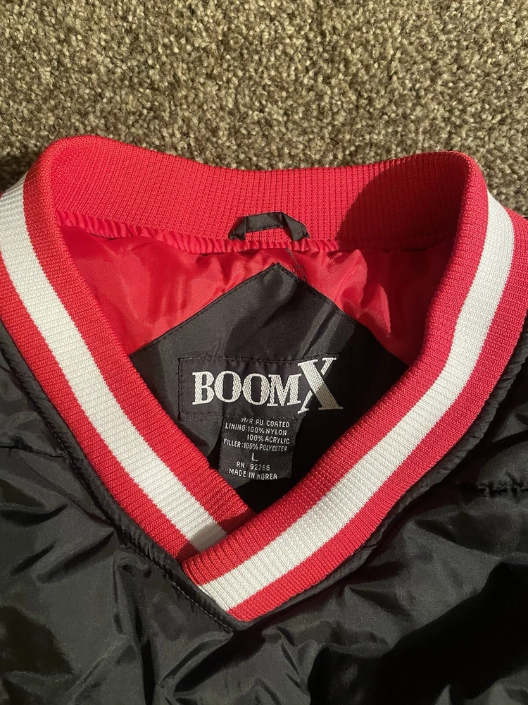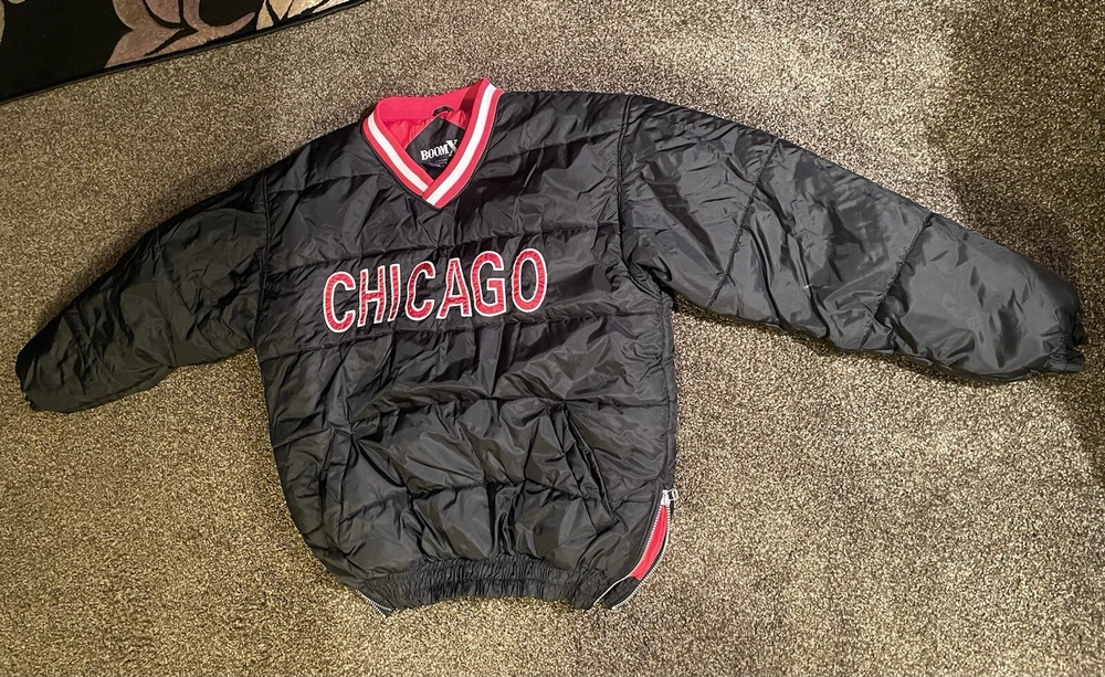 This vintage Puffer Boom X CHICAGO puffer pullover jacket is a must-have for any fashion-savvy man. Made from high-quality polyester, this jacket features a side zip closure and a regular fit that will keep you comfortable and stylish in any season. The black color and short length make it perfect for any casual occasion, while the vintage design adds a touch of nostalgia to your wardrobe. This jacket is perfect for men who love basketball, baseball, football, and hiking. It is also suitable for weightlifting, skiing, cross-training, and wrestling. The jacket is made in Korea, Republic of, and is available in size L. Don't miss out on this opportunity to add a unique piece to your collection.