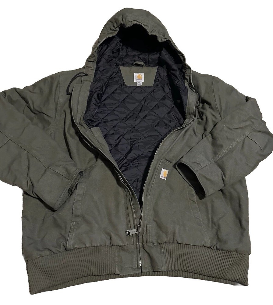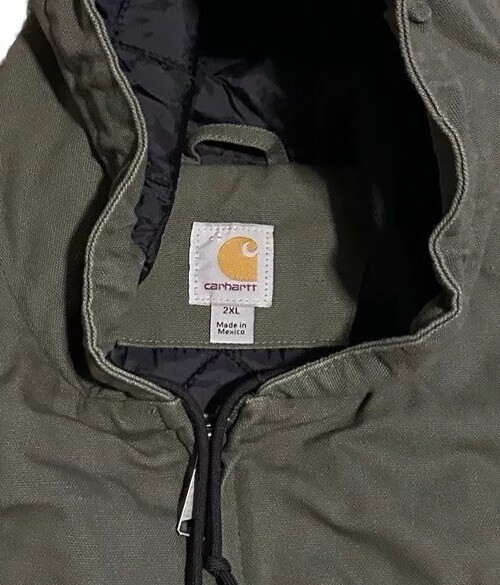 This vintage Carhartt jacket is a rugged yet stylish essential! The quilt-lined interior keeps you warm, while the durable gray canvas and sturdy zipper make it perfect for work or casual wear. The hood adds extra protection, and the handy pockets are great for storage. Fits true to size (XXL) and washes easily—no fuss. A timeless piece built to last! Message me with any questions.