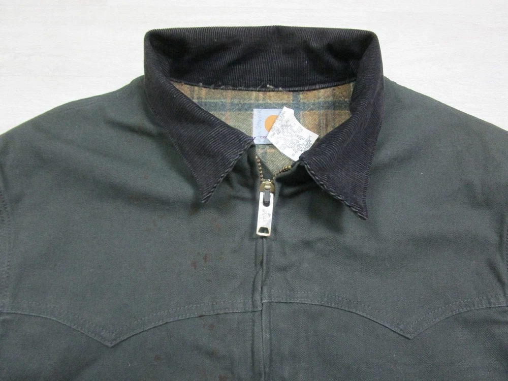 Original Vintage Carhartt Santa Fe Jacket in Spruce Green. Rare model to find! J61 flannel lined made here in the USA. Does show some spotting/staining on the front - See photos for this. Does not show a whole lot of wear. Tagged size (XL) but be sure to check and compare the provided measurements below to ensure proper fit. Pit to Pit (underarm): 25.5" Shoulder to Bottom (total length): 28" Sleeve: 26.5" MELLOW GUPPY IS AN OHIO BASED (UNITED STATES OF AMERICA) SMALL BUSINESS. FIRST OFF, WE WOULD LIKE TO THANK YOU FOR SUPPORTING US THROUGH THE YEARS! WE TAKE GREAT PRIDE IN EVERY STAGE OF PASSING THESE TREASURED ITEMS FROM OUR HANDS TO YOURS AND DEPEND ON YOUR SATISFACTION TO KEEP GROWING AND MOVING FORWARD. If you are buying VINTAGE please have reasonable expectations. Items that are 20+ years old will most likely show some signs of wear. We do our best to point these out and picture or mention any issues. Cotton tends to shrink over time from things like washing and drying. Also, clothing worn outside and, in the sun, can become faded. In general VINTAGE clothing sizes do run SMALLER in comparison to modern sizing. IN SHORT – PLEASE MEASURE!!! IT’S THE ONLY WAY TO ENSURE PROPER FIT WHEN SHOPPING ONLINE! MEASUREMENTS ARE TAKEN WITH THE ITEM LAID ON A FLAT SURFACE. So please consider this – If you are buying a shirt, take a like minded shirt that fits comfortably (button up, t shirt, etc..) and lay flat then measure. If your measurements are like the ones we provide, PERFECT! We strive to make your buying experience as easy as possible! If you look in the photo section, we demonstrate exactly how we measure using a diagram. Sizes between brands and fabrics always fit a bit differently. This is especially true when it comes to VINTAGE clothing. If you have any questions, or need additional measurements, please ask before purchasing. We are most generally always quick to answer all questions. If you are buying a loved one something VINTAGE as a gift – Please try to get their measurements! Yes, we do accept returns for all the items we offer. We are confident you will love our product and stand behind our practices. We feel it’s the only fair way to do business. We find that returns generally happen for 2 main reasons – Proper fit (clothing) or Expected condition. We spend many extra hours measuring and listing in hopes to avoid any possible issues but understand that sometimes returns are inevitable. The plain truth is sometimes its hard to tell what an item is or isn’t until you see it in person and are able to touch it . PLEASE ASK US QUESTIONS AND VOICE ANY CONCERNS YOU MAY HAVE – WE ARE VERY RESPONSIVE AND FEEL THAT COMMUNICATION IS THE KEY. Finally, yes, we will combine shipping on orders! If you are buying multiple items from the Mellow Guppy store just let us know by message. Once you have made all your selections, we will send you a combined invoice. Once you receive our invoice you can make payment. This will save you money on shipping plus you will receive all your items together in one package. Be sure to give Mellow Guppy a follow and check back from time to time – We are always unearthing buried treasure! We look forward to hearing from you! Thanks -MG