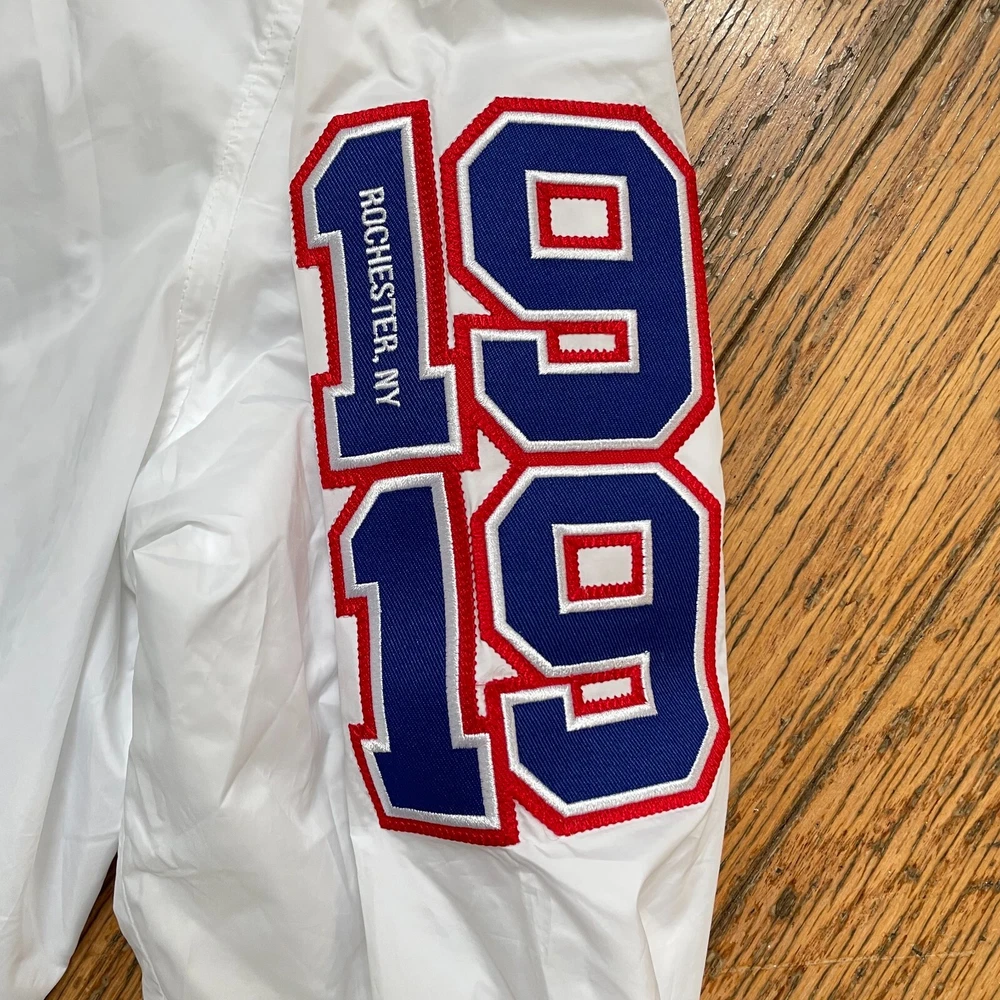 Champion Mens Jacket Large Long Sleeve 1999 Rochester NY Windbreaker Zip White Type: Windbreaker Sleeve Type: Long Sleeve Color: White Please take a look at the actual photo as they are part of our description. 27 3/4” long by 23 5/8” pit to pit. Item is in used condition. Sold exactly as pictured. Thank you for shopping!