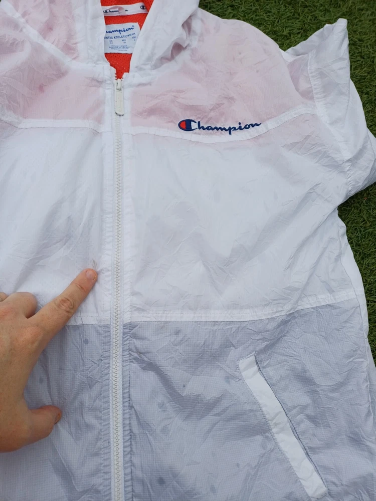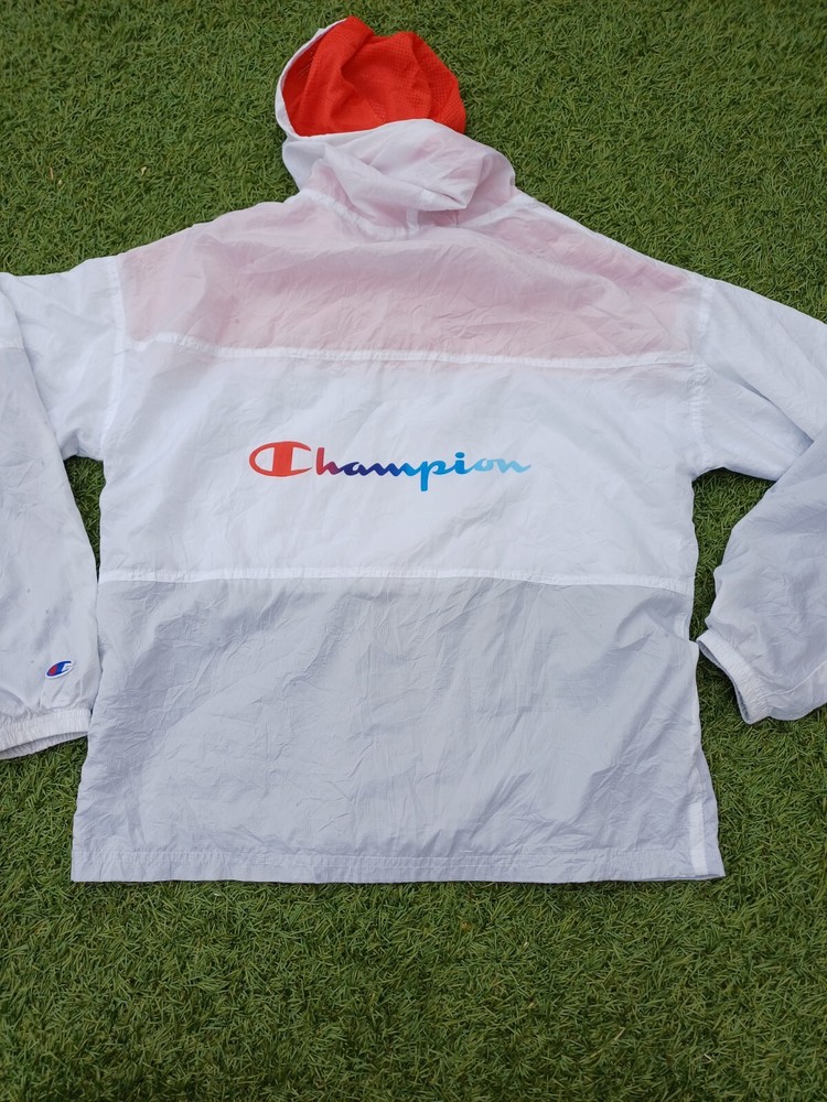 Vintage Champion Wind Breaker Womens Jacket. White Small Running Gym Wear Funky Please see pics. Couple of marks but this is a definite festival jacket for the summer.