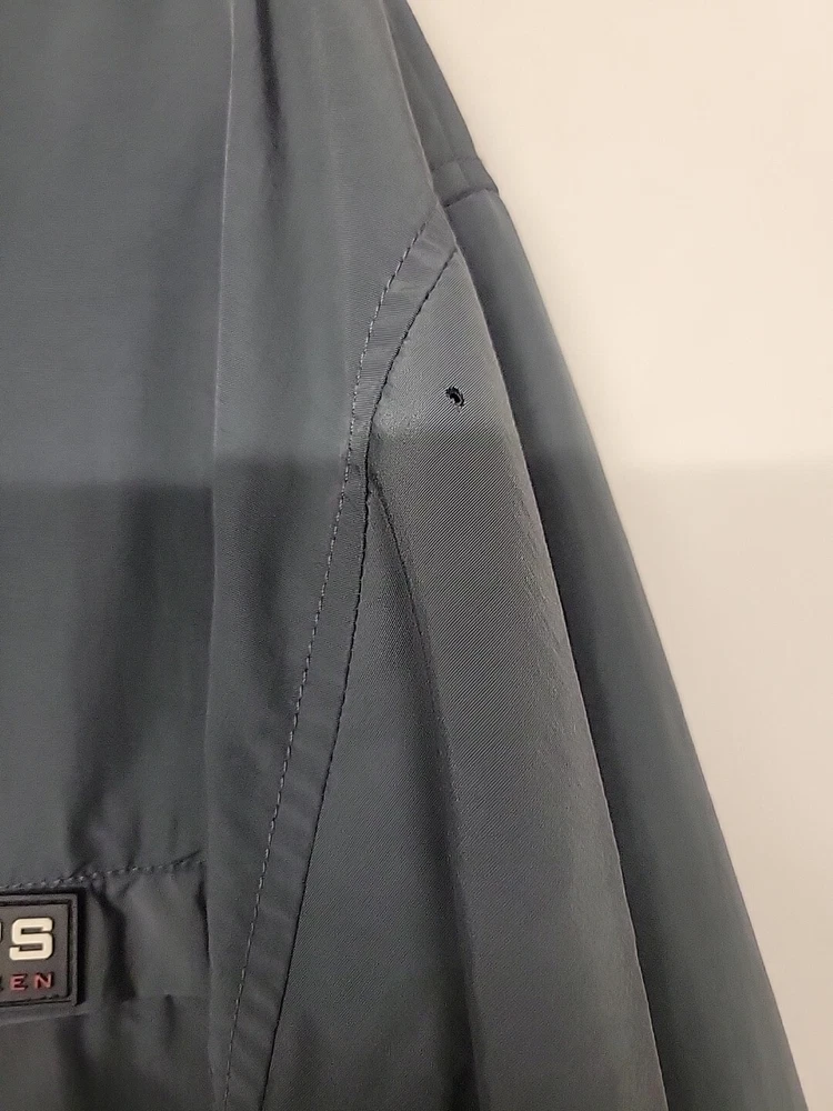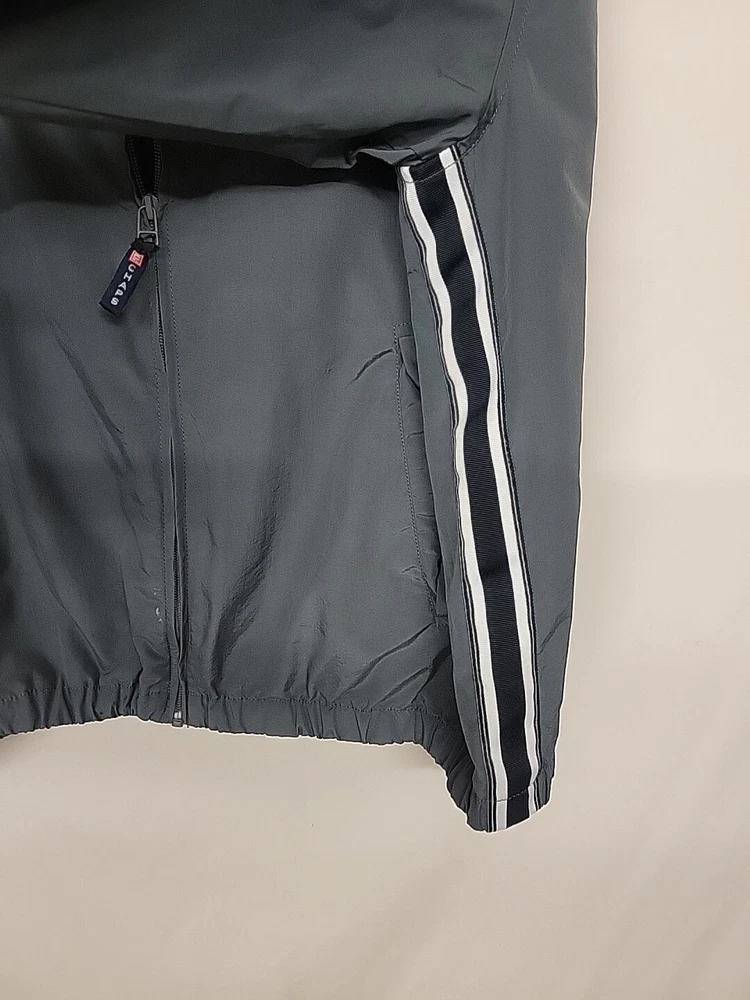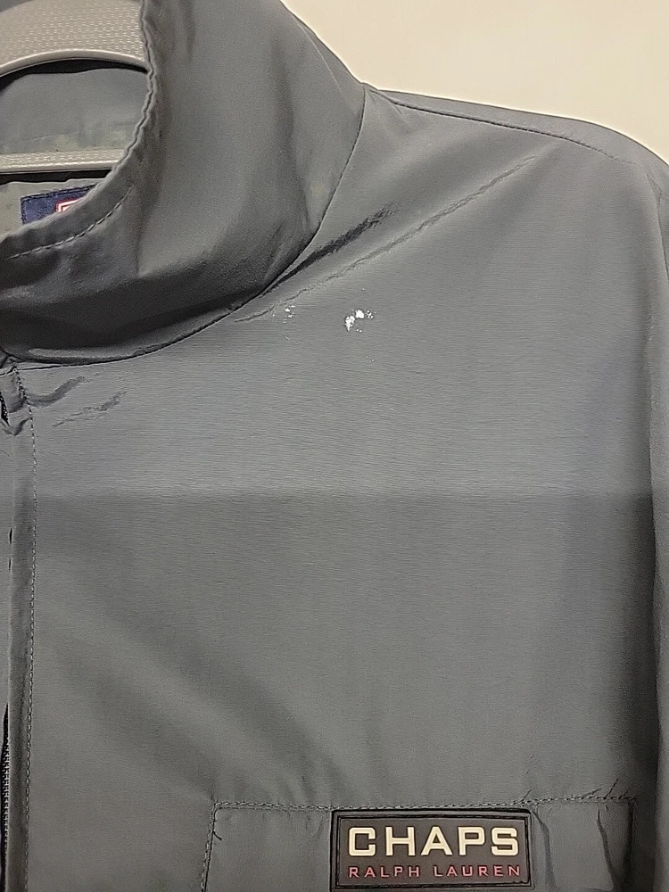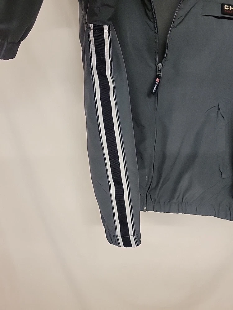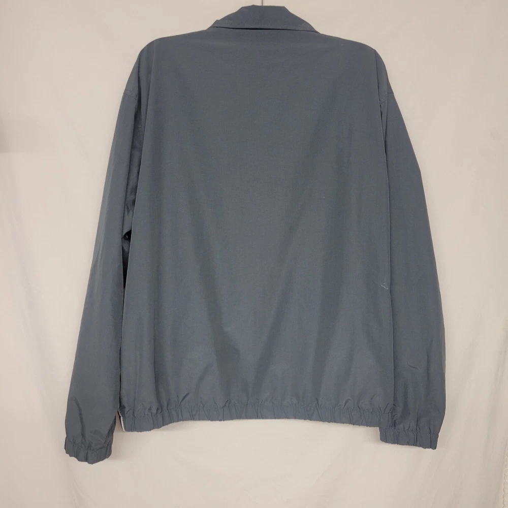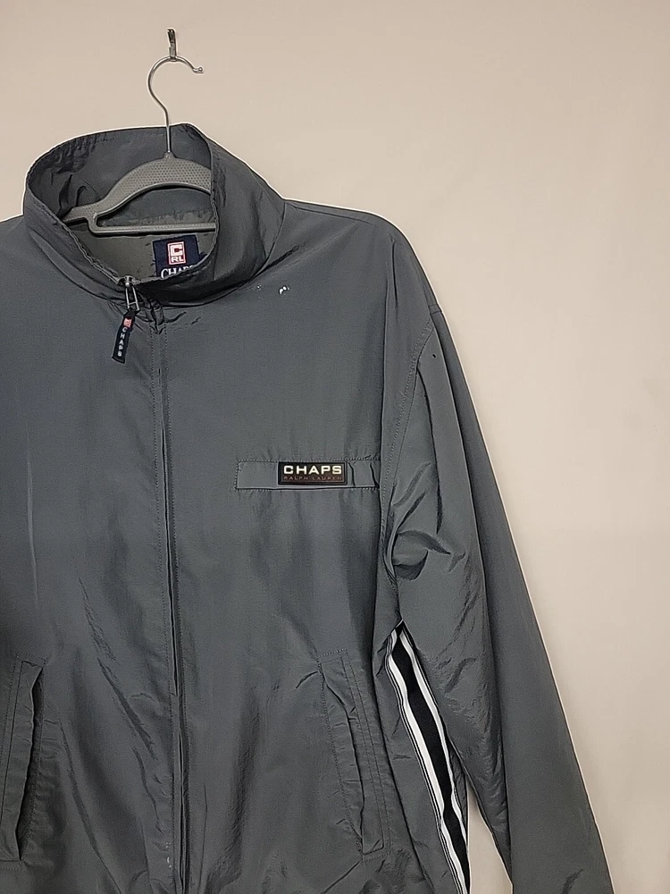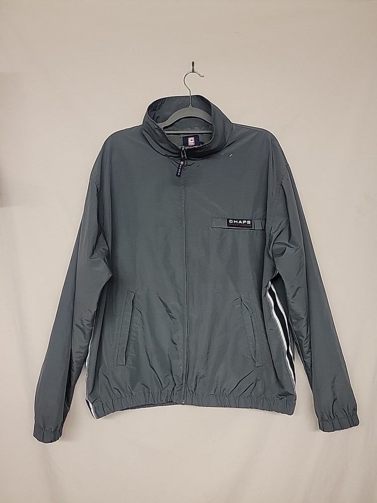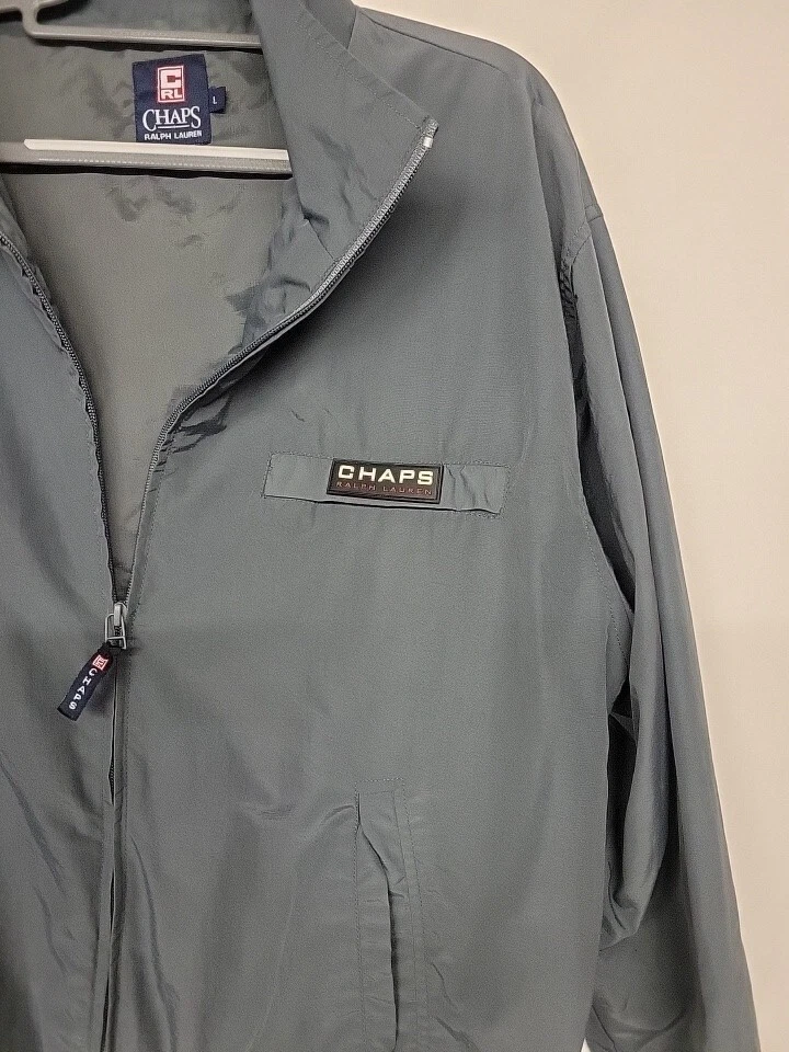 This vintage Chaps Ralph Lauren windbreaker jacket is a versatile piece perfect for any occasion. The jacket is made of durable nylon material and features a stand-up collar, full zip closure, and pockets for added convenience. The gray color and solid pattern make it a stylish choice for travel, casual outings, formal events, workwear, and business attire. The jacket is wind-resistant and water-resistant, making it suitable for outdoor activities such as walking, golf, and hiking. The Chaps Ralph Lauren model is a classic fit, size Large, and is machine washable for easy care. The jacket is perfect for those who enjoy the outdoors and want a stylish and functional piece to wear.