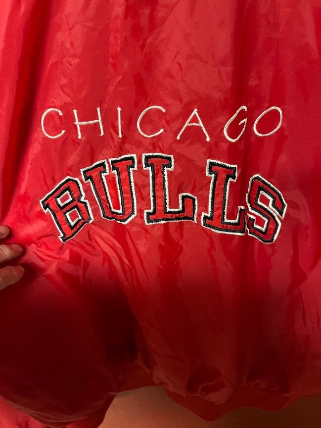 You are looking at a vintage NBA Chicago Bulls pullover wind breaker. Size large. By Logo 7. Pit to pit 25". Good shape. Thanks for looking....