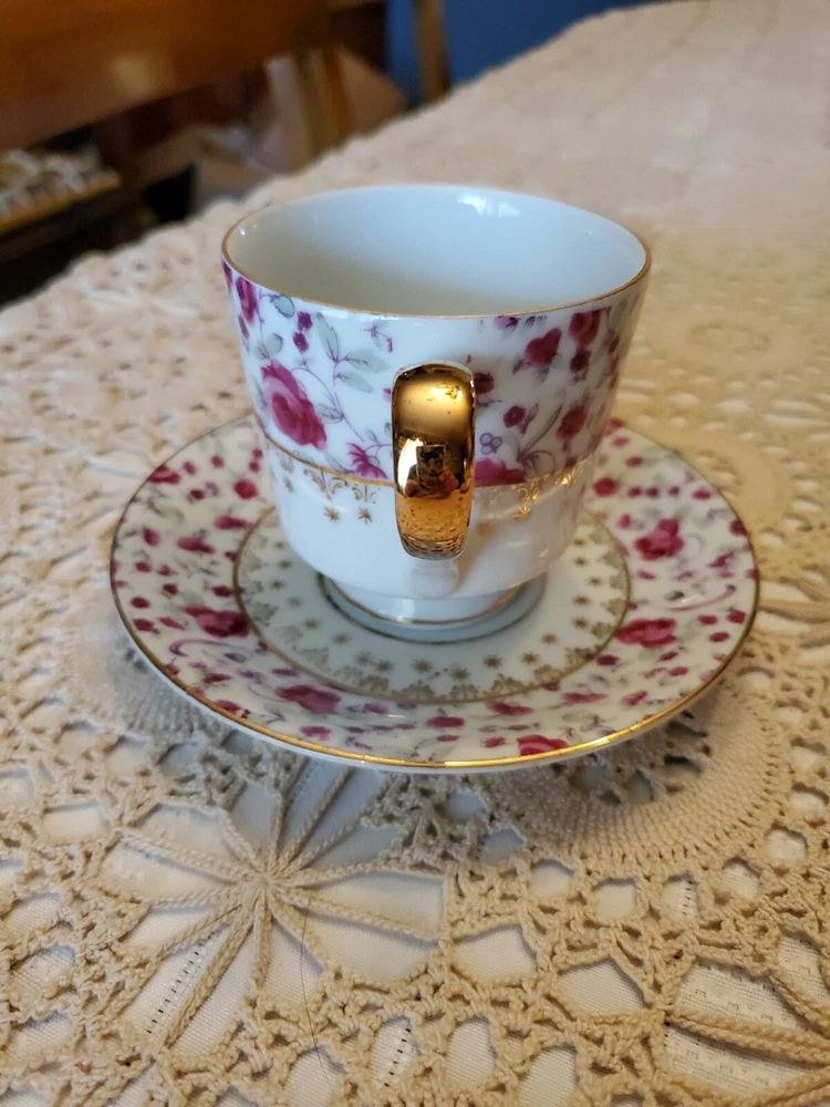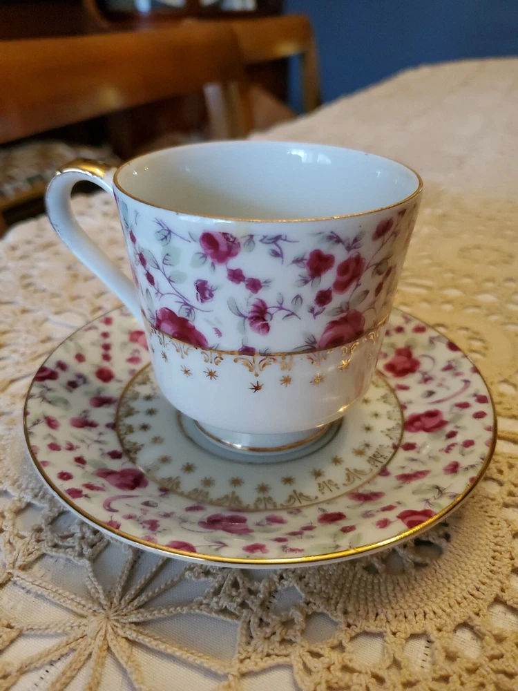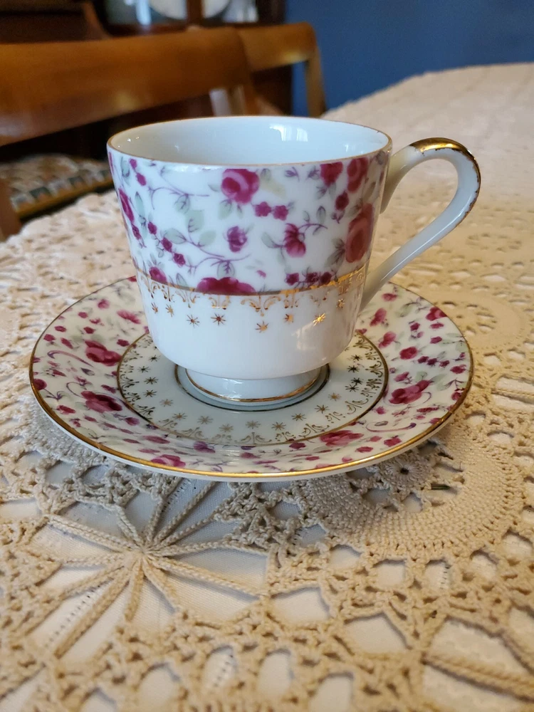 Vintage Choice Imports Japan Tea Cup Saucer Rose Design Gold Trim Saucer measures approximately 5.5" in diameter. Cup is approximately 3" tall. No chips, cracks or other defects. Please see all pictures as they are part of the description. Comes from a smoke-free home. Be sure to check out our other vintage listings!