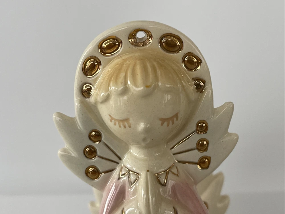 Vintage Christmas Angel Figurine Napkin Holder Praying Musical Wind Up Noel 6"x5" ships priority mail