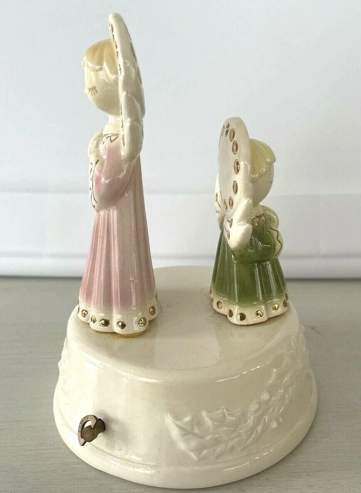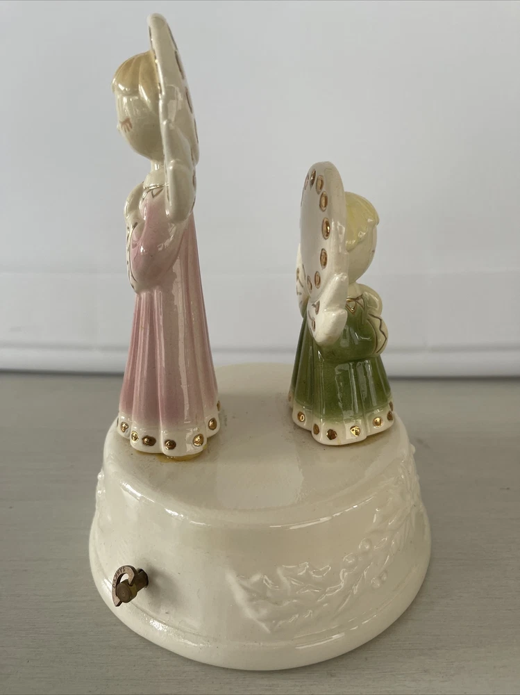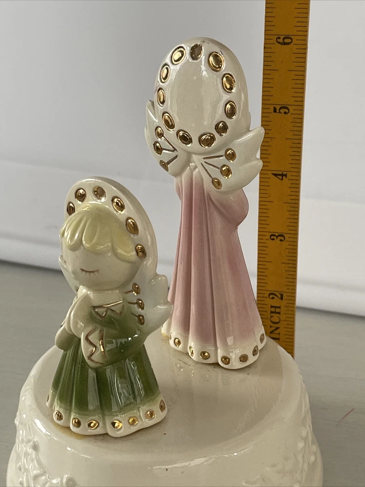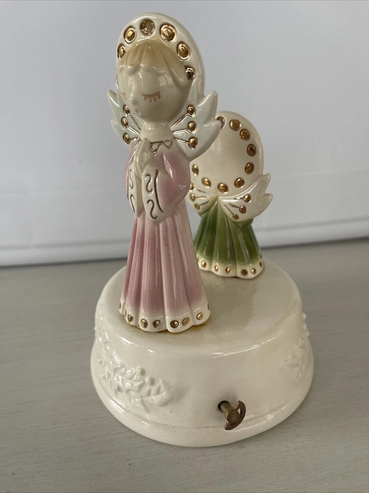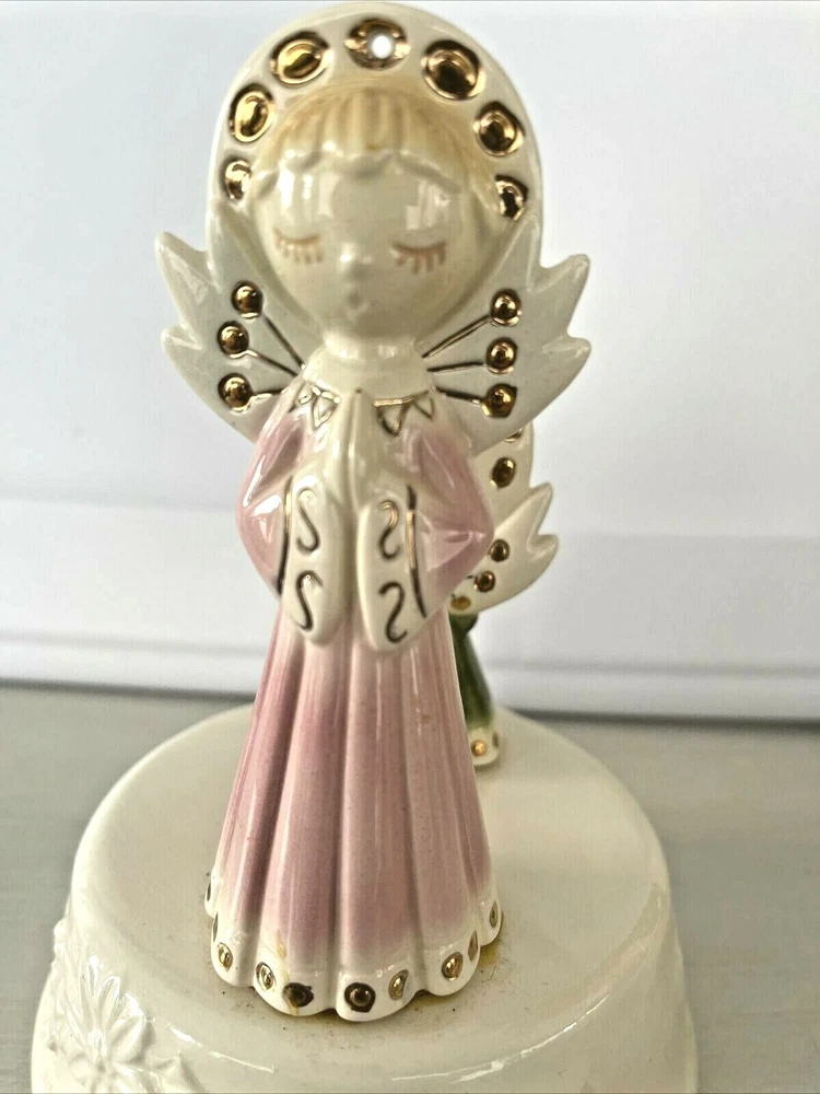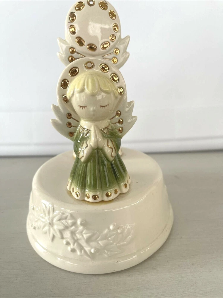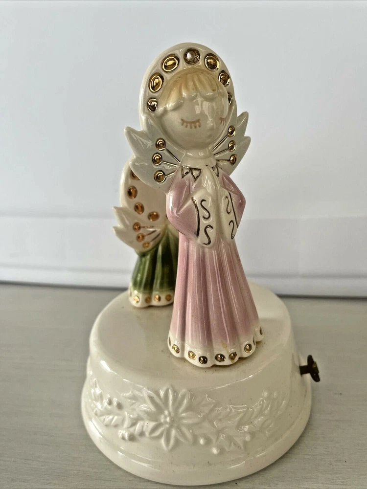 Vintage Christmas Angel Figurine Napkin Holder Praying Musical Wind Up Noel 6"x5" ships priority mail...