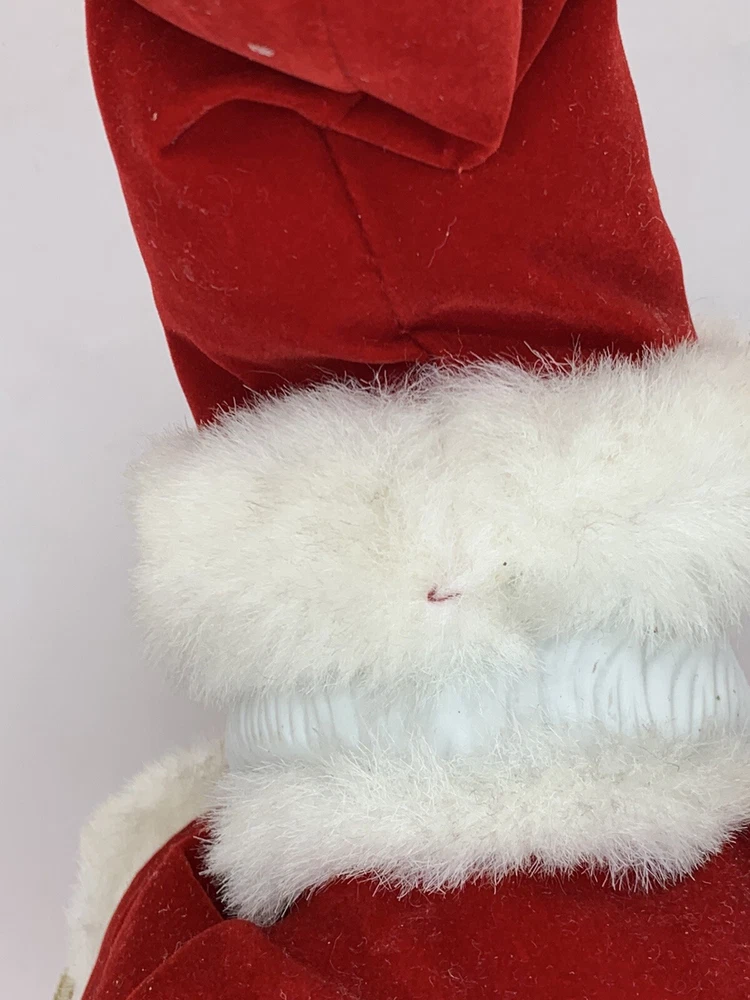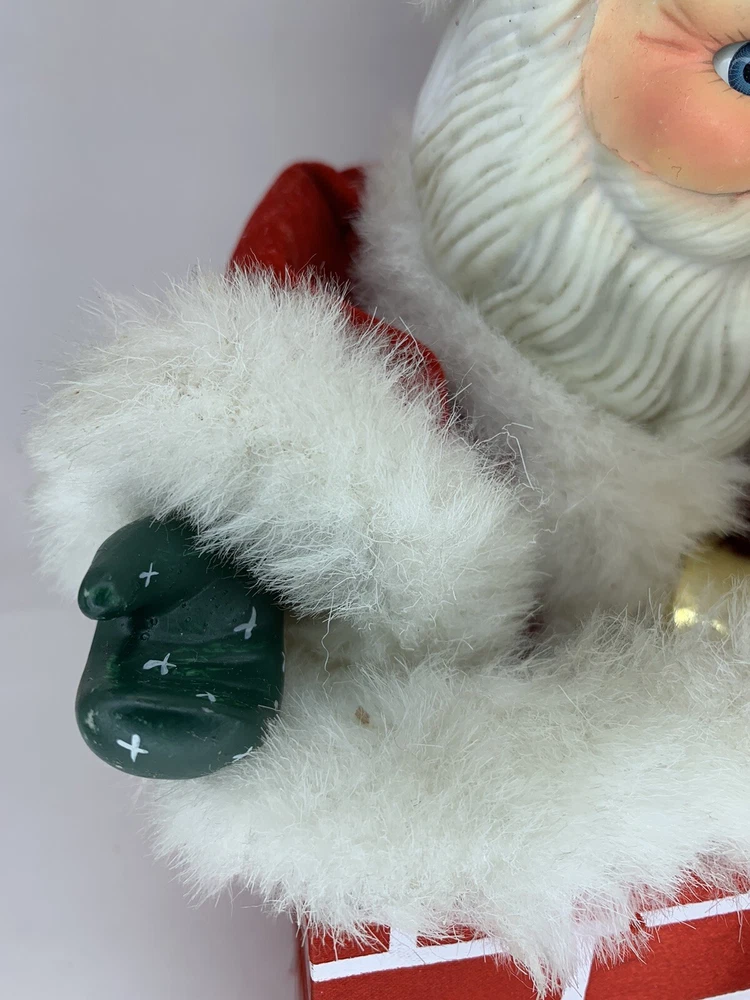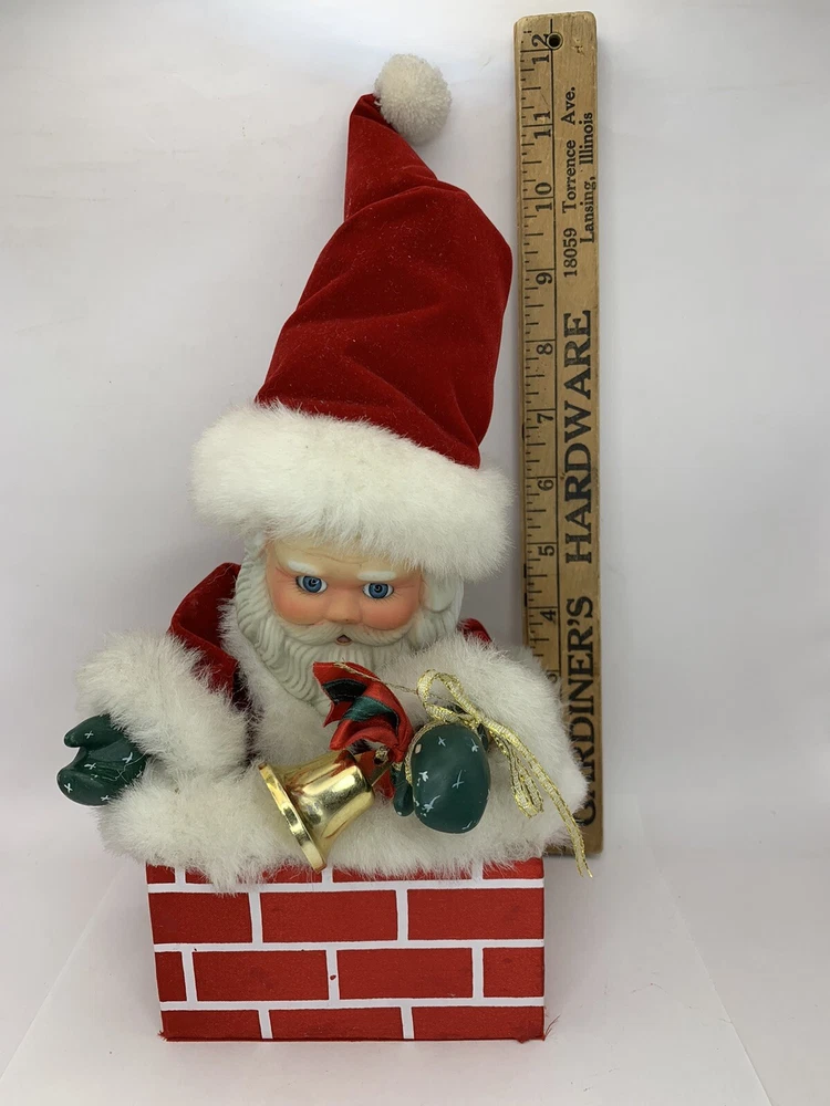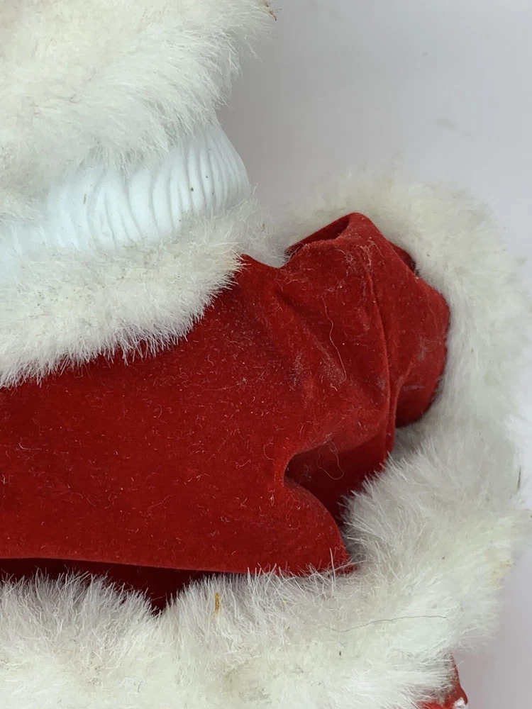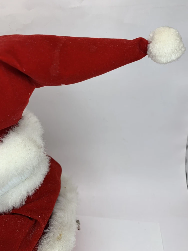 In good condition. Measurement in photos. Has expected wear (see photos, all sides pictured) . Very cute face! Typical imperfections in these type of figures. Has only been lightly cleaned. Santa very slowly moves his head around as Silent Night slowly plays, can also hear what sounds like plastic rubbing together. Found no Maker's Marks. Might be small things that were missed so please see all photos. Contact if still questions . ****Pictures very much part of condition assessment, please be sure to view all photos.**** All items sold as-is. Packed with great care. For combined shipping price, please purchase and REQUEST invoice for combined shipping and wait before paying. International Shipping only through eBay's Shipping, so no Combined Shipping and will have additional costs associated. Thank you for looking!