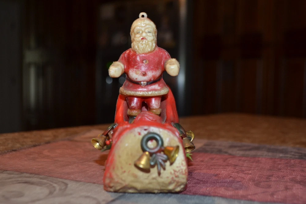 Old sleigh windchime. Made in Hong Kong. Measures approx 4" front to back, 4.5" tall with additional 6.5" from bottom of boot to ball chime. Thanks for Shopping!...