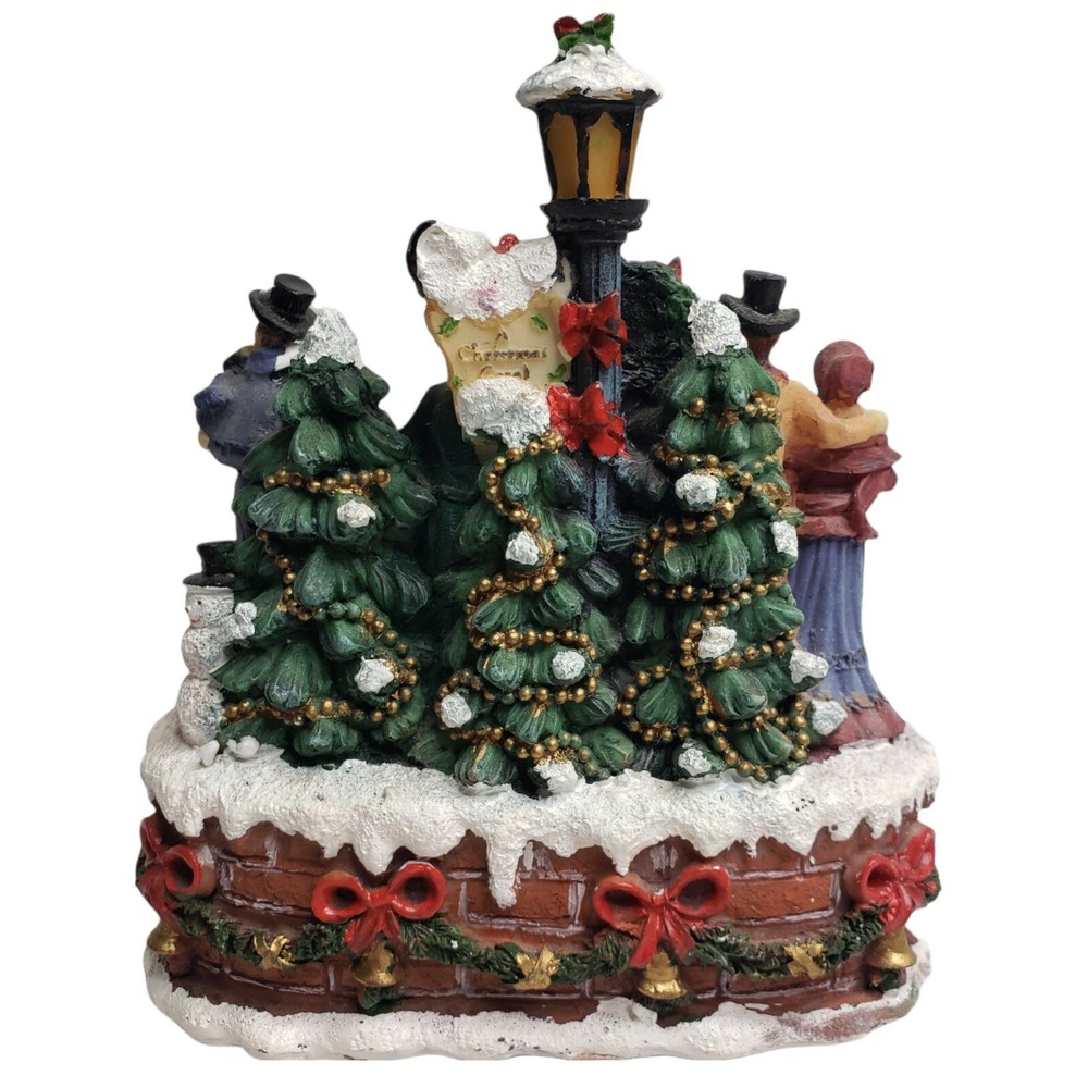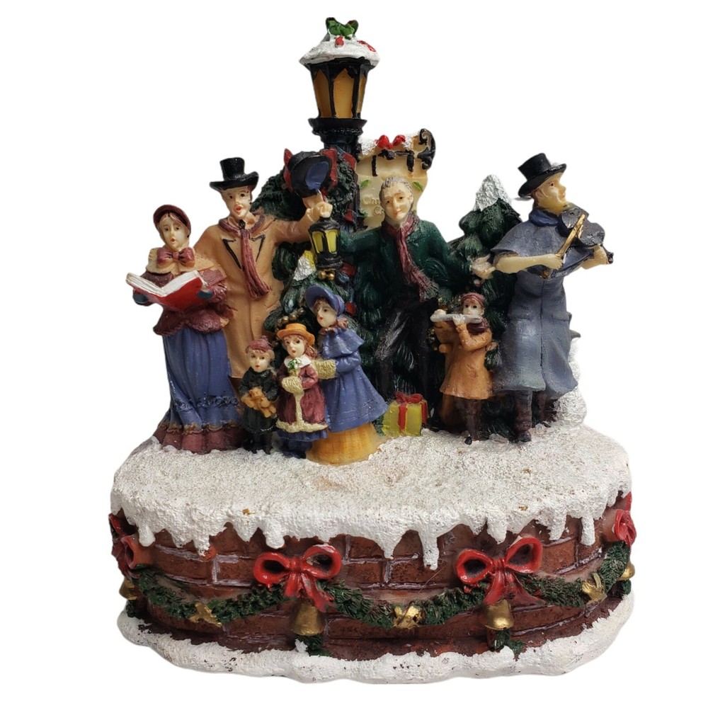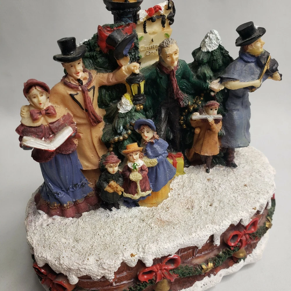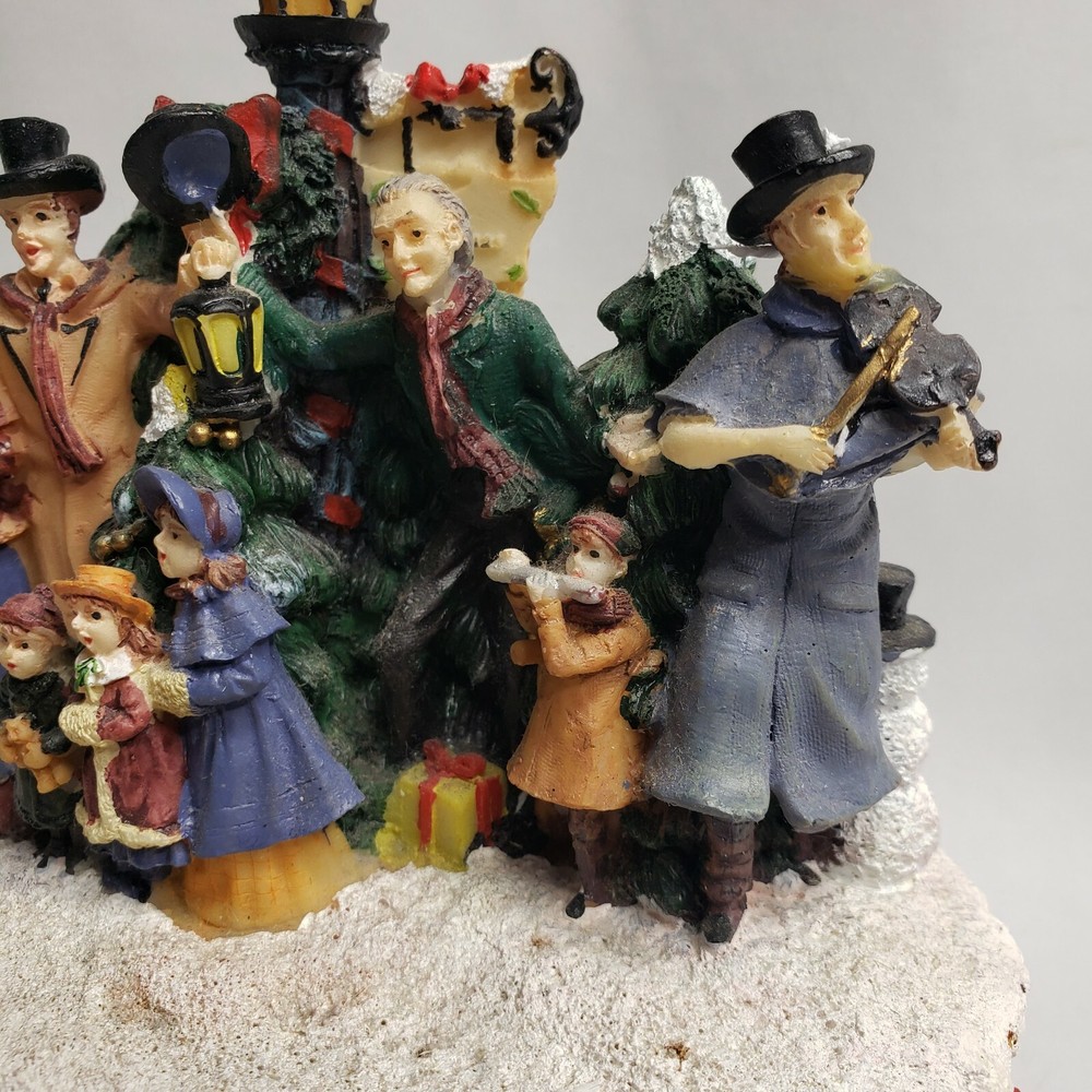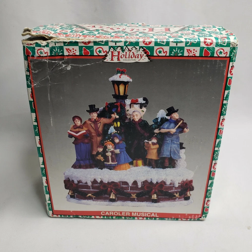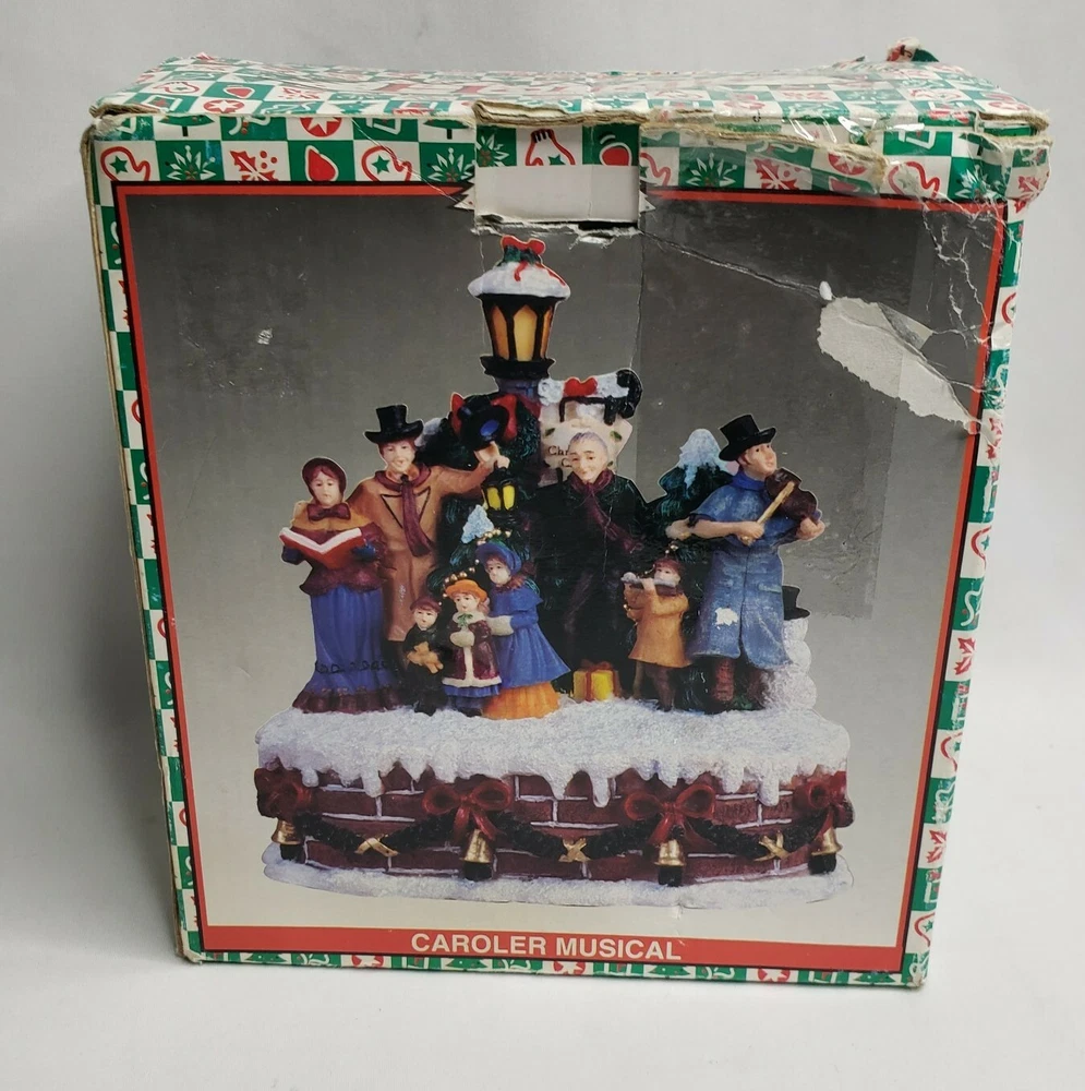 Vintage Christmas Carolers Wind up Village Figurine Resin Display Holiday Box does have some vintage storage wear. The musical carolers are in good shape, no chips or flaws to note Plays a couple different songs