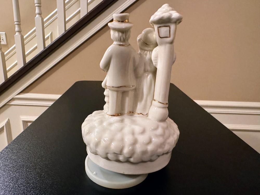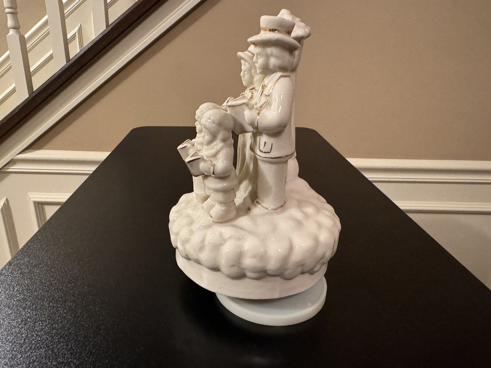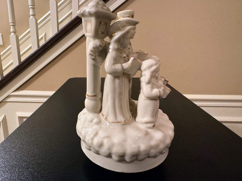Bring the joy of Christmas to your home with this charming vintage wind-up music figurine. Featuring a group of carolers singing around a lamppost, this porcelain figurine plays “We Wish You a Merry Christmas” while gently rotating on its base. The clean white finish with gold accents makes it a timeless addition to your holiday decor. It’s in great condition with no chips or cracks and is ready to be displayed or gifted. • Plays: “We Wish You a Merry Christmas” • Rotating base adds a festive touch • Approximately 9.5 inches tall • Perfect for holiday decor or as a thoughtful gift Add some Christmas cheer to your home with this delightful figurine! Return Policy: I offer 30-day returns on all items. To qualify for a full refund, items must be returned in the same condition as received, including all original accessories and packaging materials. If an item is returned in a different condition, a partial refund may be issued. Before initiating a return, please provide clear photographs of the item, highlighting any areas of concern. This helps me process your return more efficiently. Please review photos and descriptions carefully, and feel free to ask questions.