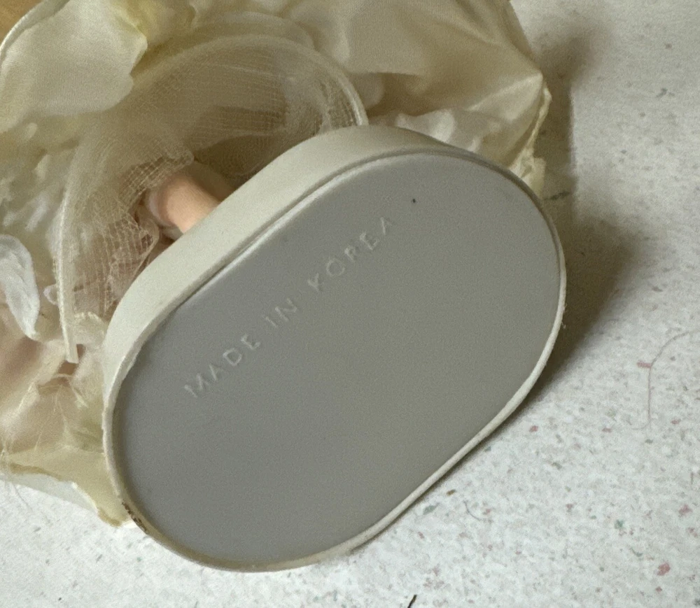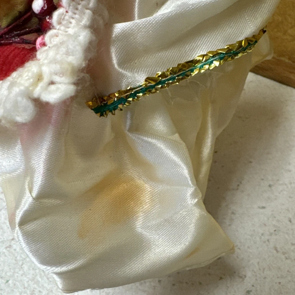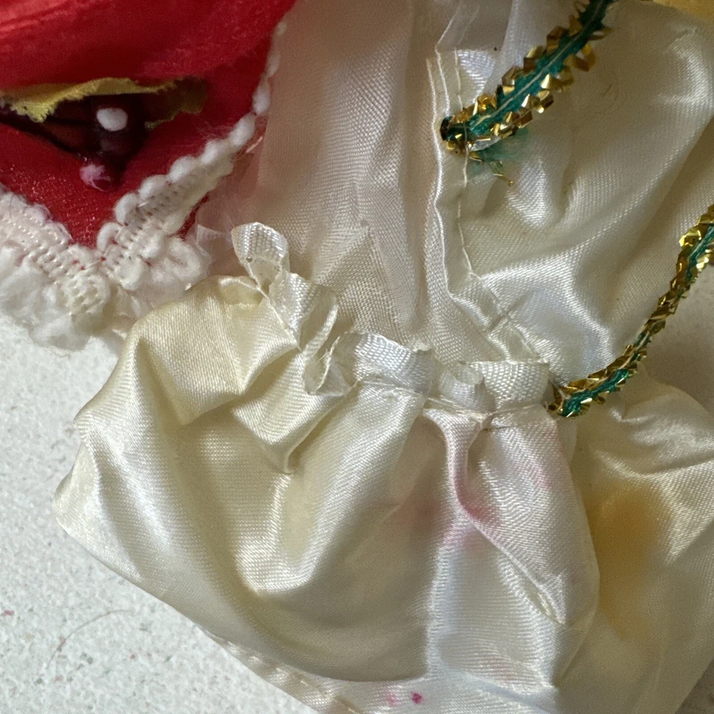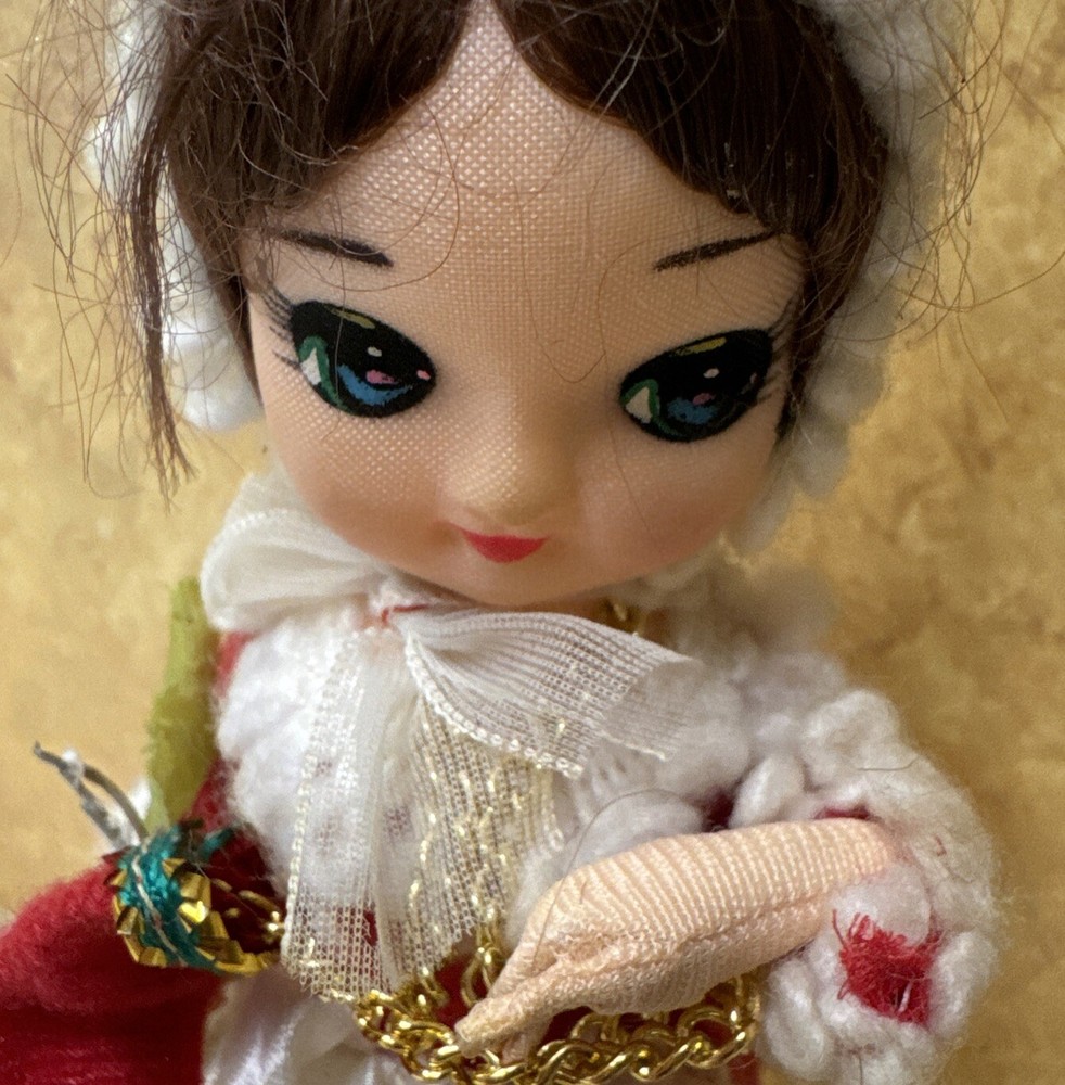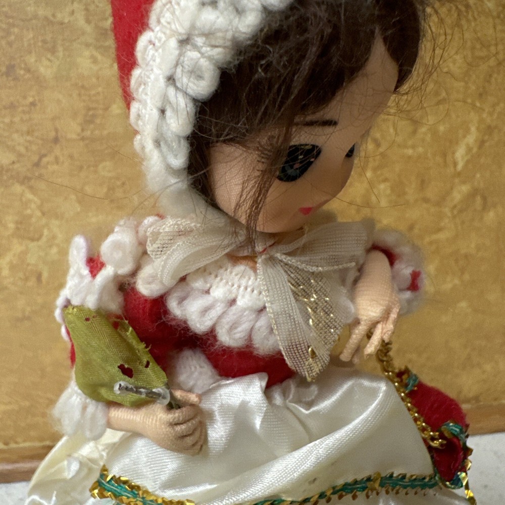 This vintage Christmas figurine is a must-have for collectors and fans of holiday decor. Featuring a classic design of a dashing through the snow, this wind-up musical doll figurine is sure to bring joy to any room. The white color and intricate details make it a perfect addition to any Christmas display. With a wind-up, this figurine is perfect for collectors who appreciate the charm of vintage Christmas decorations. The musical feature adds an extra touch of whimsy, making it a great gift for anyone who loves Christmas. Add this charming piece to your collection today! Figure turns with the music. Has some age stains on bottom of dress