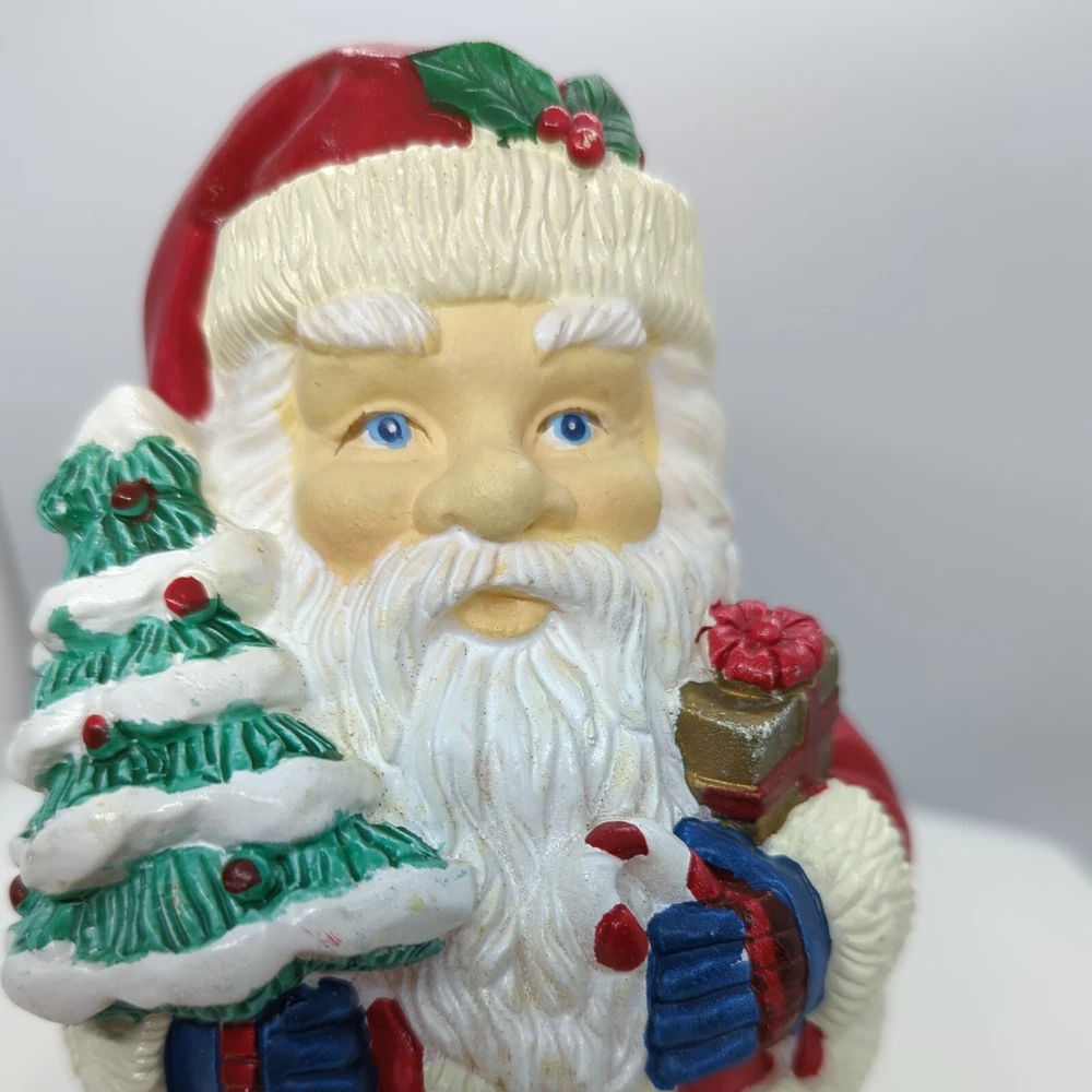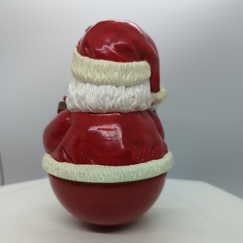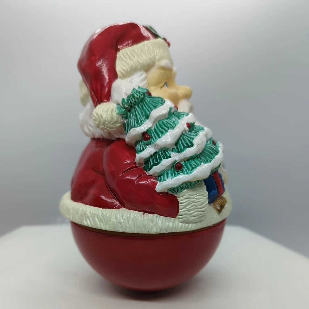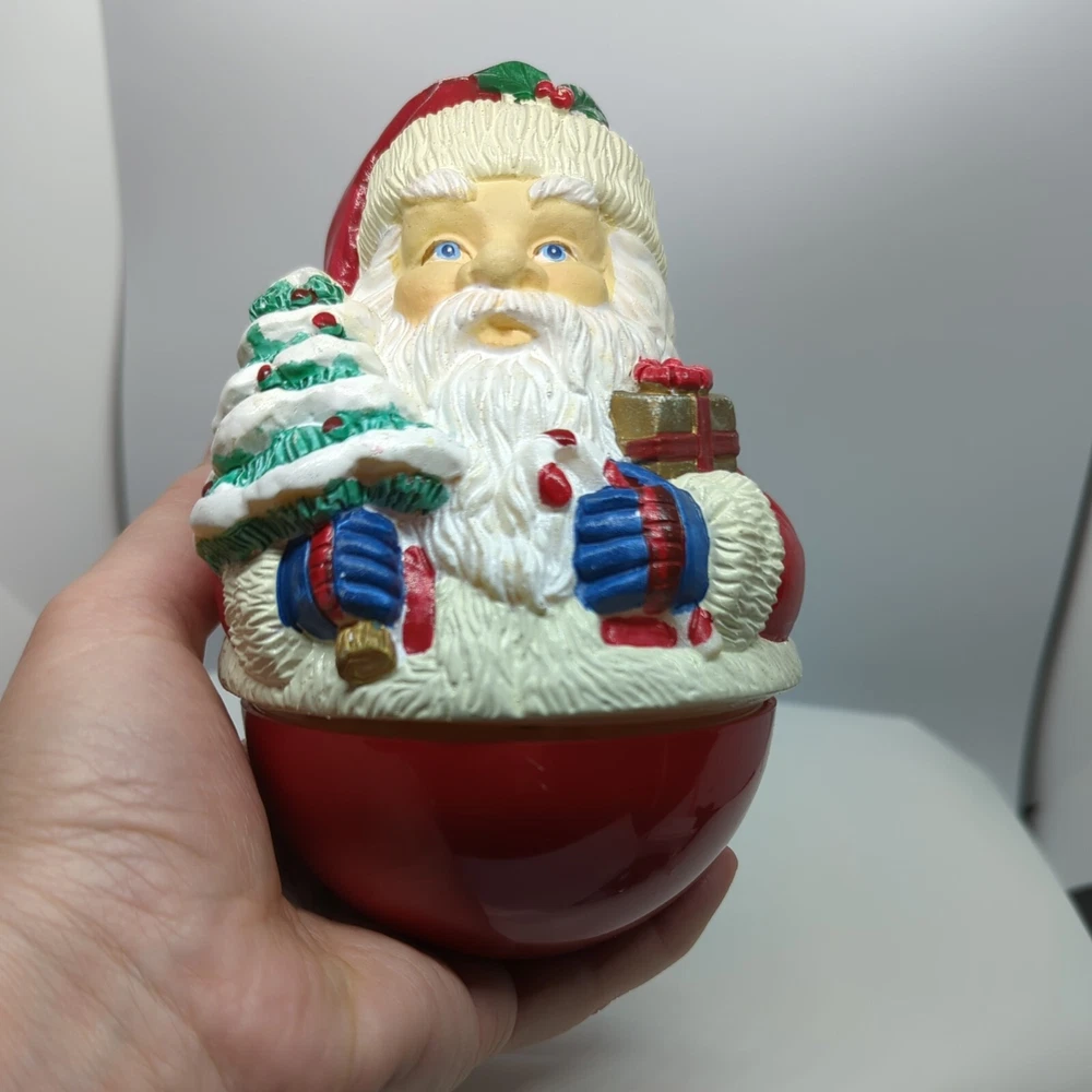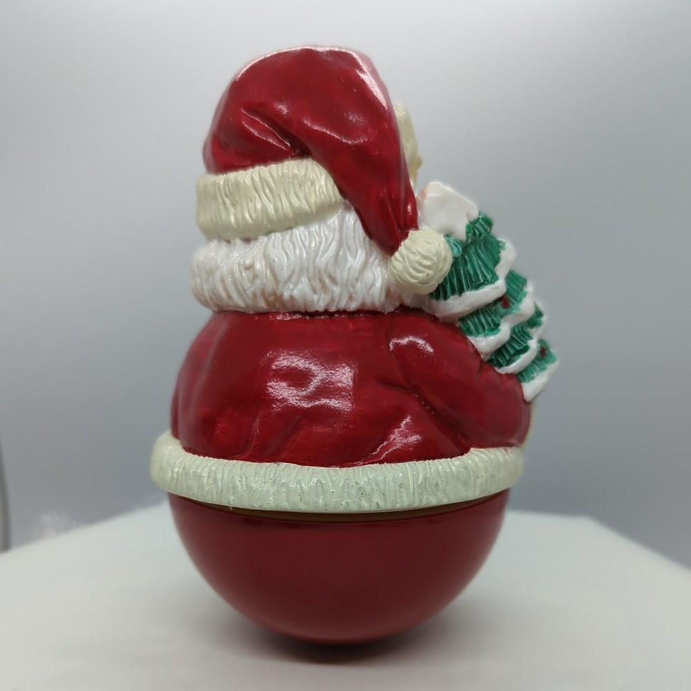 Vintage Christmas Roly-poly Santa Claus Wind up Music Box Christmas Tree Gifts. Pre-owned but in great working condition. Very heavy. Painted very nicely. Look at that face and his blue eyes. When you wind it up, it rotates and plays Jingle Bells. Please refer to the pictures for the item condition and size. Shipped with USPS Priority Mail. X1 - L