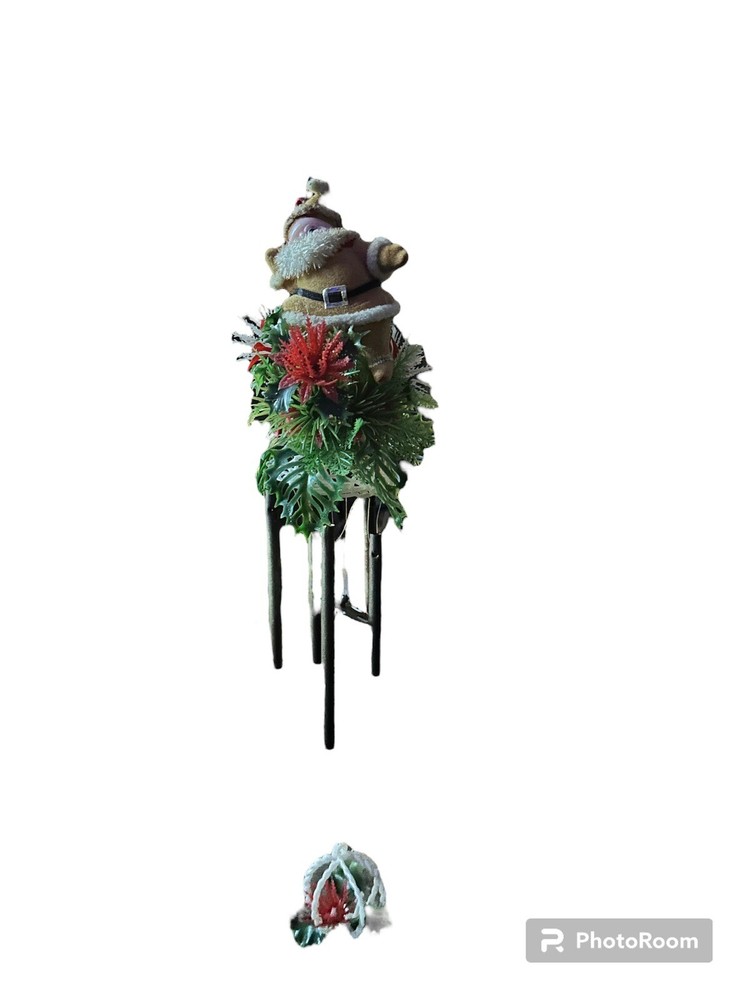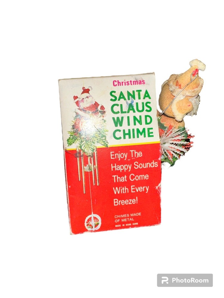 Bring some Christmas cheer with this vintage Santa Claus wind chime. Made for the holiday season, this collectible figurine doubles as a charming decoration for your home. The delicate design produces a gentle tinkling sound in the breeze, perfect for setting a festive atmosphere. Crafted with care, this wind chime features a classic Santa Claus figure, complete with red suit and white beard. Hang it up on your porch or in your garden to welcome guests with its whimsical charm. Celebrate the season without mentioning the item's condition, and add this unique piece to your collection today.