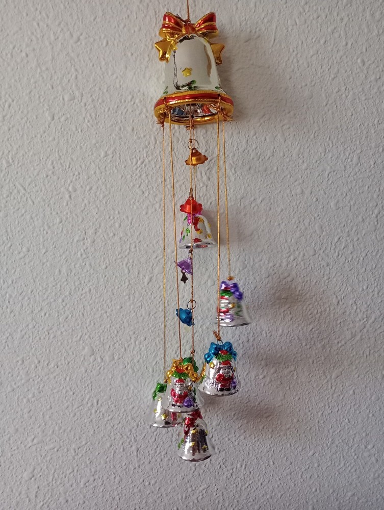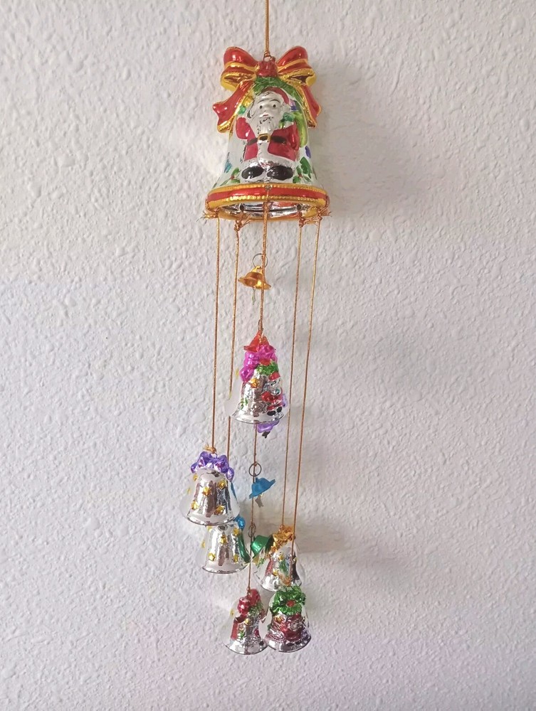 Vintage Christmas Santa Wind Chime 7 Bells Hand Painted Ceramic Mercury Stars Bells are in good used condition. One is missing some paint on the top. A few imperfections. Please look at the pictures carefully. We are happy to help with other shipping options if you need something. Please ask. More similar items in our store. Thank you for looking.