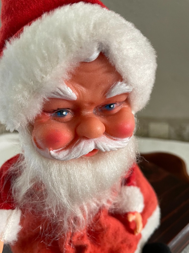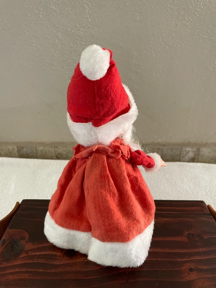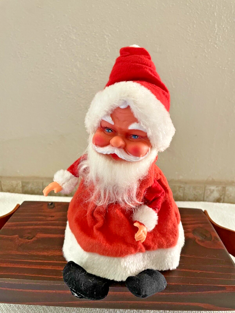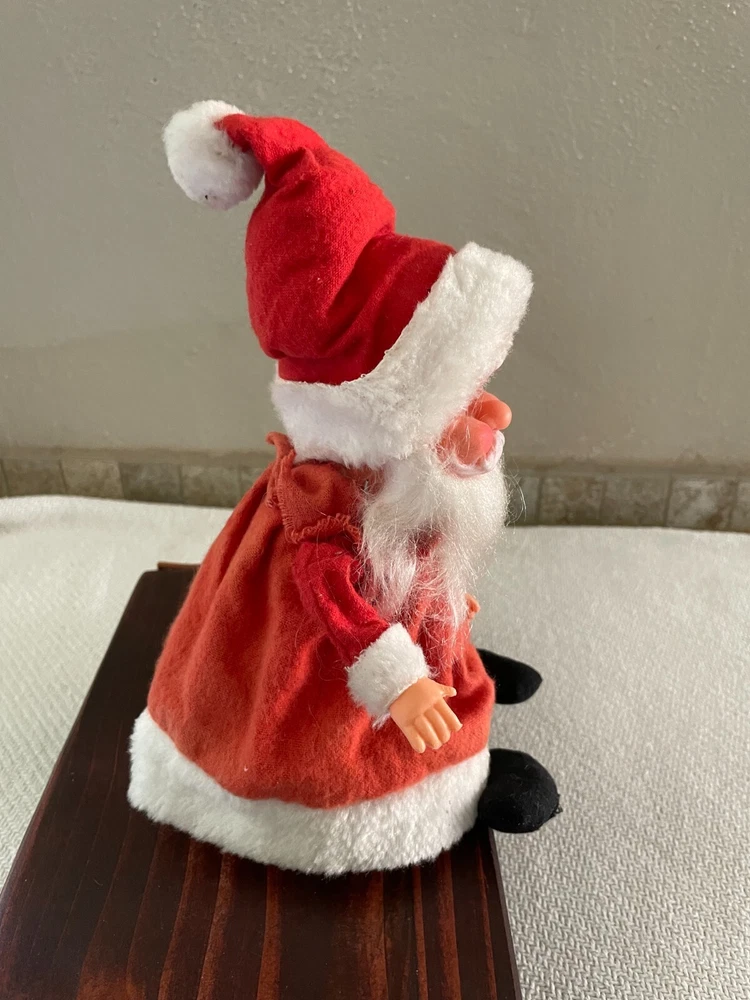Vintage - 1960s Christmas Decoration Santa Wind up: Plays music - Jingle Bells Moves head to music Vinyl face and hands Fabric robe and hat Paperboard stand Approximately 9" tall Made in Hong Kong Good vintage condition Tested and working. See VIDEO and pictures Thanks for looking! I try my best to have accurate and detailed descriptions of each item itself. Being human I may miss a few things here and there. However, if there is an oversight on my part I will gladly work with you to solve the problem. Please view my pictures carefully for complete description information and be mindful that actual color may vary slightly in pictures due to photo lighting and/or different color monitor settings. Item will ship promptly within one-two business days via USPS with delivery confirmation upon clearing of payment. Payment is required within 48 hours of auction ending/purchase completion. I only ship globally through eBay global shipping. I will get your item into the mail within 2 days, but I have no control after that as to how long the global shipping center will take to process your item and how long your local delivery system will take to deliver your item. I also have no control over extra shipping fees or charges which are imposed after the item leaves me. FEEDBACK: I would appreciate it if, once you have received your item(s), you provide me with positive feedback. I will leave positive feedback for you as well. If, for any reason, you are dissatisfied with your item(s), please be sure to contact me for resolution prior to leaving negative or neutral feedback. Thanks so much!