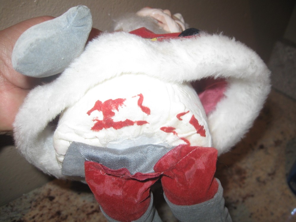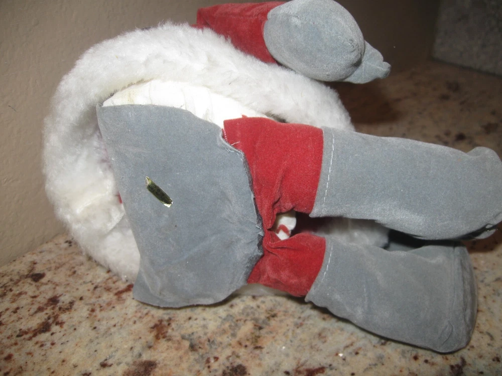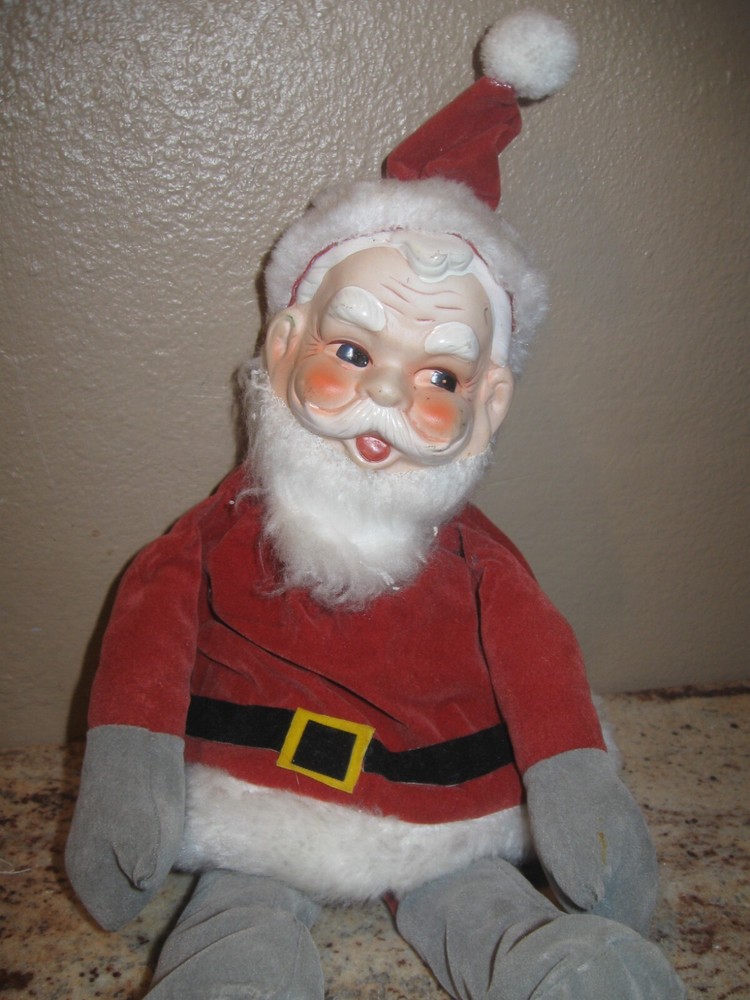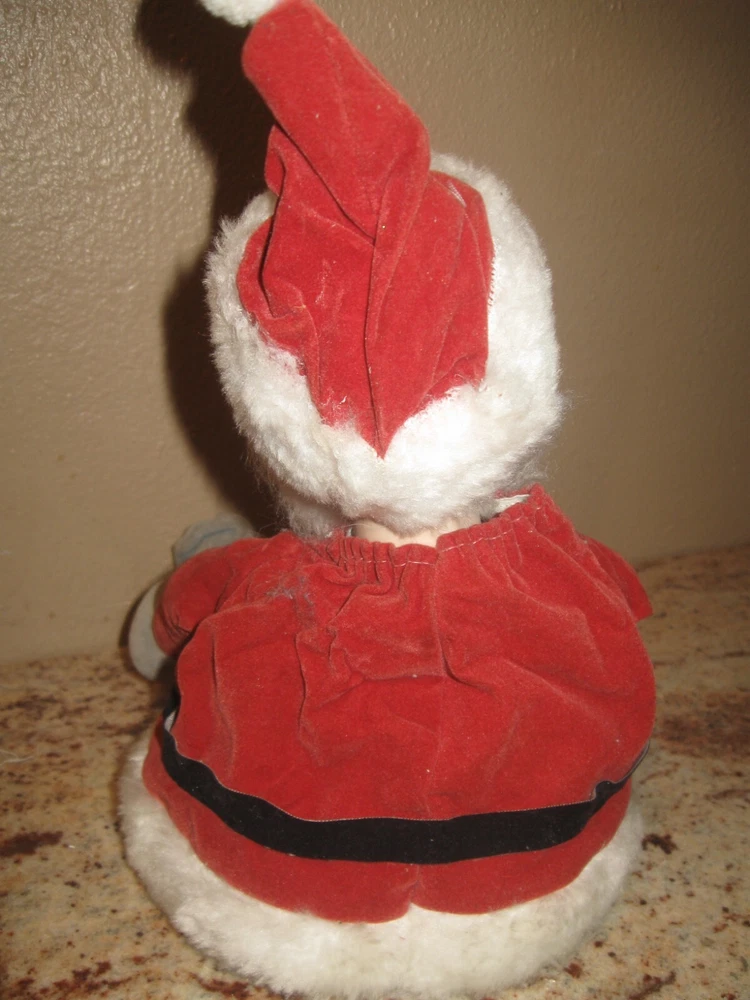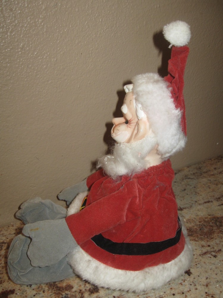 Vintage Christmas Wind Up Musical Santa Claus Shelf Sitter. Wind him up and his Head moves to the song "Santa Claus is Coming to Town." He is a but faded and the material on hos bottom needs glued down. He measures about 11" without the standing up hat. The sticker on his bottom reads "made in Tiawan R.O.C." Please see pictures and thanks!