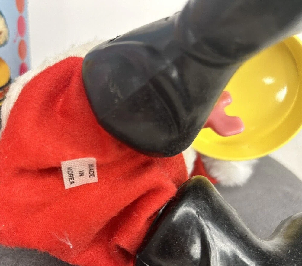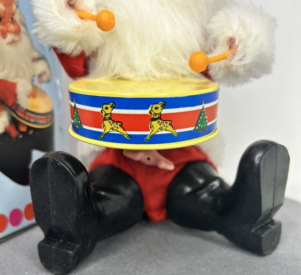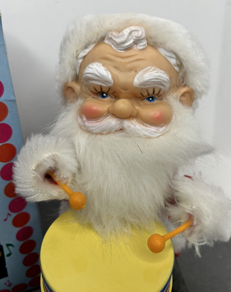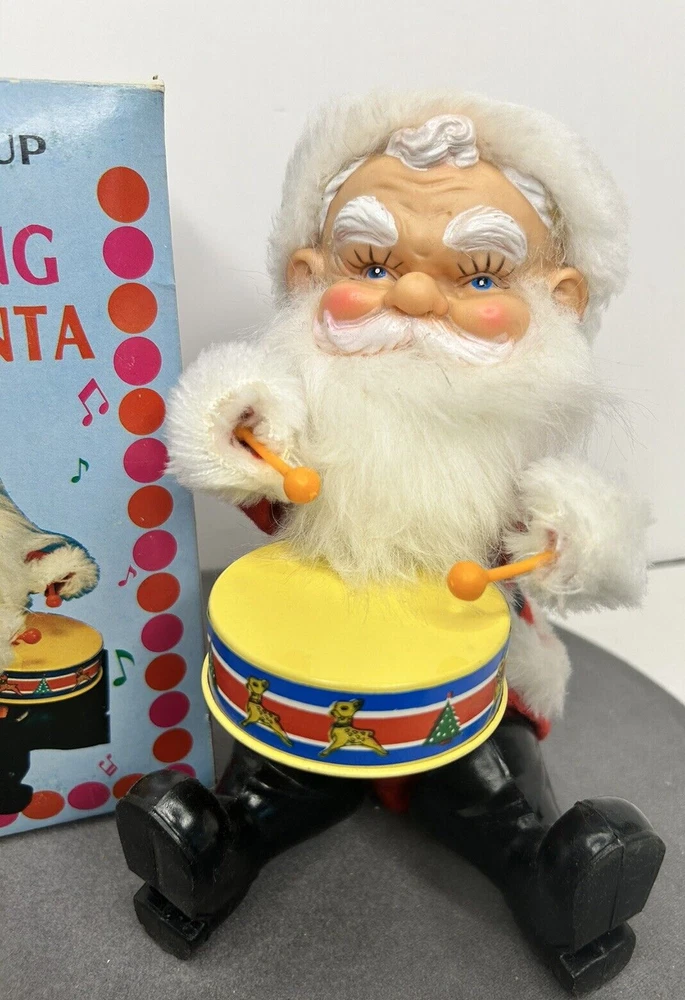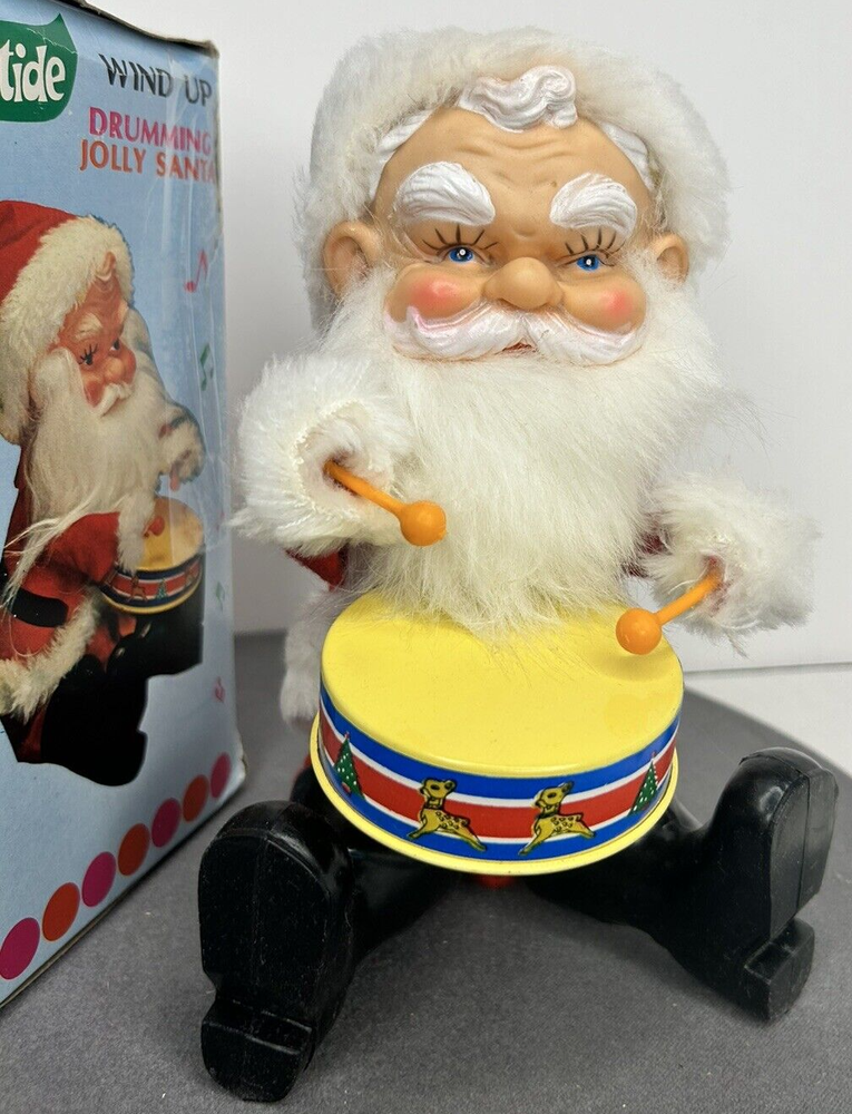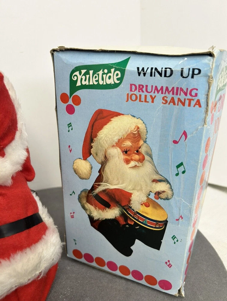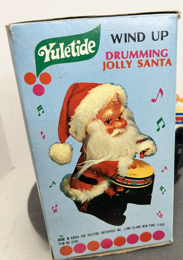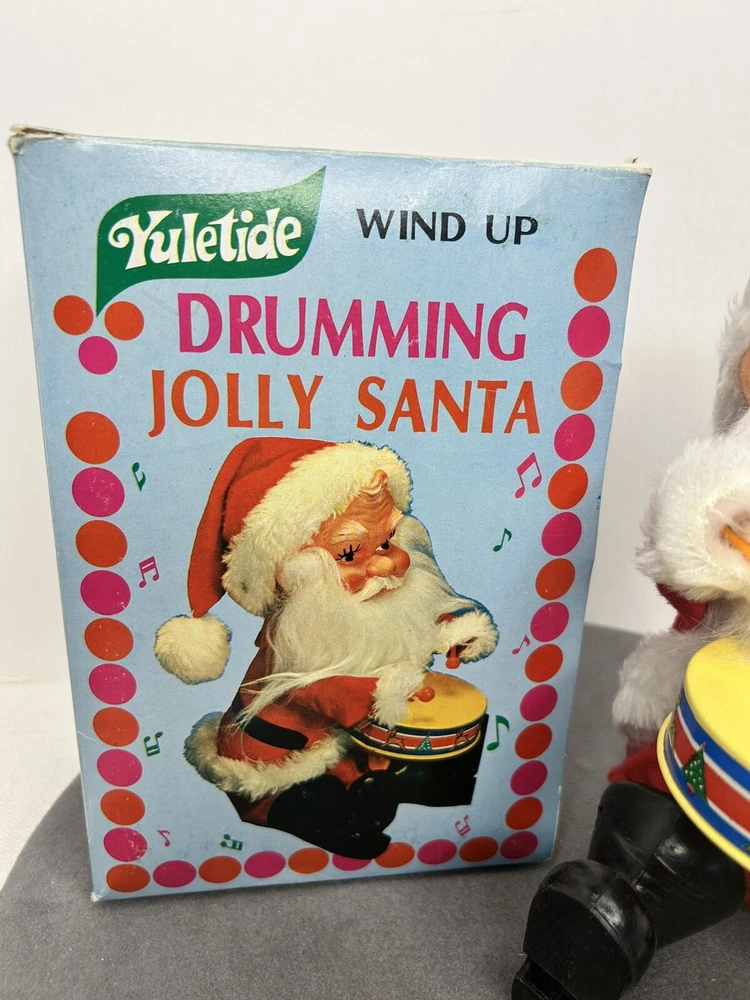 This vintage windup Santa Claus Christmas toy from Yuletide Enterprises is a must-have for collectors of holiday memorabilia. Made in Korea in 1978, this figurine features a jolly old Santa drumming on his drum, ready for the Yuletide season. With its vibrant red color and classic 1970s style, this Santa Claus toy is sure to bring joy to your home during the Christmas holiday season. Perfect for display or play, this collectible is a great addition to any holiday decor. Vintage Christmas Yuletide Drumming Jolly Santa Claus Wind Up Toy 1978 ~ Korea is in fantastic vintage condition, works well and comes with its original box. Please review all pictures and video for proper assessment of its fantastic vintage pe-owned condition, please note the original box does show wear consistent with its vintage age.