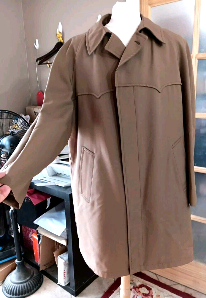Vintage Best Season Mate All Weather Western Style Tan Coat Zip Liner Sz 50L Brand new without tags. Absolutely perfect, vintage coat. Photos of actual item and sold as is. This is a vintage Best Season of Boston tan coat in size 50L for men, featuring a western style with amazing yoke and pocket details. It has a button closure, removable lining, and is made of polyester with water and wind-resistant properties. The coats design includes shoulder pads, pockets, and with removable lining is suitable for all seasons, making it ideal for travel, casual, or business occasions. All measurements are approximate: Underarm, measured side seam to side seam X2= 53" Length= 39" Sleeve= underarm seam to cuff- 18.5" Please review photos thoroughly to your satisfaction and ask any questions prior to bidding. I try to point out any defects or flaws visible to me. This item may show some signs of wear, but unless noted we see no outstanding or major flaws. Thank you for taking the time to insure we have a positive 5 star transaction. Please note: We have not laundered this item, we will send to you as we have found it.. It may contain unnoticed minor surface imperfections. May need steamed or pressed due to shipping. Item sold as is. Mamajovintage is about searching and finding unique treasures, wonderful items that add interest to your life, useful, enjoyable, fascinating or just fun to have. I source from everywhere, if it speaks to me then I acquire it and hope that it is just the thing to add value to your day... Please check out all my items I have an eclectic collection, but vintage is my true passion. Thank you for stopping by. 1815HangT200