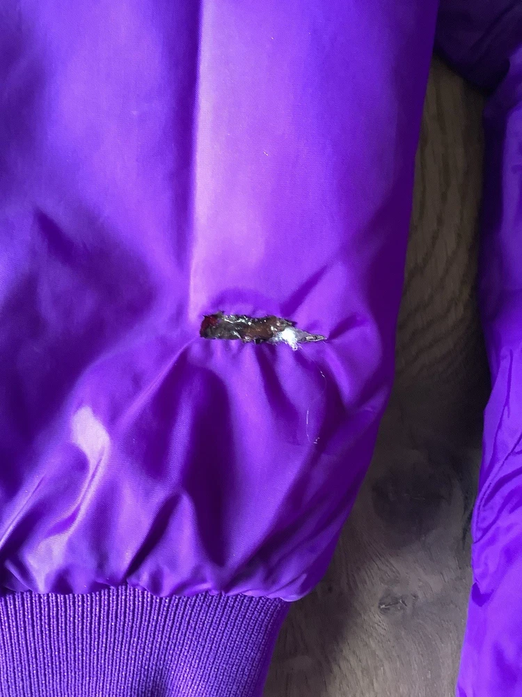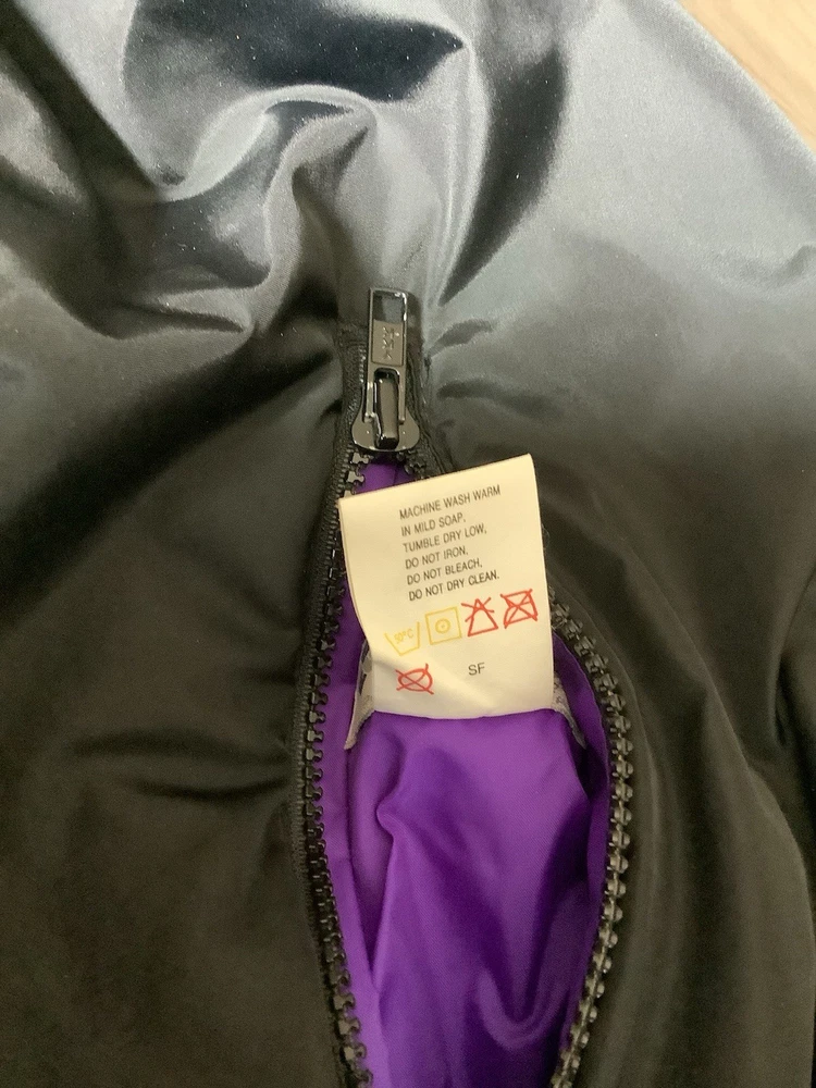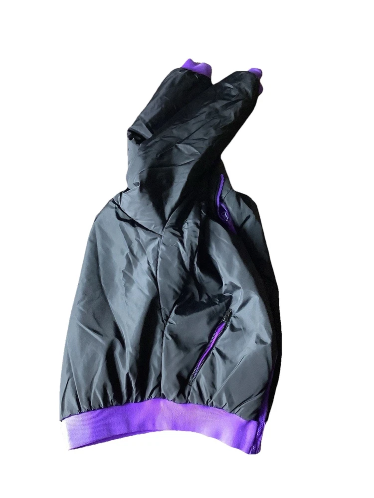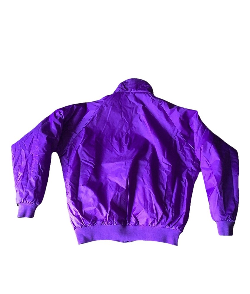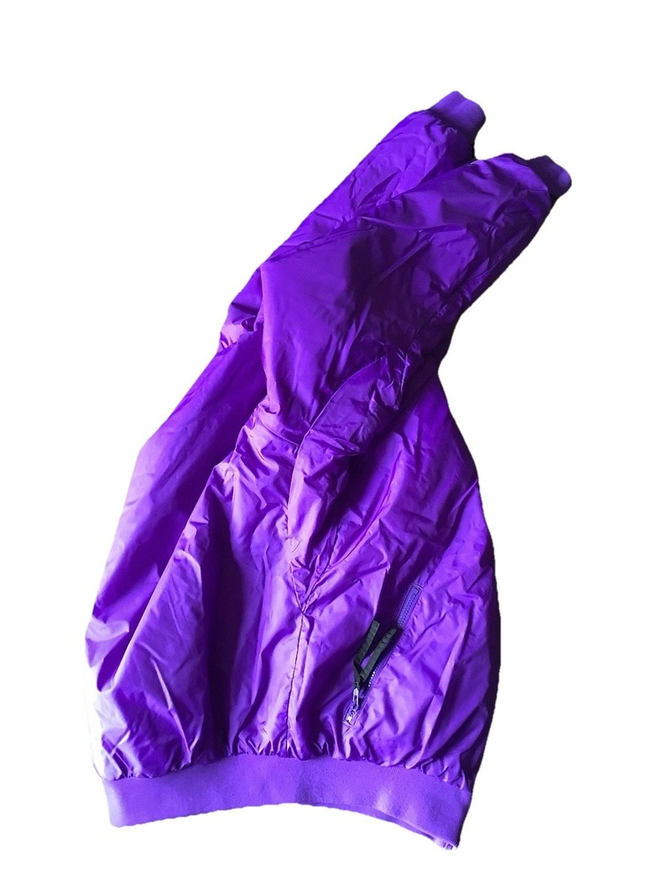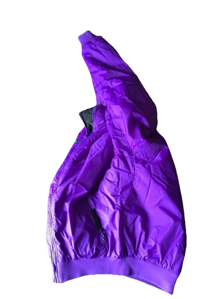 This vintage Columbia jacket is a stylish and versatile addition to any wardrobe. The reversible design allows for two different looks in one garment, perfect for casual outings or outdoor activities. The puffer style provides insulation and is wind-resistant, making it ideal for winter activities such as walking, riding, skiing, snowboarding, and hiking. The jacket is made of durable nylon and polyester materials and features a full zip closure, stand-up collar, and elastic waist for a comfortable fit. The mid-length cut and solid black or purple color make it a timeless piece that can be dressed up or down. This jacket is perfect for those who love the 80s and 90s vintage look and appreciate the functionality of a reversible puffer coat. On the purple size there is one small spot of damage where it appears the nylon was melted. Pet free and smoke free household.