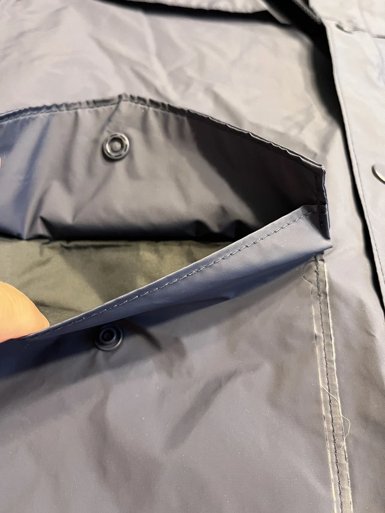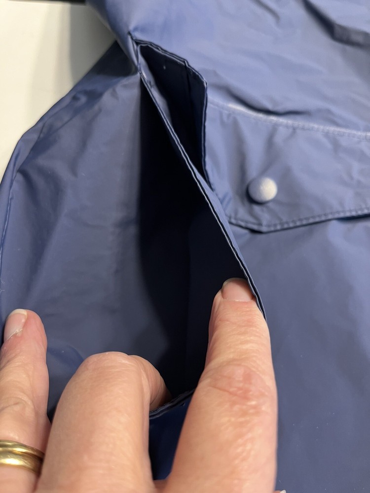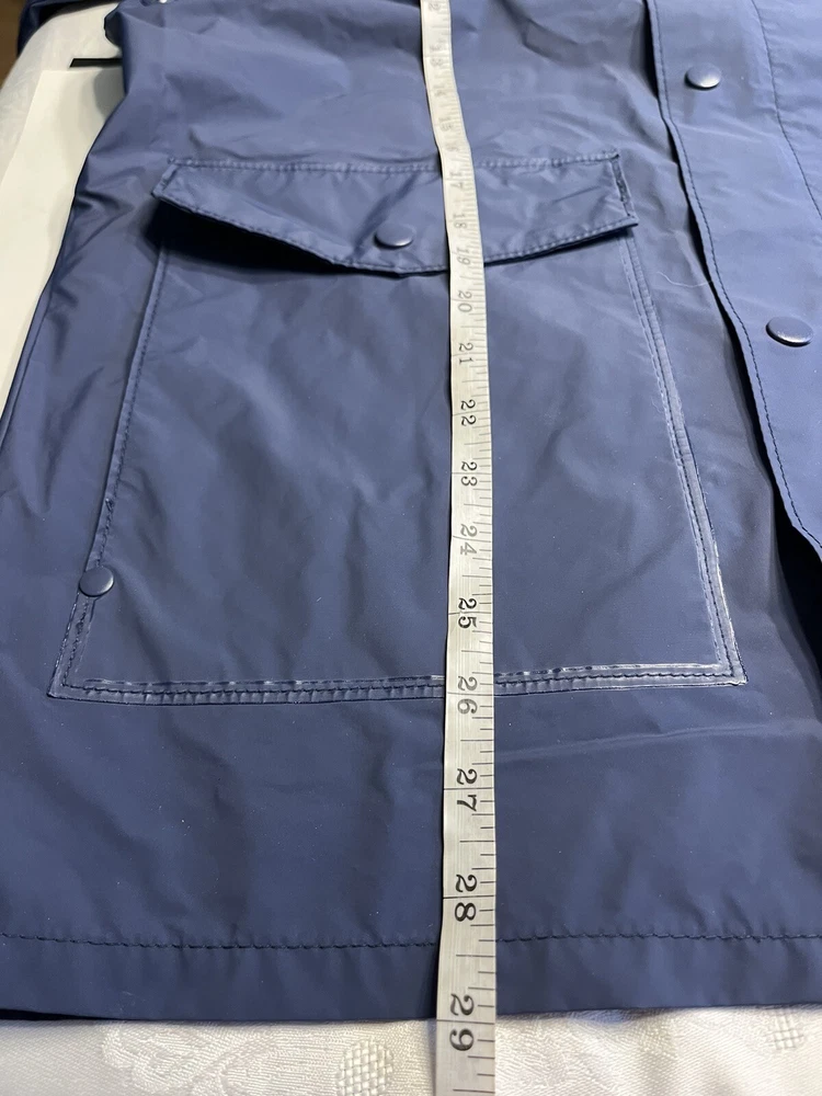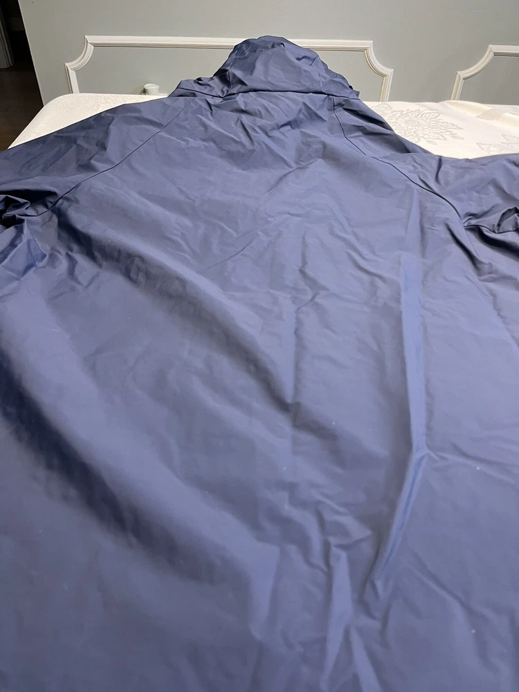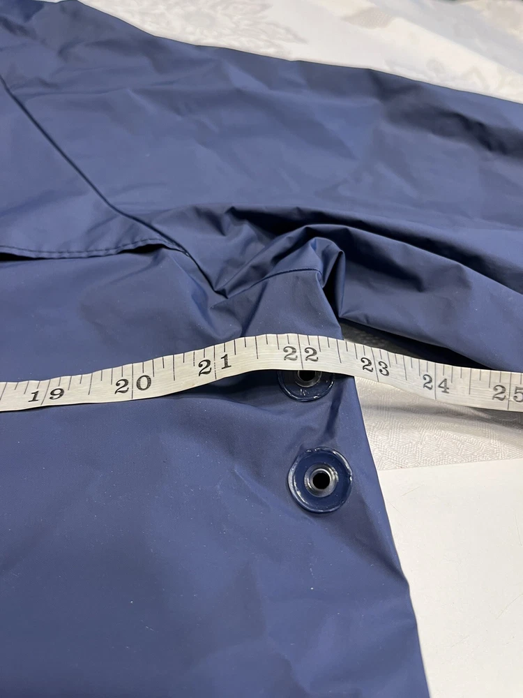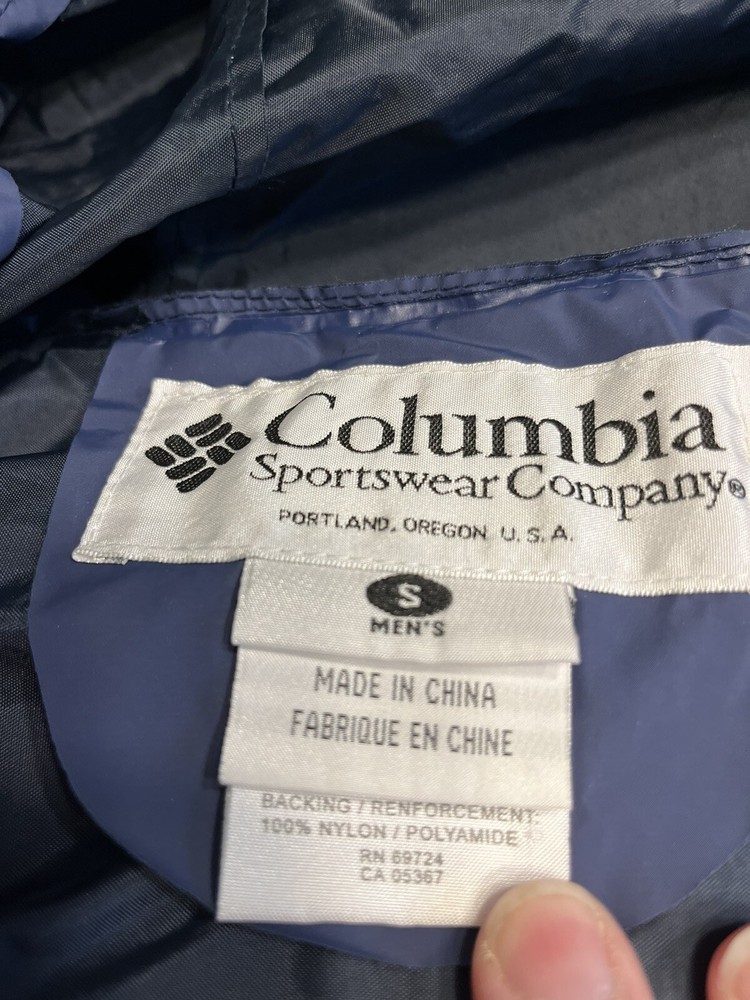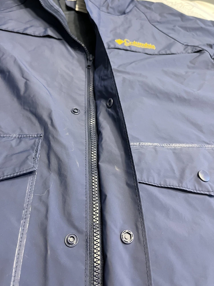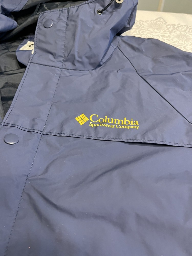 This vintage Columbia Sportswear Company hooded rain jacket is a stylish and practical addition to any wardrobe. The navy blue jacket features a solid pattern with a mid-length cut and is made from polyvinylchloride material for durability. The jacket is waterproof and wind-resistant, making it perfect for outdoor activities such as hiking, cycling, and running. The jacket has a relaxed fit with a hooded collar and a full zip and snap closure. It also has several features such as zipped pockets, a rubberized logo, and a limited edition design. This jacket is suitable for all seasons and occasions, whether it's for travel, workwear, or a casual night out. Get your hands on this rare piece from Columbia Sportswear Company and experience its lightweight, breathable, and packable design.