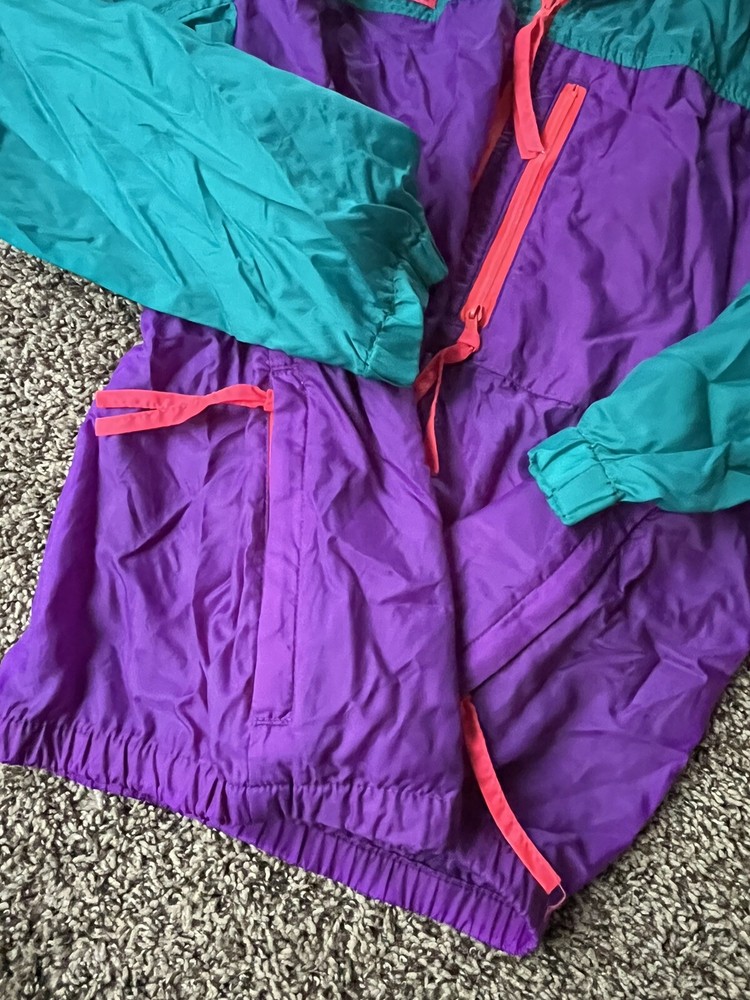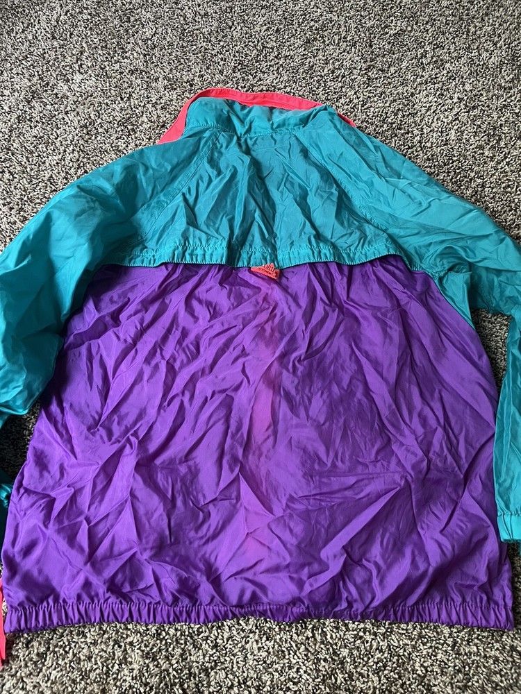 Vintage Columbia Wind breaker Womens Large Purple green Pink With Hood. In excellent condition no stains. From a smoke and pet free home.