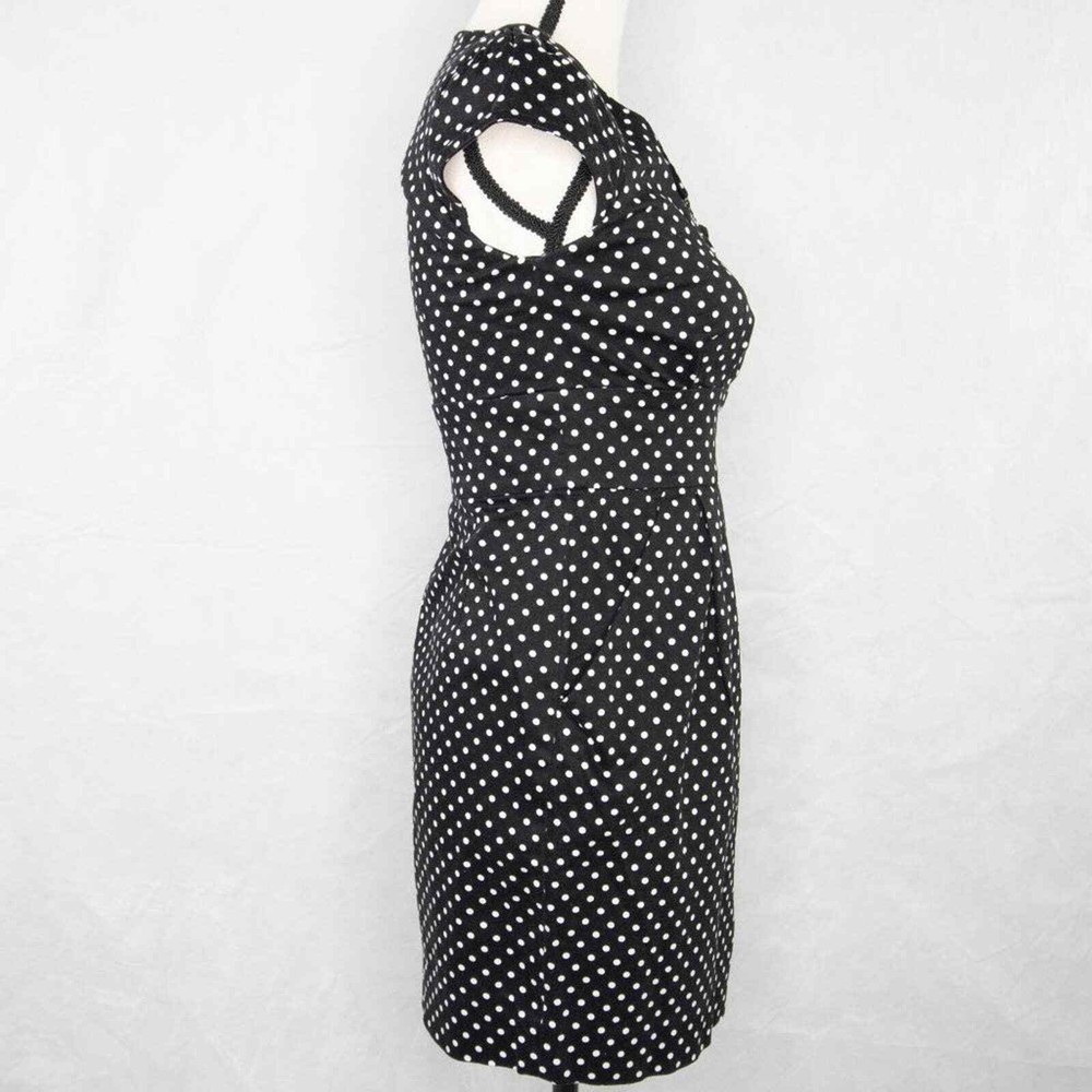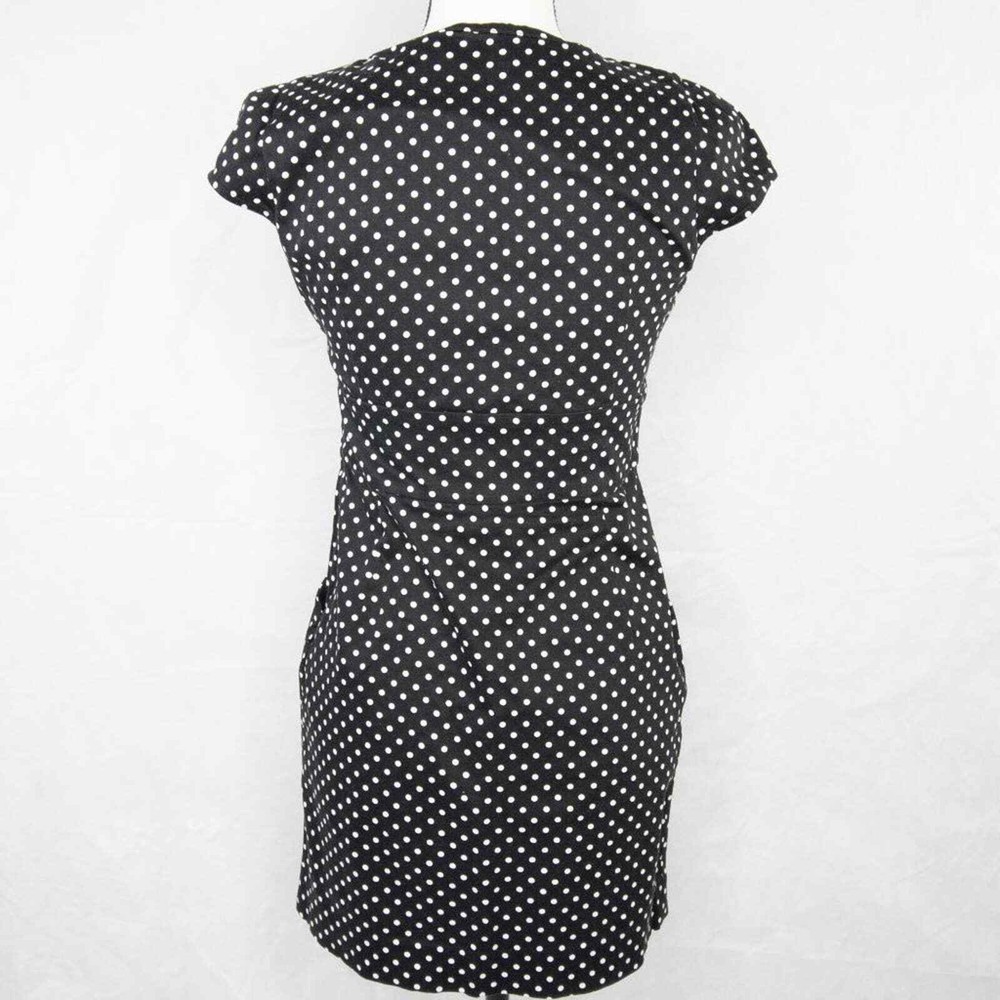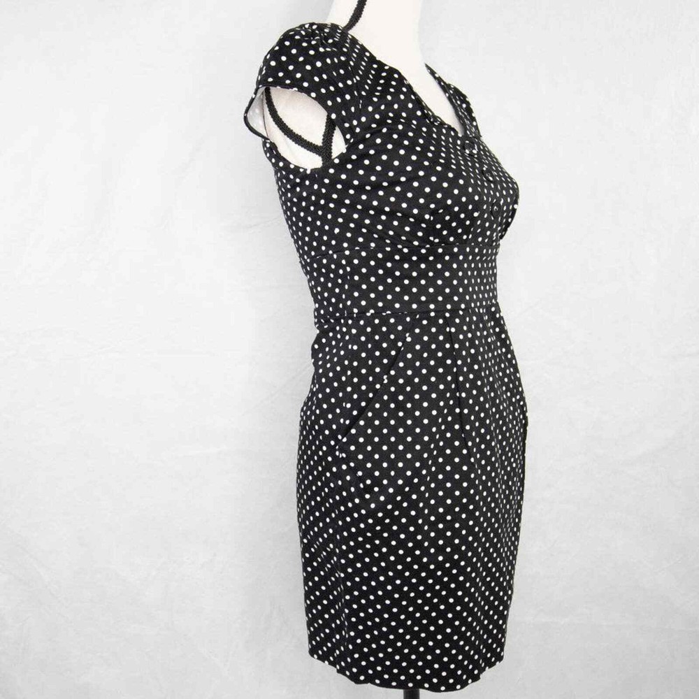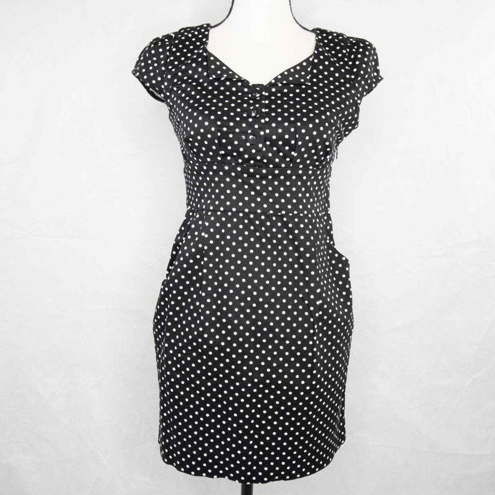 <![CDATA[<div>Vintage Cotton Polka Dot black and white dress -Classic black and white polka dot. -Button up front -Waisted - Beautiful heart-shape neck -Short Bubble sleeves Material: 92% cotton, 2.8% spandex. Tag marked "155/80A", fits like U.S. XXS. Please read approx. laid flat measurements for your best fit: Pit to Pit: 15 1/2 in; Waist: 14 1/4 in; Length from high point of shoulder down: 31 1/4 in.