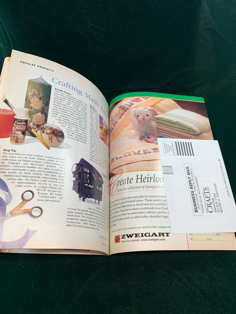 Vintage Crafts Showcase Better Homes Gardens July 1999 Craft Pattern Magazine - No obvious marks, writing, bends, tears or folds - Does not seem like it was ever read after purchase - Yellowing from age - Inserts and Uncut Patterns included and attached Please visit our store for more vintage Craft Magazines - off of the store menu, click on “Books and Magazines > Craft Books and Magazines" or use the store search bar - Thank you! Monitor settings may change colors. About Our Products From our parent’s estate, a pet free, smoke free, child free home. Ask questions before you purchase. All sales are final. Combined Shipping: Select "Request Total" at checkout. If that option is not available, shipping overages over $1 minus eBay fees charged to seller are refunded by the next business day when multiple items are purchased in the same transaction. Please note, while this item may have a lower price on the tag, it was purchased years ago. We set our prices to what we believe is a competitive price (inflation and comparable items) in today's market. Please view our other items. We are always happy to combine shipping.
