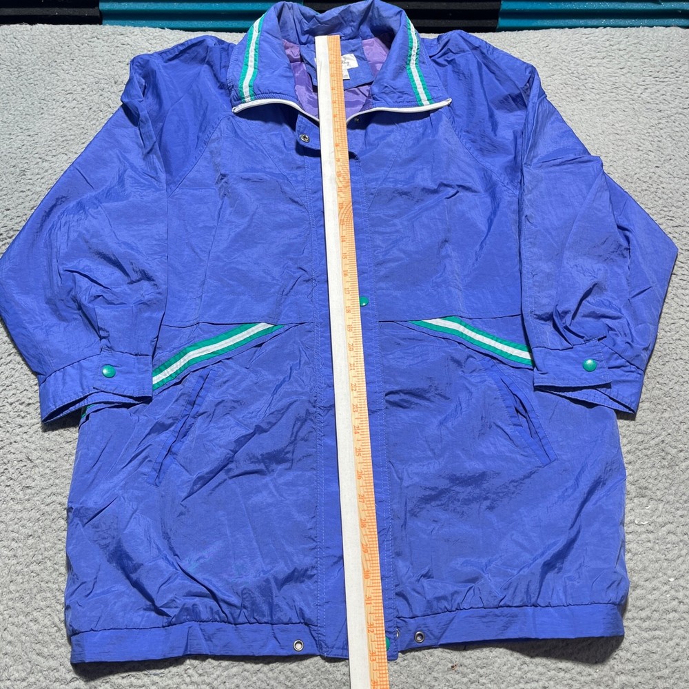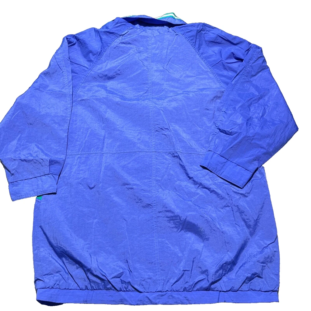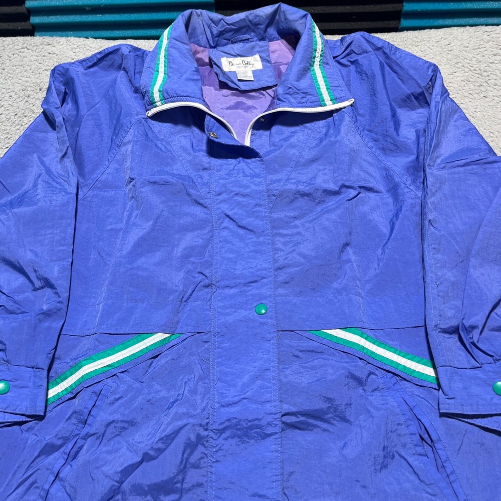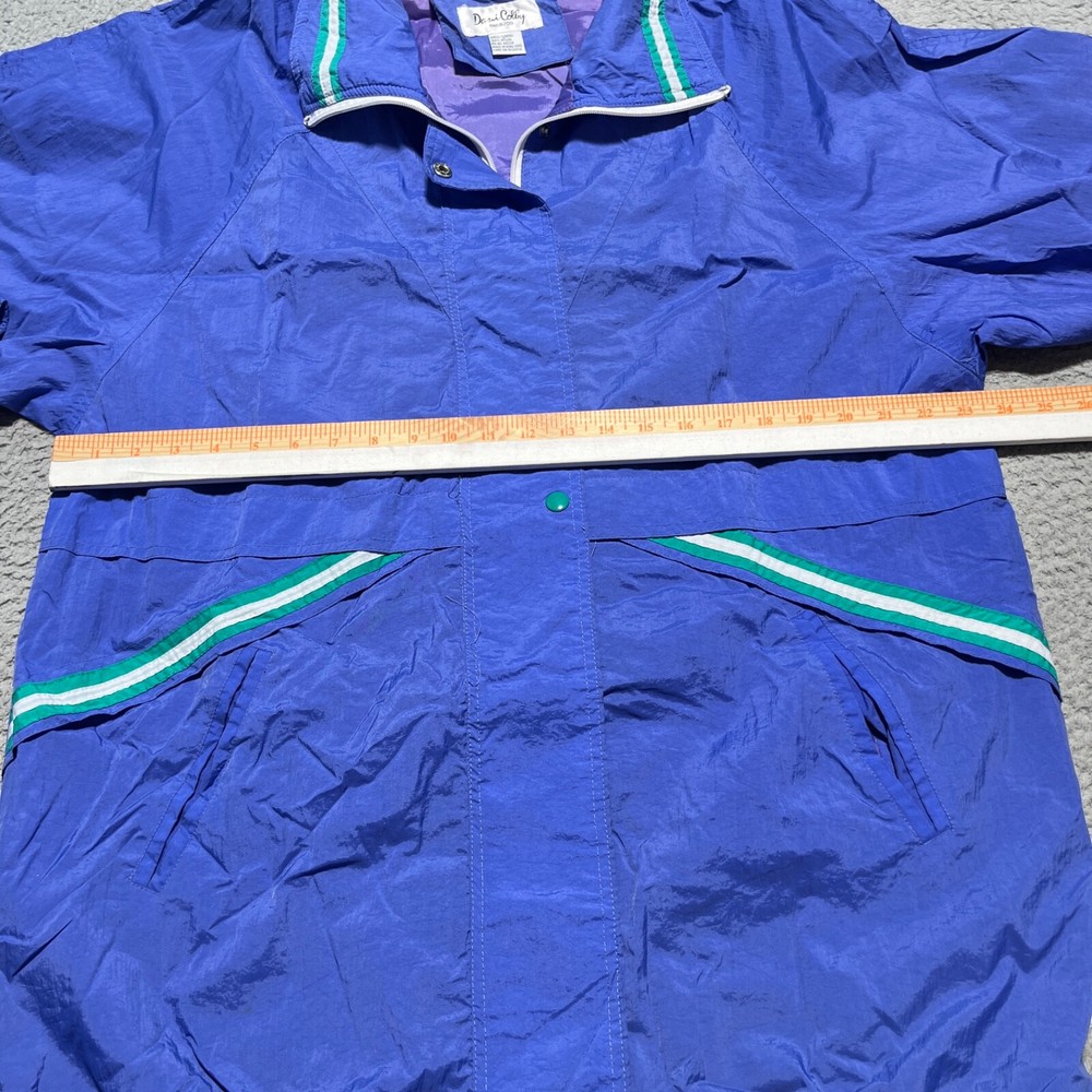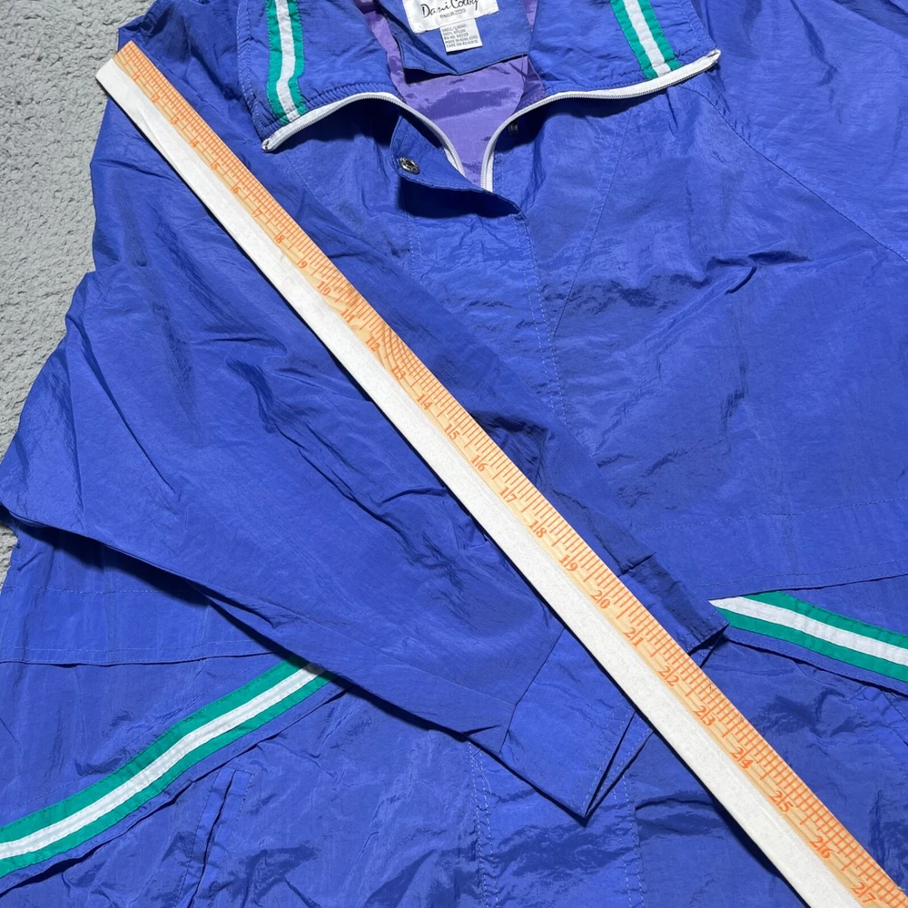 Vintage DANI COLBY Jacket Mens XL Blue Front Zip Snaps Wind Breaker 3/4 Sleeve Elevate your style with this vintage Dani Colby windbreaker jacket. The blue jacket features snap front closure, zippered pockets, and striped accents. The mid-length jacket is perfect for travel and casual occasions, and is made of lightweight, water-resistant, and wind-resistant nylon material. This jacket is a size XL and is machine washable. The jacket is perfect for all seasons, including summer, fall, and spring. It is suitable for various activities, such as cycling, golf, hunting, volleyball, cross training, pilates, hiking, bodybuilding, running & jogging, gym & training, walking, crossfit, lacrosse, and yoga. The jacket is a classic and colorful addition to any wardrobe, and is perfect for outdoor and city adventures. PLEASE SEE PICTURES FOR MEASUREMENTS WE SHIP FAST!! WE OFFER 30 DAY FREE RETURN