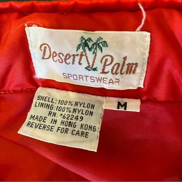 Vintage Desert Palm sportswear windbreaker jacket red packable hood medium Good condition - some discoloration on front - please see photos Made in a Hong Kong See photo for bust measurement Smoke free home
