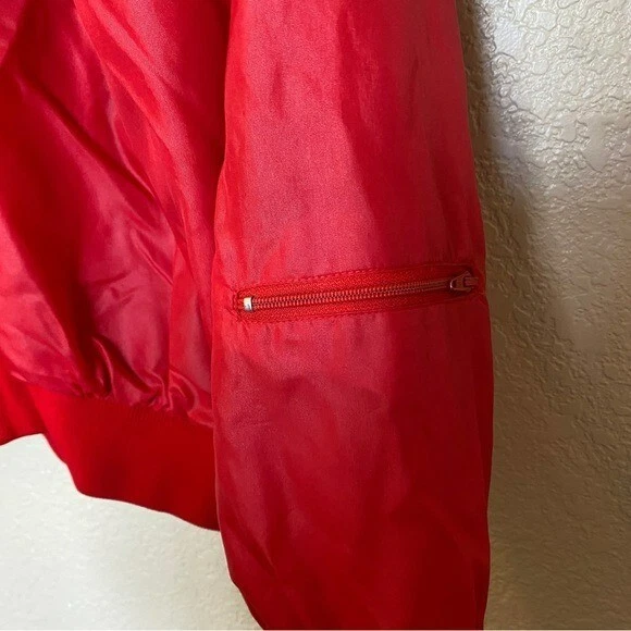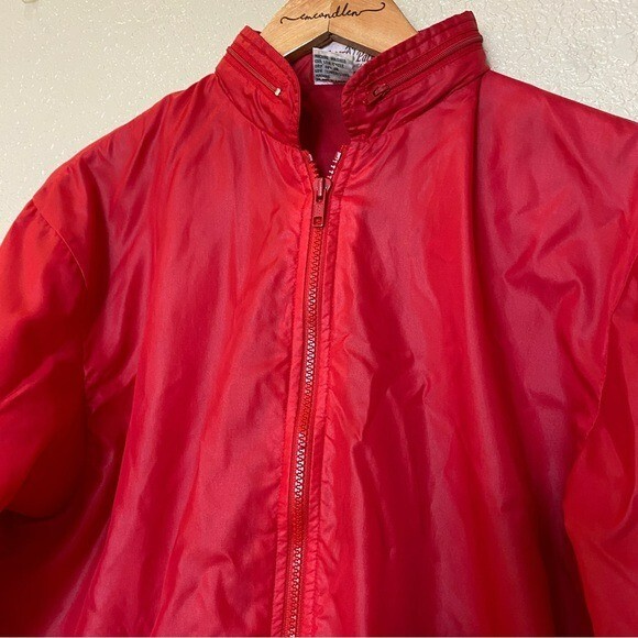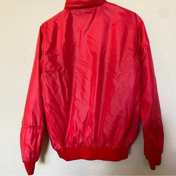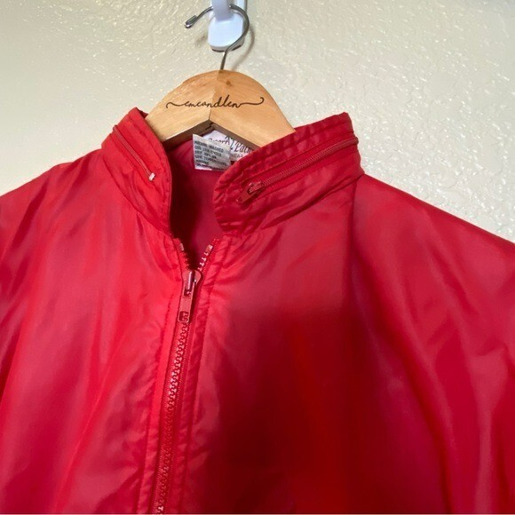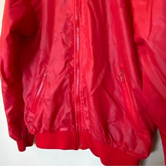Vintage Desert Palm sportswear windbreaker jacket red packable hood medium Good condition - some discoloration on front - please see photos Made in a Hong Kong See photo for bust measurement Smoke fre...