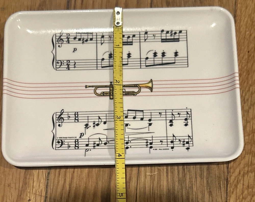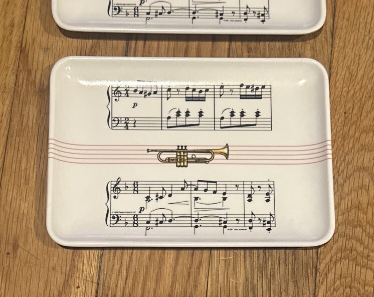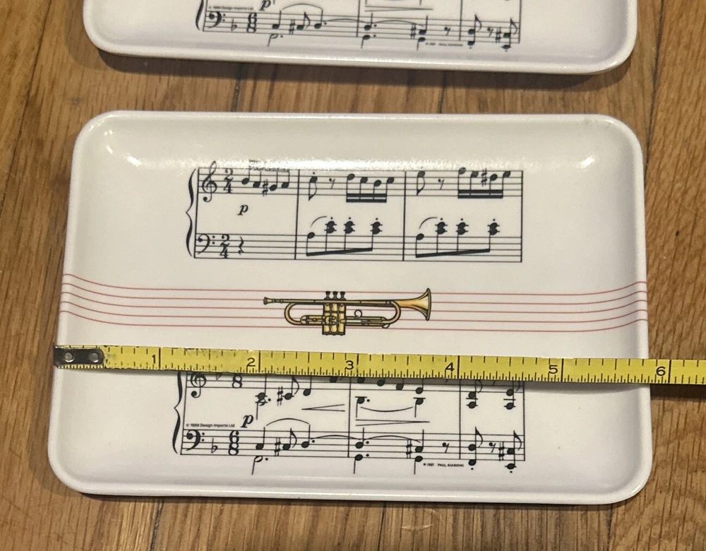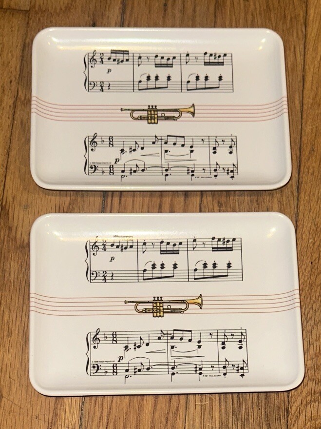 Vintage Design Imports Melamine Trinket Trays 4” x 6” Trumpet + Music Made in Italy * Lot of 2-pcs Excellent to Mint Condition...