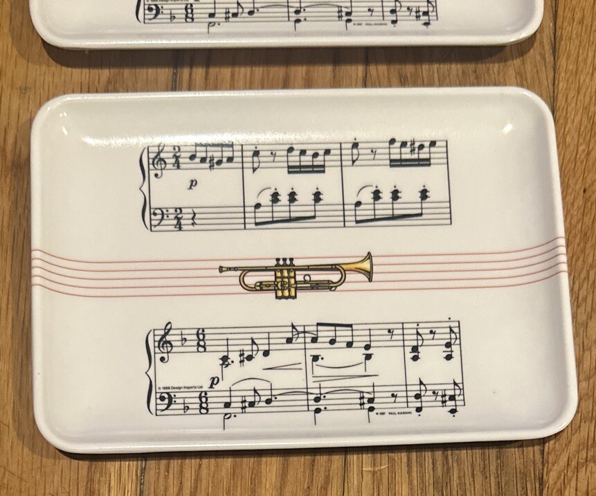 Vintage Design Imports Melamine Trinket Trays 4” x 6” Trumpet + Music Made in Italy * Lot of 2-pcs Excellent to Mint Condition