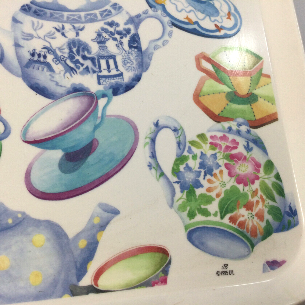 Vintage 1995 Design Imports Melamine Rectangular Serving Tray Tea Pots Cups Italy Signed. Very good condition, no damage. It is 17.5" x 11.5". It is signed , photo 4. InvN/ES/3