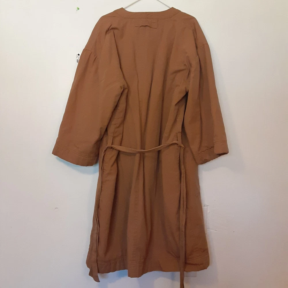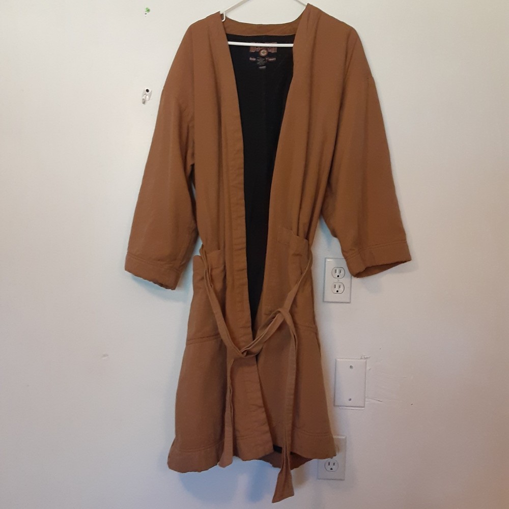 Has some stains shown in pictures This is a vintage Duluth Trading Co trench coat for men in size Large. Made of brown canvas with fleece lining, it features a belt closure,m, and multiple pockets. The coat is designed for all seasons, offering heavy and wind-resistant qualities. With a retro style and Western theme, it is suitable for workwear, outdoor activities, and casual wear in winter, fall, and spring.