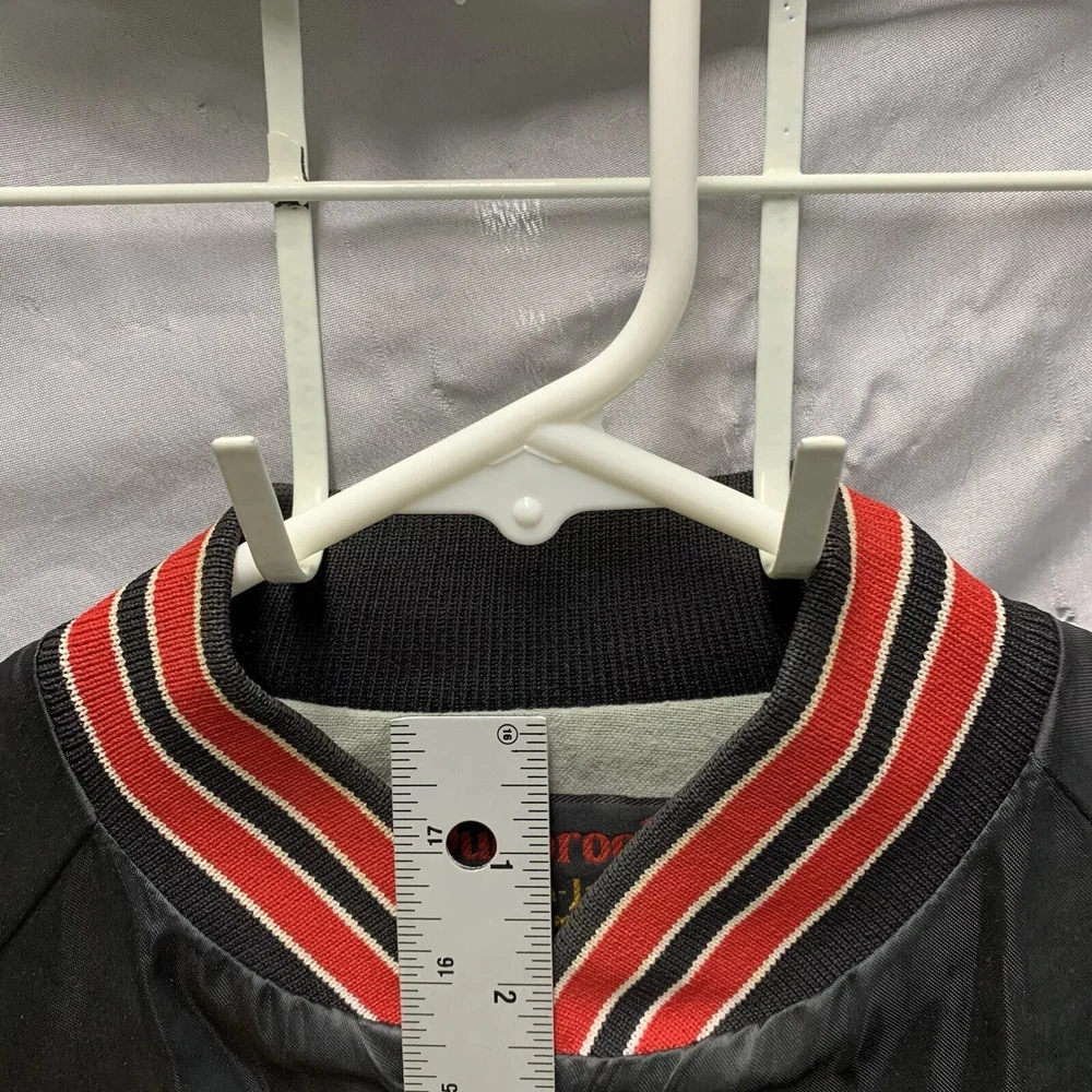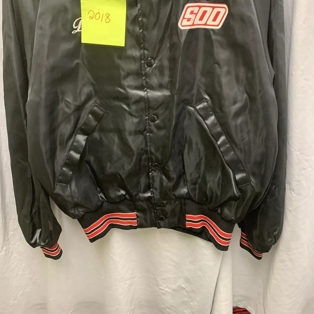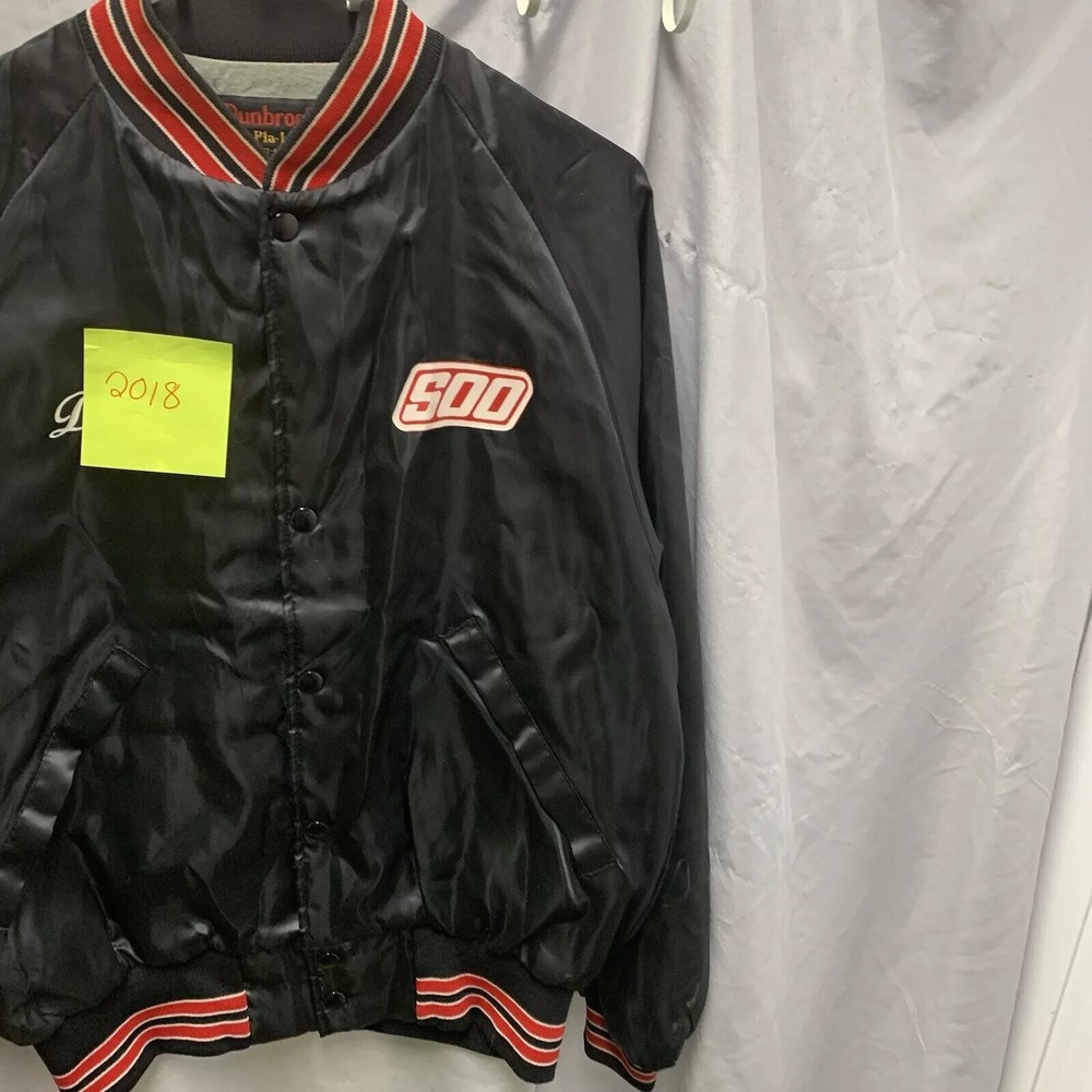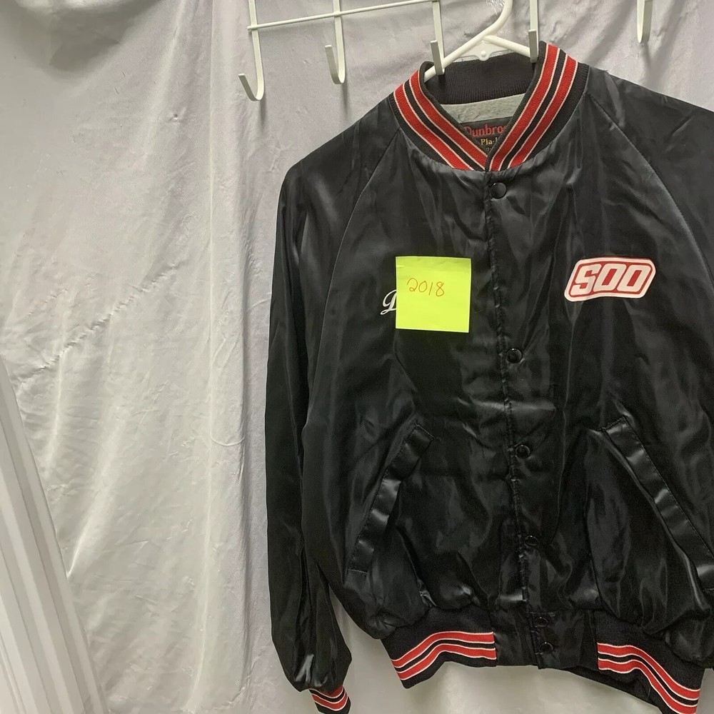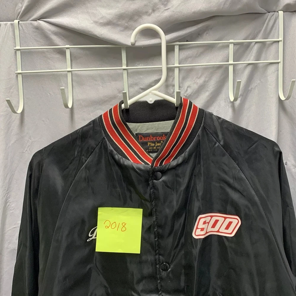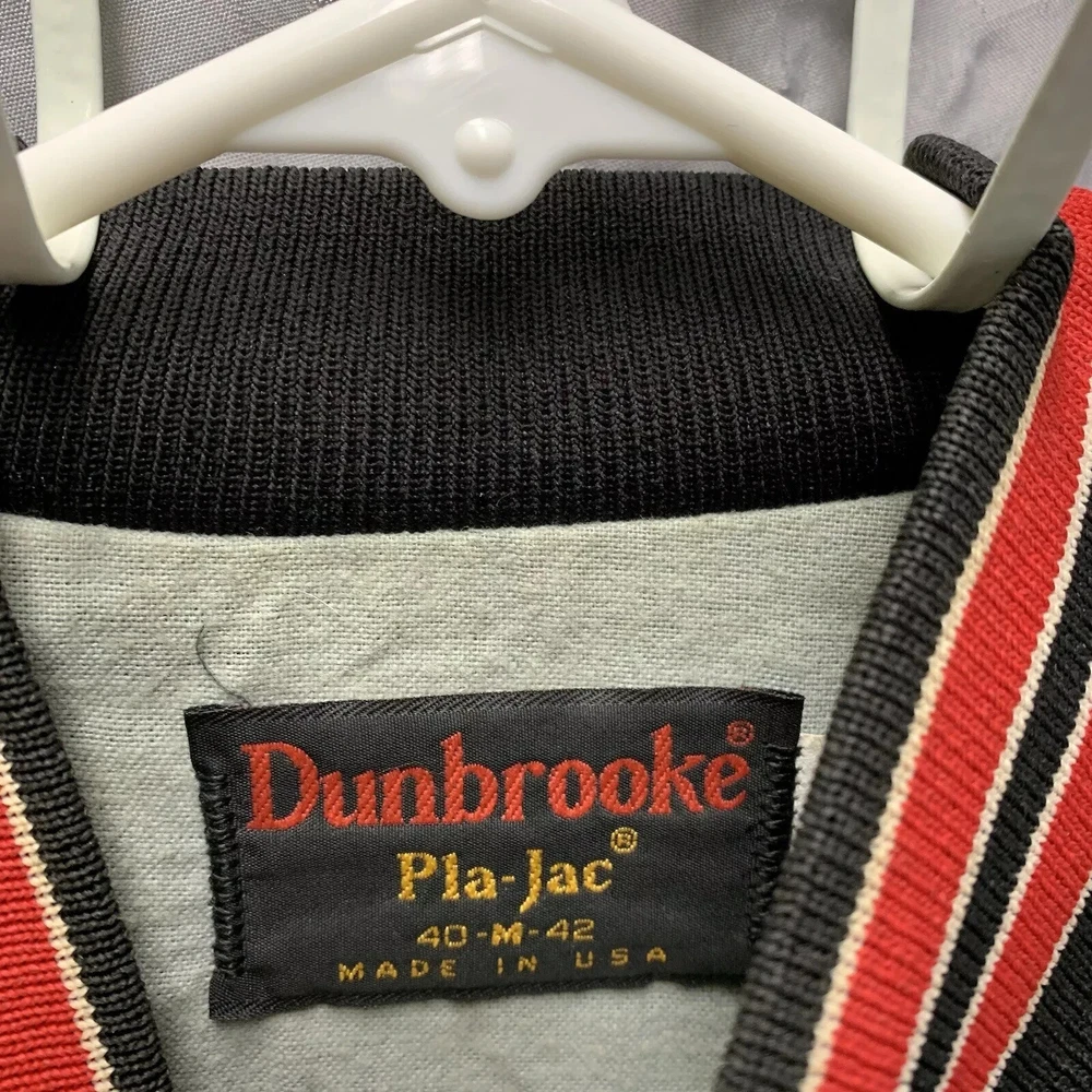 Elevate your style with this vintage Dunbrooke jacket, perfect for any occasion. The black jacket features a solid pattern and is made of polyester knit fabric, making it lightweight and breathable. The jacket has a 1/4 zip, full zip, and drawstring closure, ensuring a secure fit. This versatile jacket is suitable for travel, parties, workwear, and more. The jacket also comes in size M and has a regular fit. The jacket is wind-resistant and suitable for all seasons, making it perfect for riding, cycling, golf, and other activities. The jacket features embroidered accents and the brand's logo, adding a touch of sophistication.