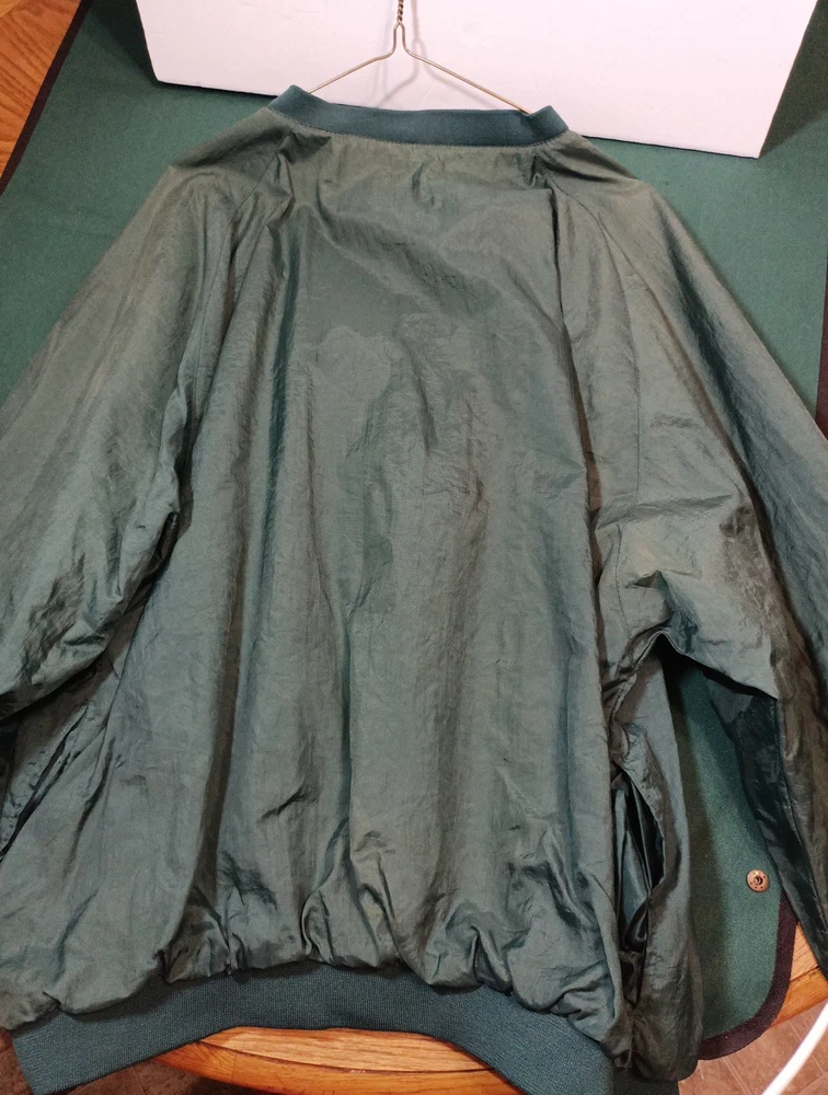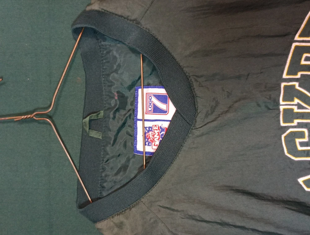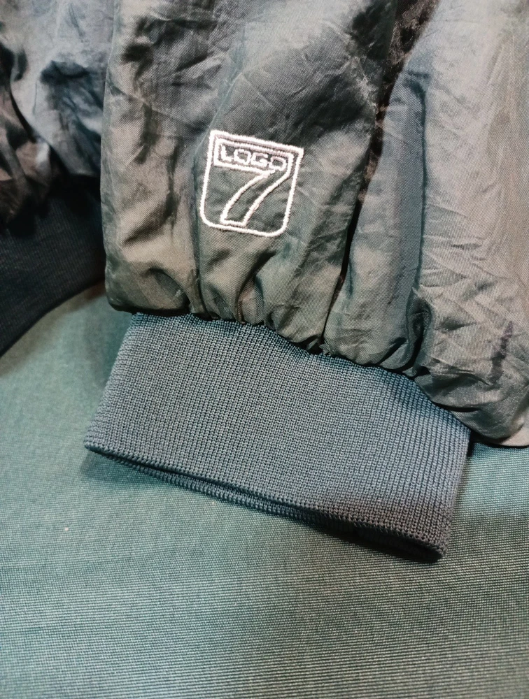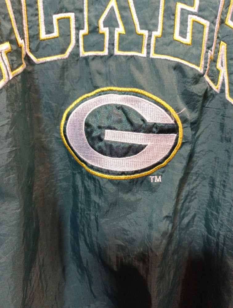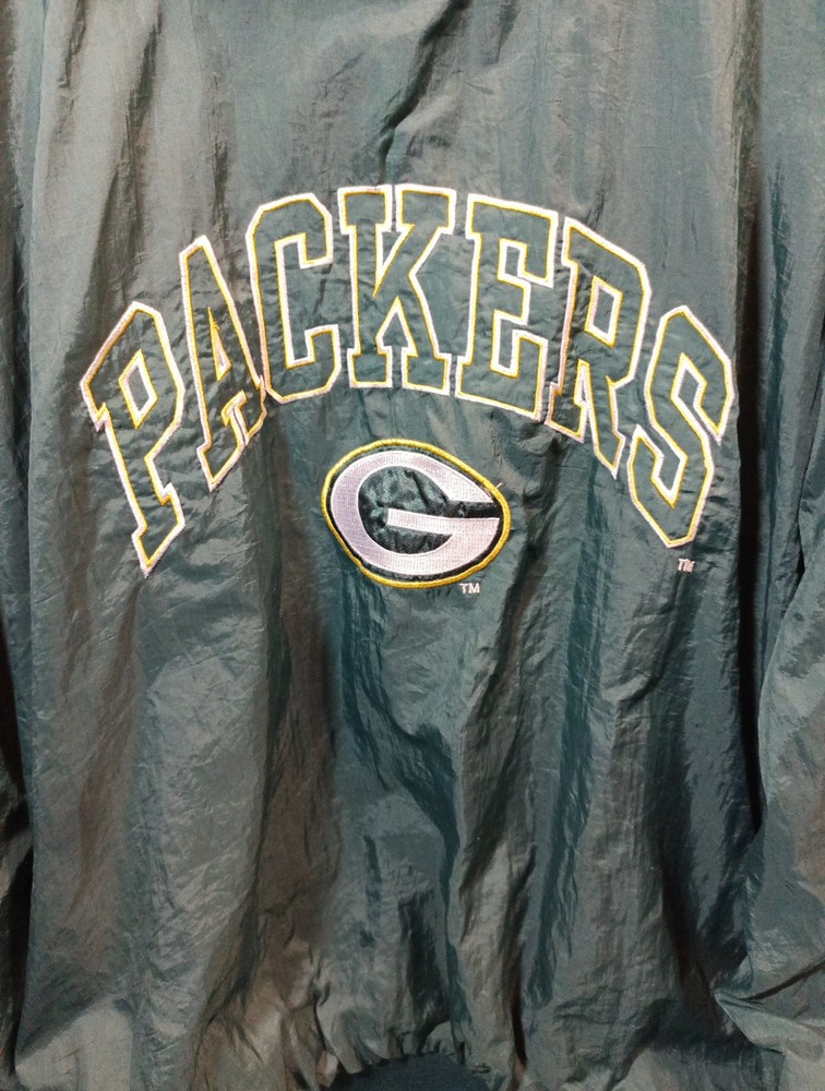 Embrace the spirit of the game with this Vintage Early 90s Green Bay Packers Logo 7 Pull Over Wind Breaker. A must-have for any die-hard NFL fan, this jacket is designed to keep you comfortable while you cheer on your favorite team during the Regular Season. Crafted with care in Korea, this piece showcases the classic Green color and features the iconic Packers logo, making it a standout addition to any fan's collection. Sized as Men's XL, the jacket provides ample room for a cozy and relaxed fit. Whether you're at the stadium or enjoying the game from home, this windbreaker serves as a versatile layering option, perfect for those crisp football days. Add a touch of nostalgia and team pride to your wardrobe with this timeless Logo 7 jacket.