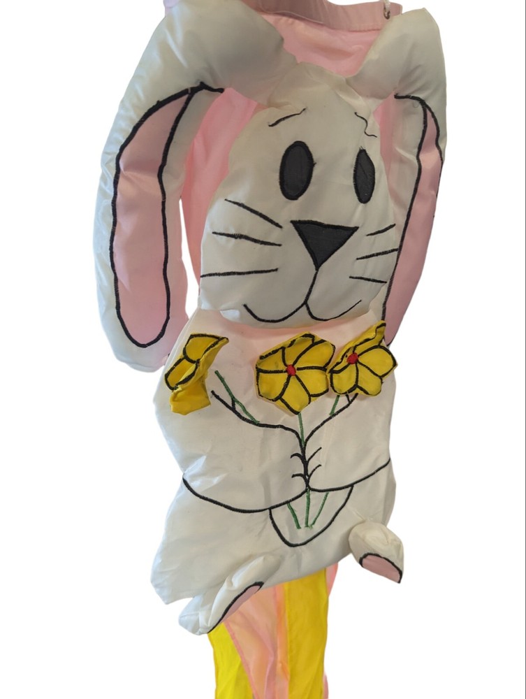 Vintage Easter Garden Nylon Wind Sock Easter Bunny Flowers Tassels Tails Flag. Tassels have marks