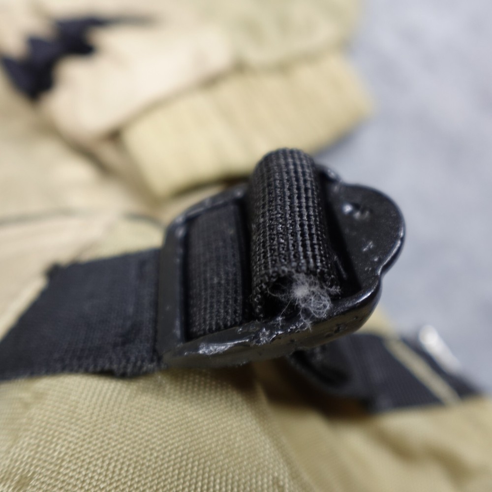 Some fading, spots/marks on parts of front and sleeves. One of the lower straps has some marks and middle plastic piece is loose. Other light wear present from past use. See pictures to assess. Measurements are pictured.