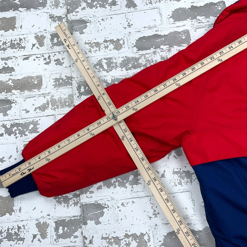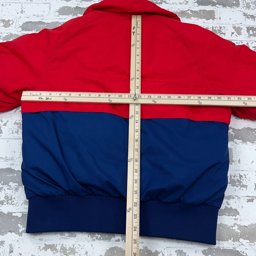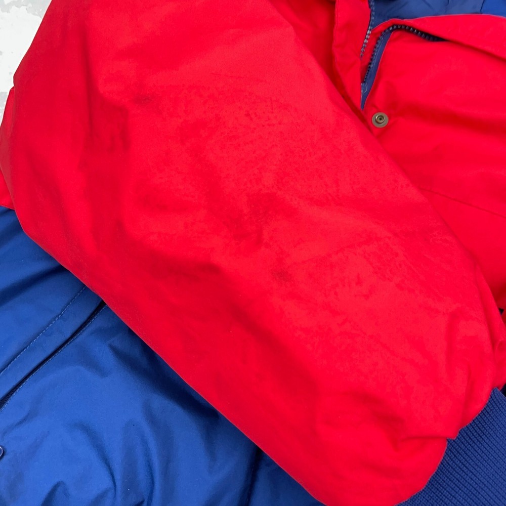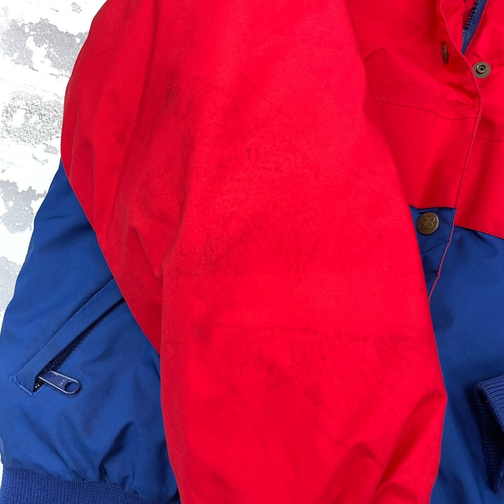This vintage Eddie Bauer puffer jacket is a solid find! The red and blue bomber style is classic 90s, and the down fill keeps you warm. It’s pre-loved with some light sleeve stains, but overall in good shape—just check the pics for details. Fits true to size if you compare measurements. Cleaned and ready to wear, great for adding retro flair to your wardrobe. Small biz love!