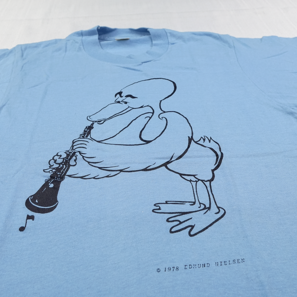 Vintage Edmund Nielsen Duck Shirt Small Medium 80s Esmerelda Oboe Woodwind Cute SIZE: Medium BRAND : Screen Stars CONDITION: Good with minimal wear and a few light spots (pictured). See photos for measurements/details. DETAILS : Vintage Edmund Nielsen oboe t shirt with Esmerelda the duck. Made in the USA in the 80s, 50% Cotton 50% Polyester. Check all photos and measurements and ask questions before buying. I ship every day so expect to receive your items quickly. Thanks for shopping with me. THRIFT-SIFTER shop. smile. repeat. I nternational Buyers: Import duties, taxes, and charges are not included in the item price or shipping cost. Please check with your country's customs office to determine what these additional costs will be prior to bidding or buying. These charges are the buyer's responsibility.