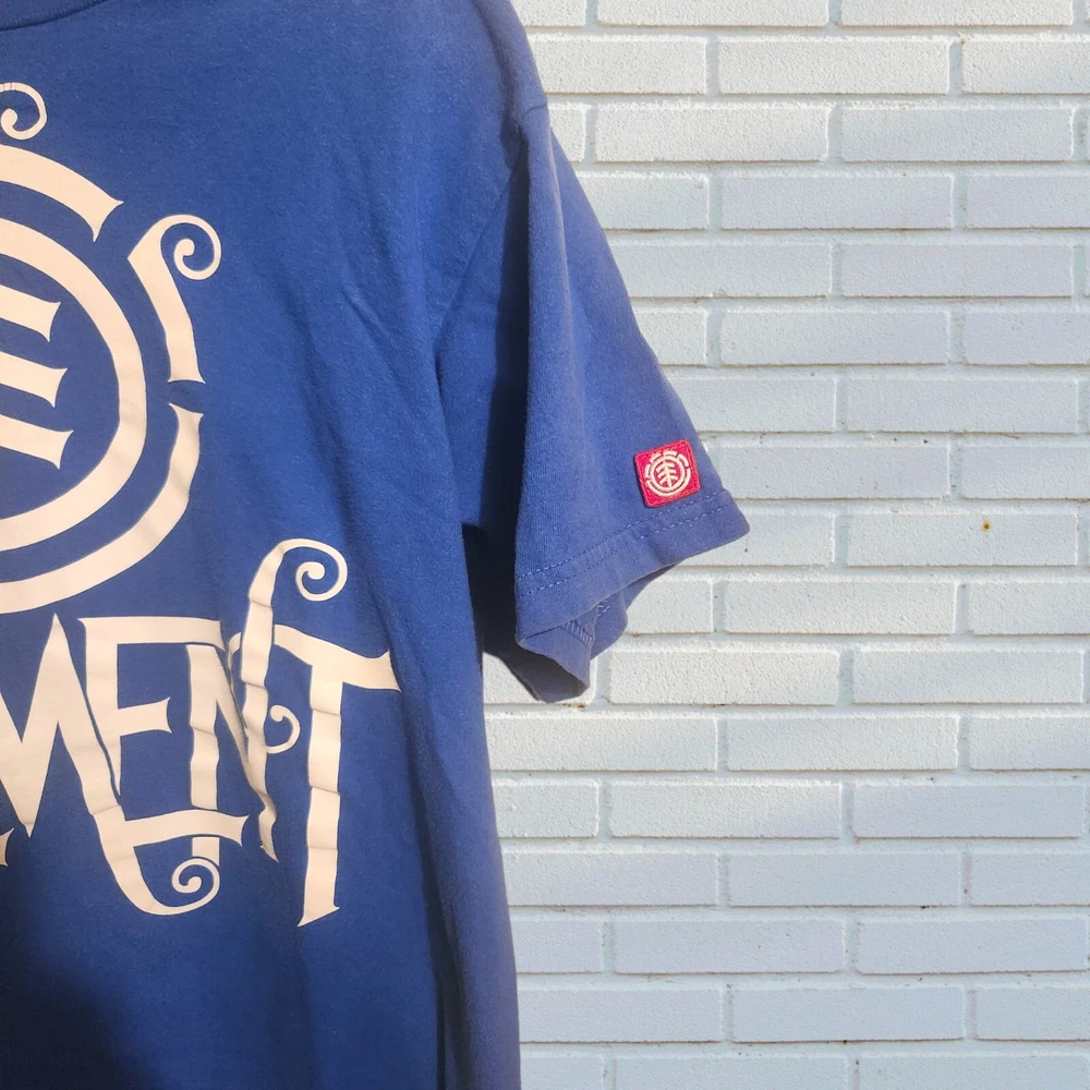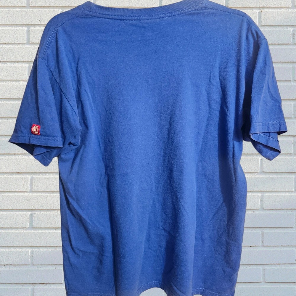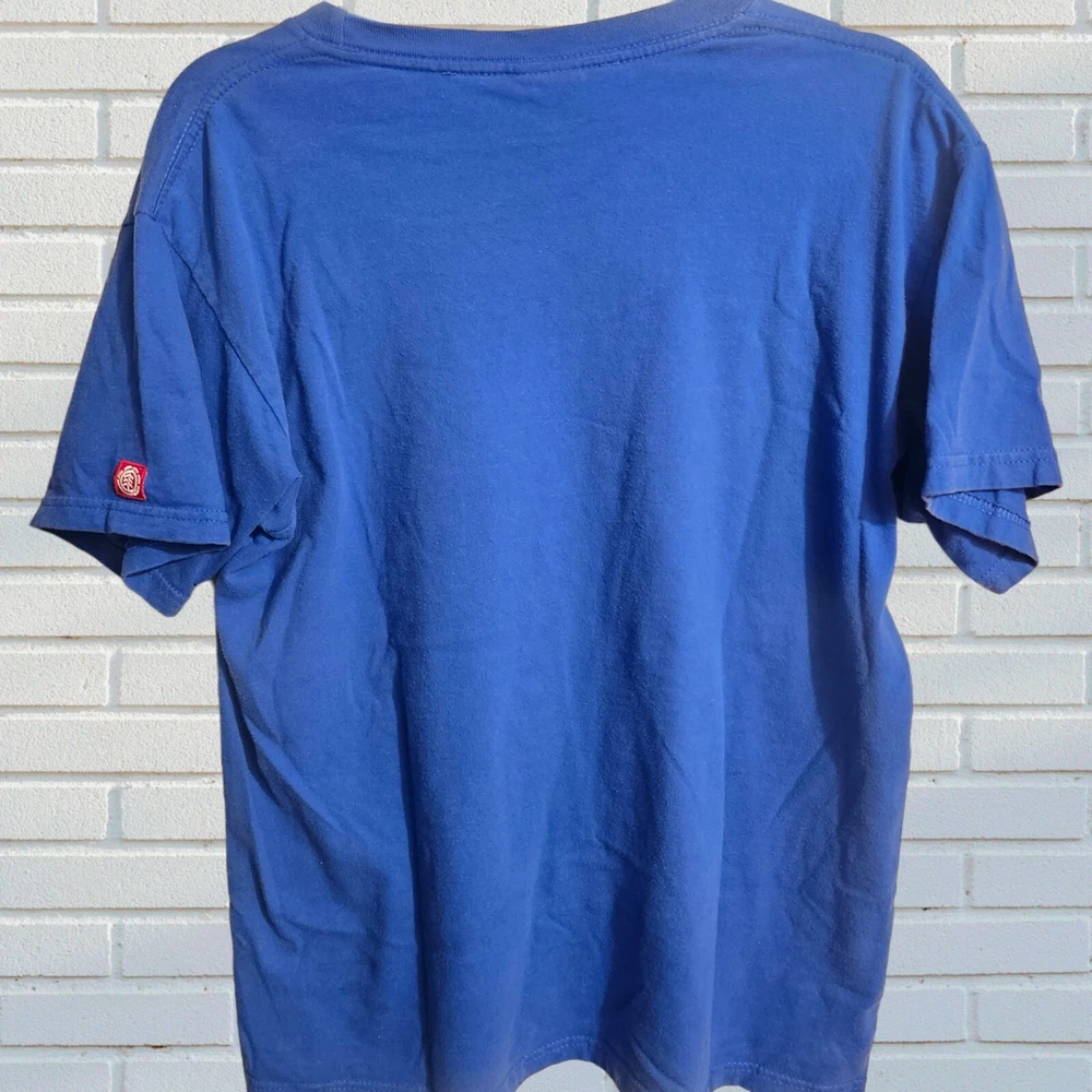 This is a vintage Element skateboard t-shirt for men in size M. The shirt is made of a knit fabric blend of alfa and cotton, and features a crew neckline and short sleeves. The shirt is machine washable and has a solid pattern in blue with the Earth Wind Fire logo and the Bam character from Element Boards. The shirt is part of the Earth Wind Fire Classic collection and has a regular fit. It is suitable for all seasons and is breathable. This shirt is very good pre-owned condition with no flaws or visible signs of wear. The only reason I would not rate as excellent is that the size tag has been removed. The measurements on the shirt are pit to pit 20 in with a length of 25 in. The shirt should be a great fit for anyone who wears a men's medium or large shirt. Please note that we do have a simple 30 day no question to ask money back guarantee. So if you should buy the shirt and it does not fit, or you need to return it for any other reason all we would ask you to do is drop us a message within 10 days of receipt, letting us know of your intent to return. If there's anything we can do to resolve the issue, just let us know in your message. If we can help, we will. In the event we cannot help you resolve the issue, or you would need to do is return the shirt to us in a like and an unworn condition. Once received your money will be immediately refunded.