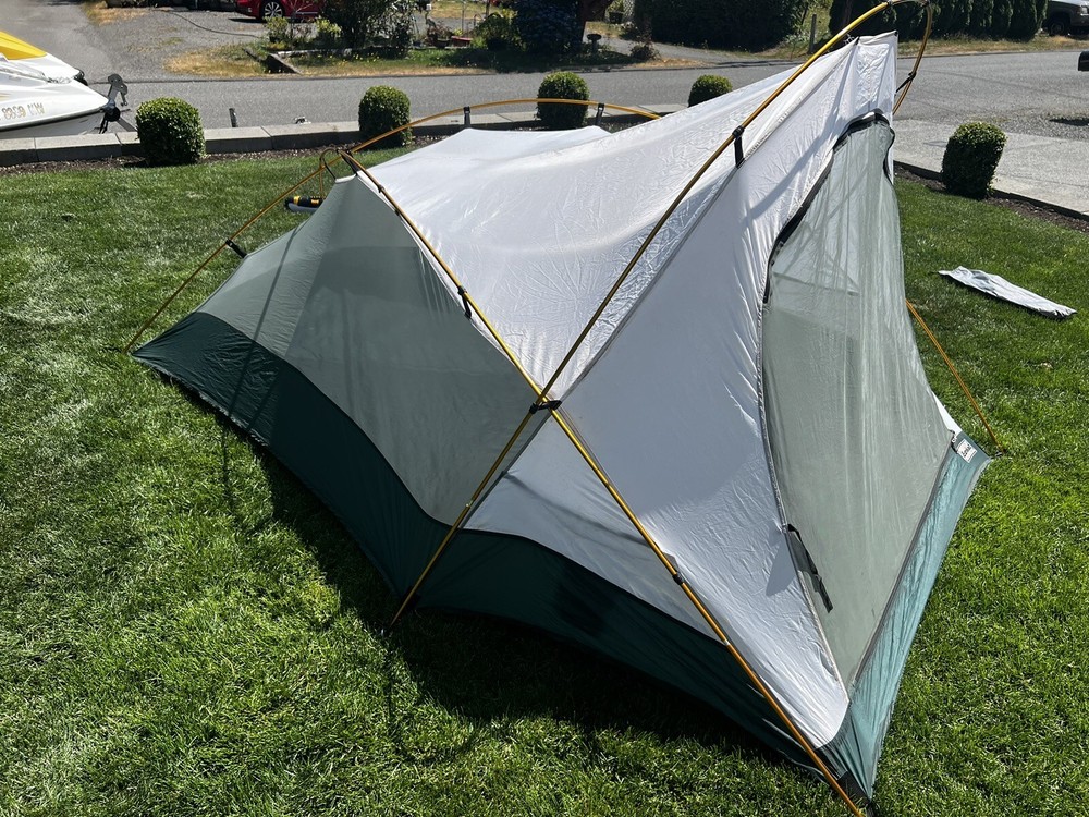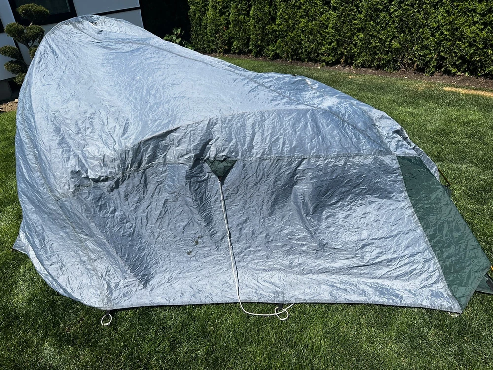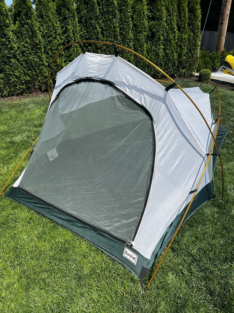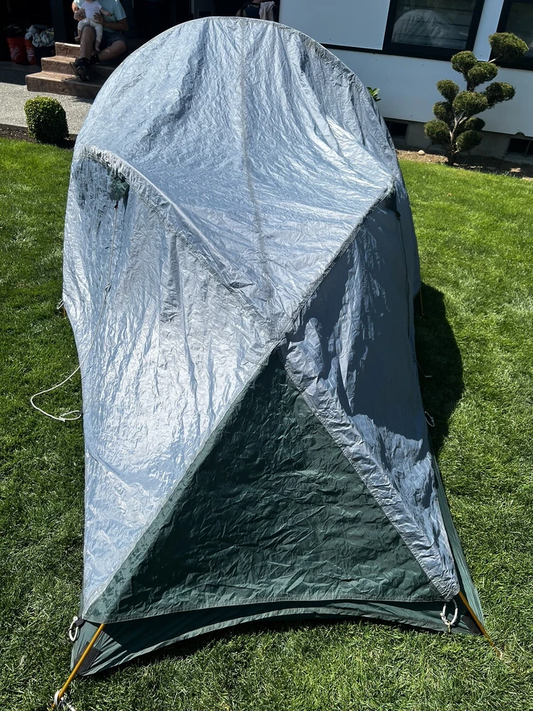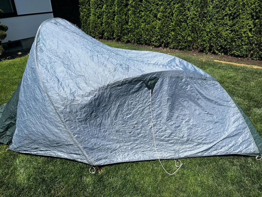 This tent is a fantastic find for outdoor lovers! Lightweight yet sturdy, it’s perfect for backpacking trips. The vintage design adds charm, and it’s still in great shape—no tears or major wear. Sets up easily and keeps the wind out. Spacious enough for two people without feeling cramped. A great deal for anyone who loves camping!
