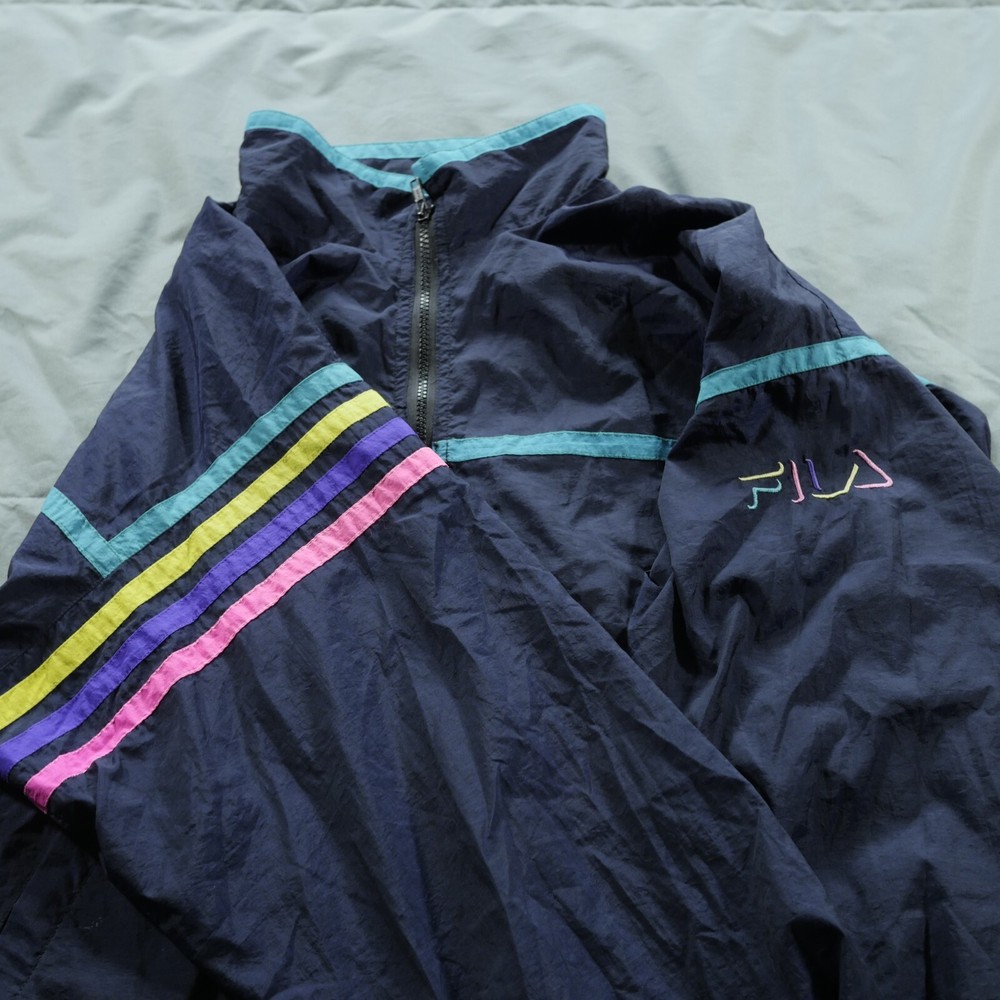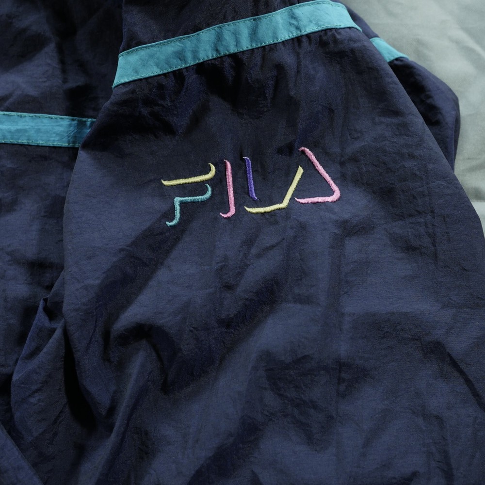 Available now: Vintage Fila Jacket Mens 46 Eu Blue Soft Shell Wind Breaker Lightweight Italy See photos. I photograph any flaws item might have. Ask questions. Elastic on waist and sleeve hem is stretched out. See measurement photos. No odors. Sleeve Logo embroidered. This item is preowned. I answer everything. I want to provide the best service possible. Thanks for visiting my store. Mar26Y24-08