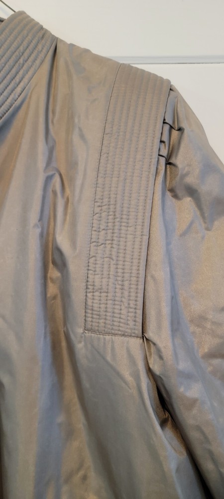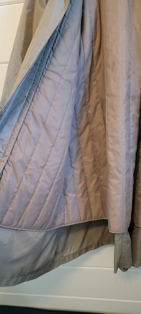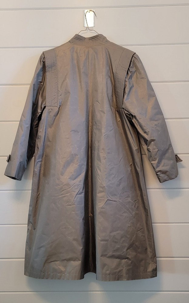 Removable quilted liner, all zippers and buttons operate. Super cozy on a cold and rainy day. Great preowned condition for a piece from the 80s.