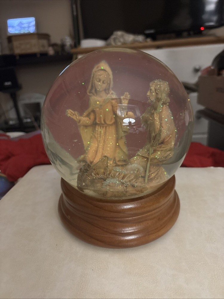 This vintage Fontanini Glitterdome snowglobe is a beautiful addition to any Christmas decor. The medium-sized globe features a mix of materials and a stunning musical design. The snowglobe is perfect for collectors and fans of the Fontanini collection. The globe is shaped like a globe and features a baby Jesus snowflake design. It was manufactured in Italy in 1988 by Roman, Inc. The snowglobe is vintage and comes with musical features. It is a perfect gift for anyone who loves collecting Christmas decorations.