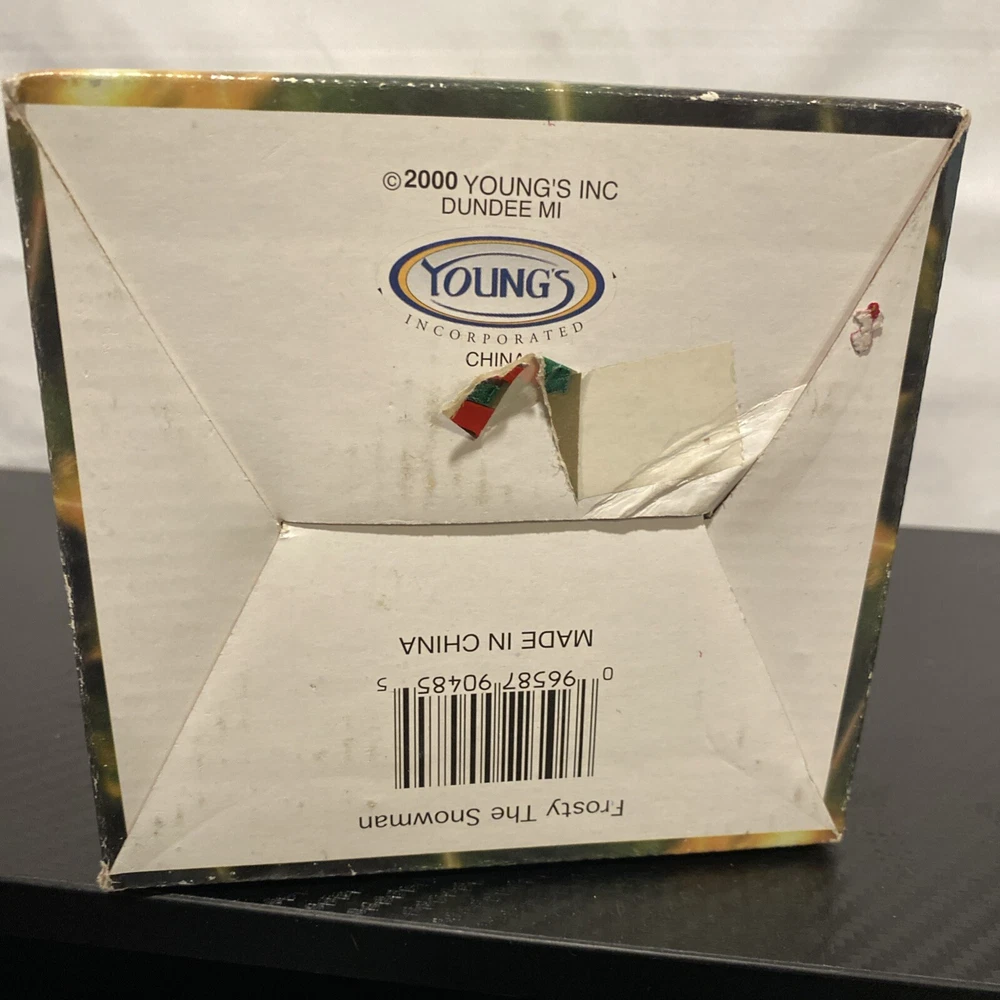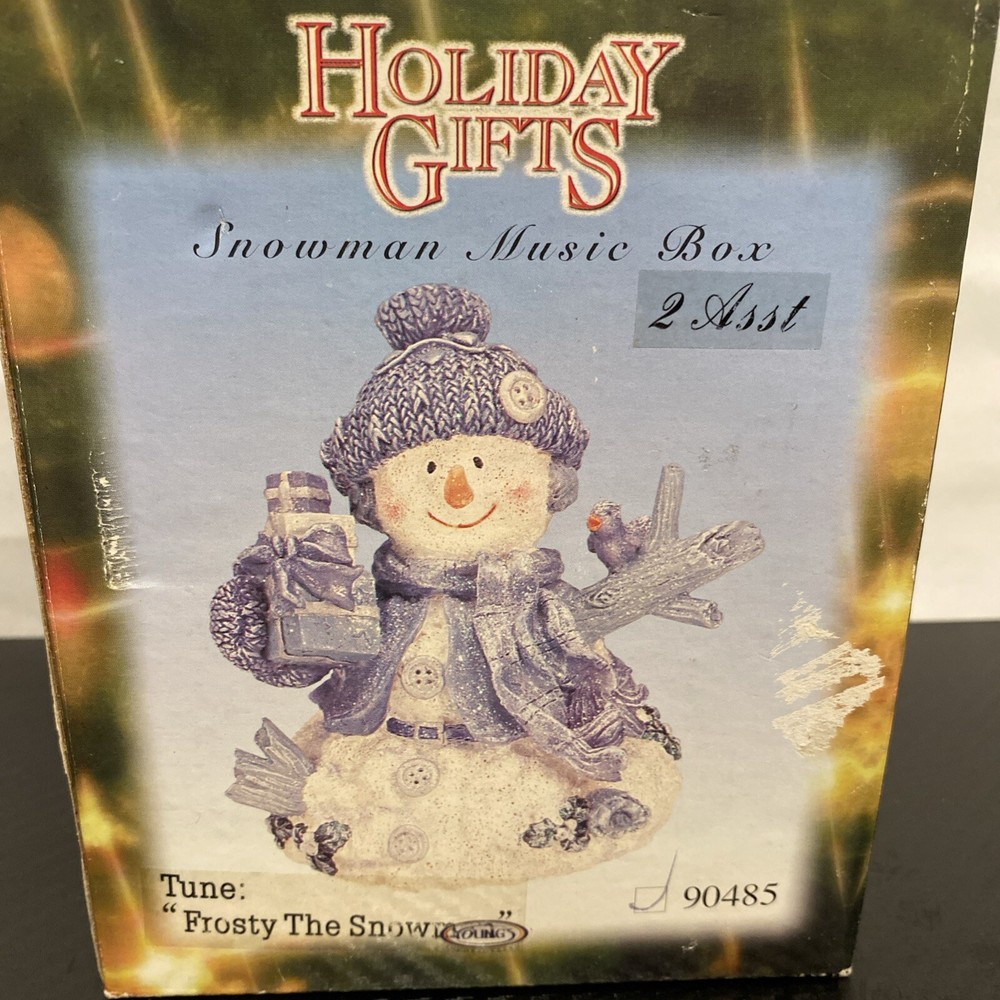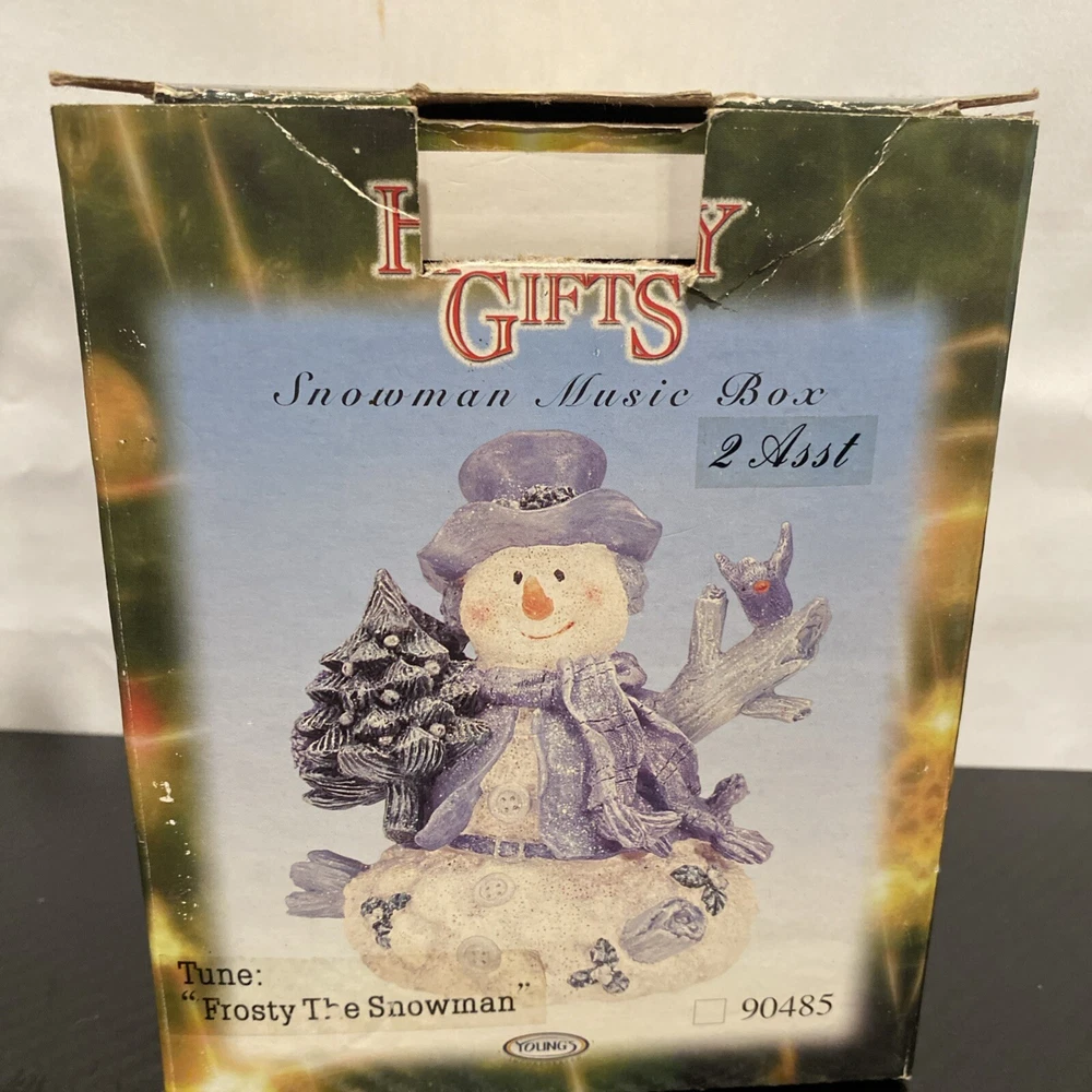 This vintage wind-up music box features Frosty the Snowman, a beloved character from Christmas lore. The small statue is made of resin and features a blue and white color scheme, perfect for any winter-themed decor. The musical feature adds an extra touch of charm to the piece, making it a great addition to any collection. The box was manufactured in China in the year 2000 and is sure to be a treasured find for any collector of holiday and seasonal figurines.